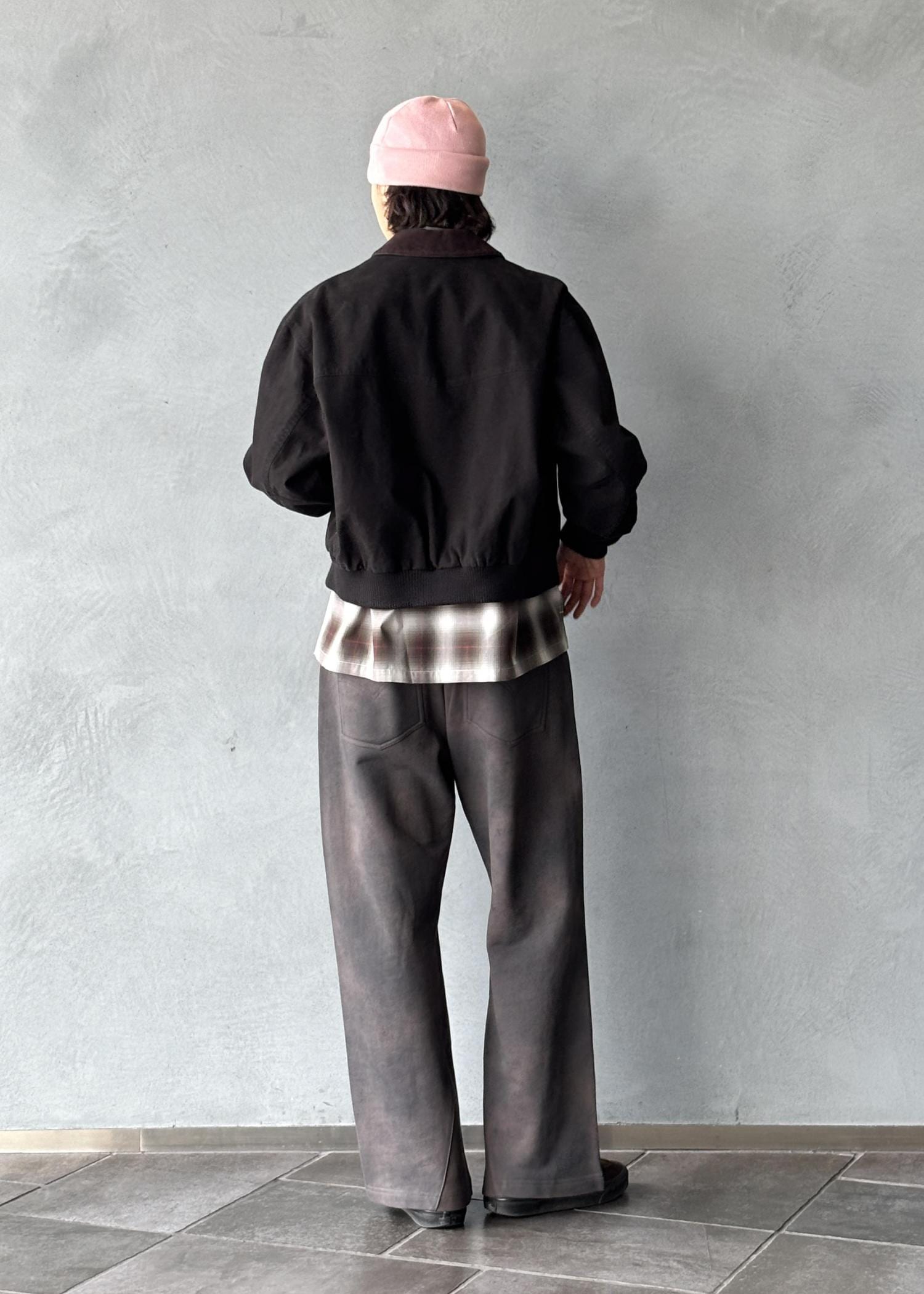 アウターはTONYWACKのダック地ブルゾンで、タフな素材感と短丈シルエットが特徴です。