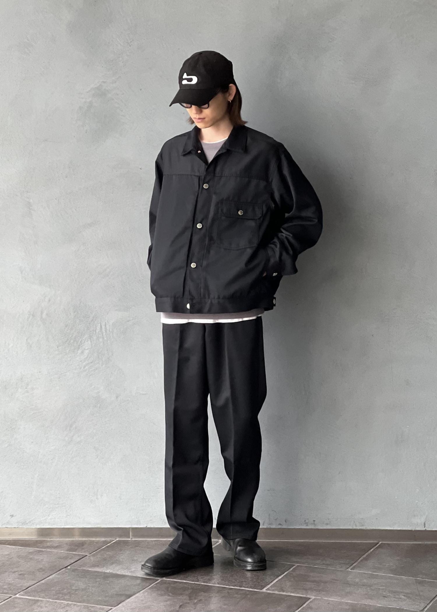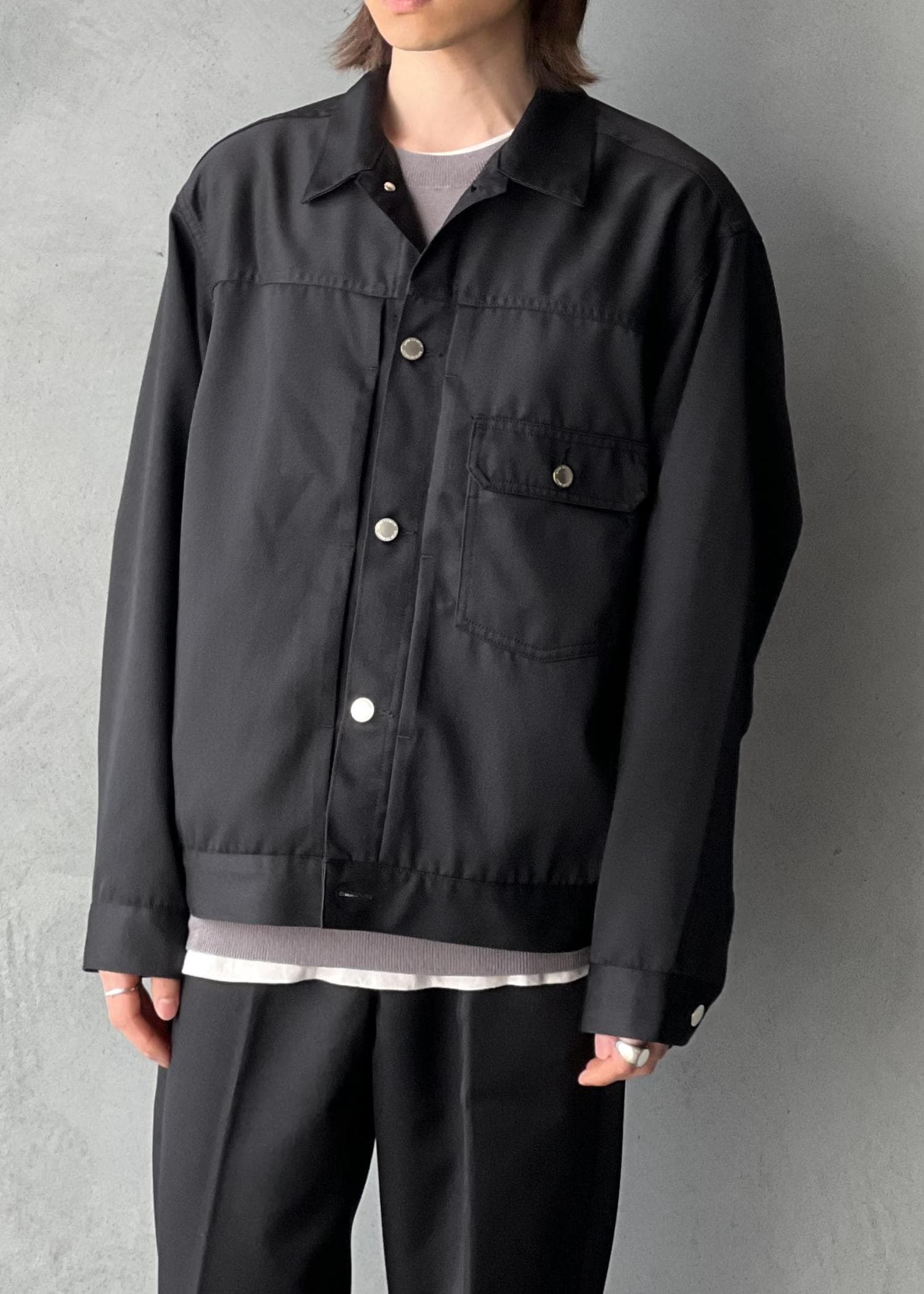 ウールポリのデニム風セットアップ。