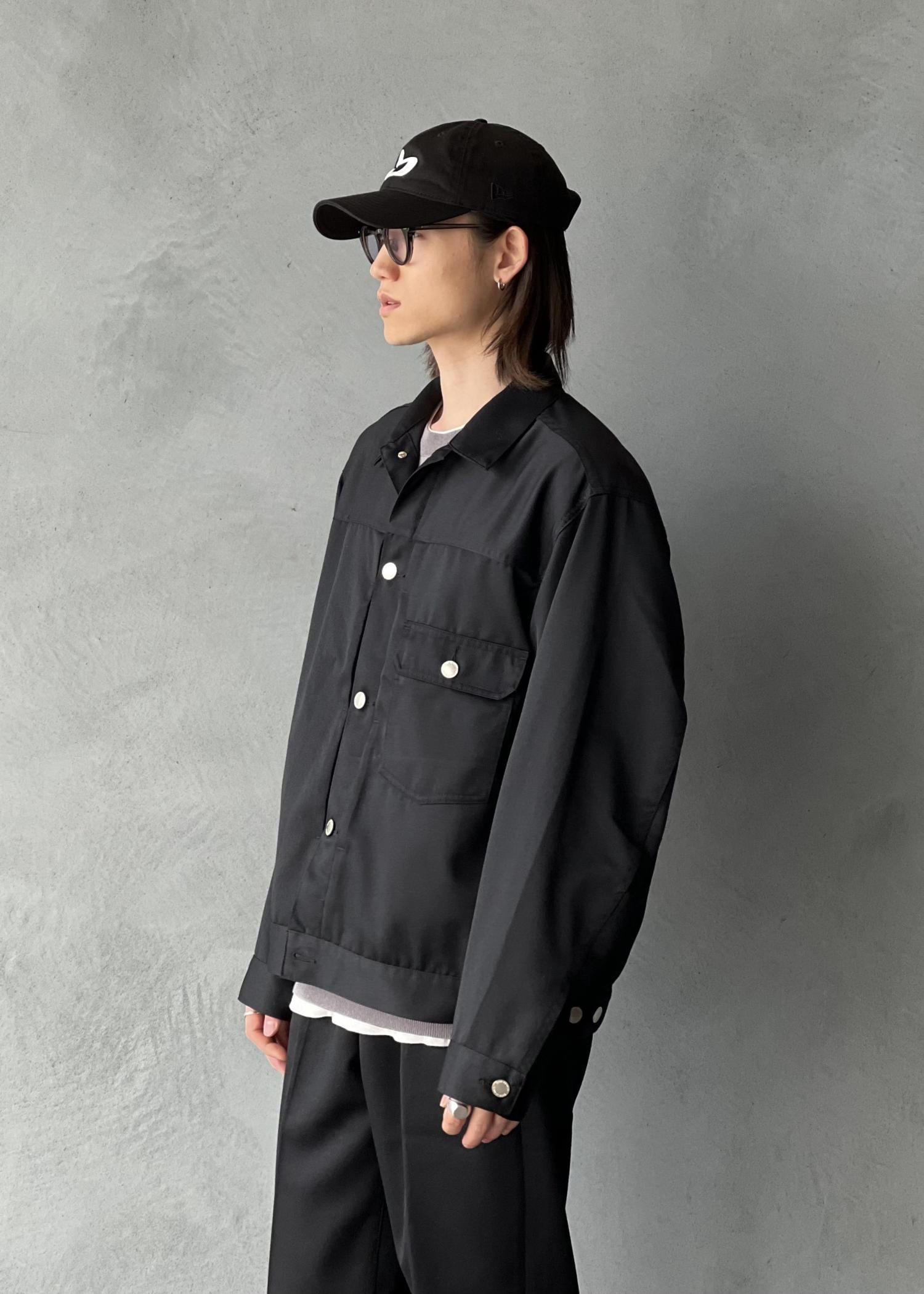 ややゆったりとしており身幅、アームもゆとりがあるので中にニットやスウェットを着る事も可能です。