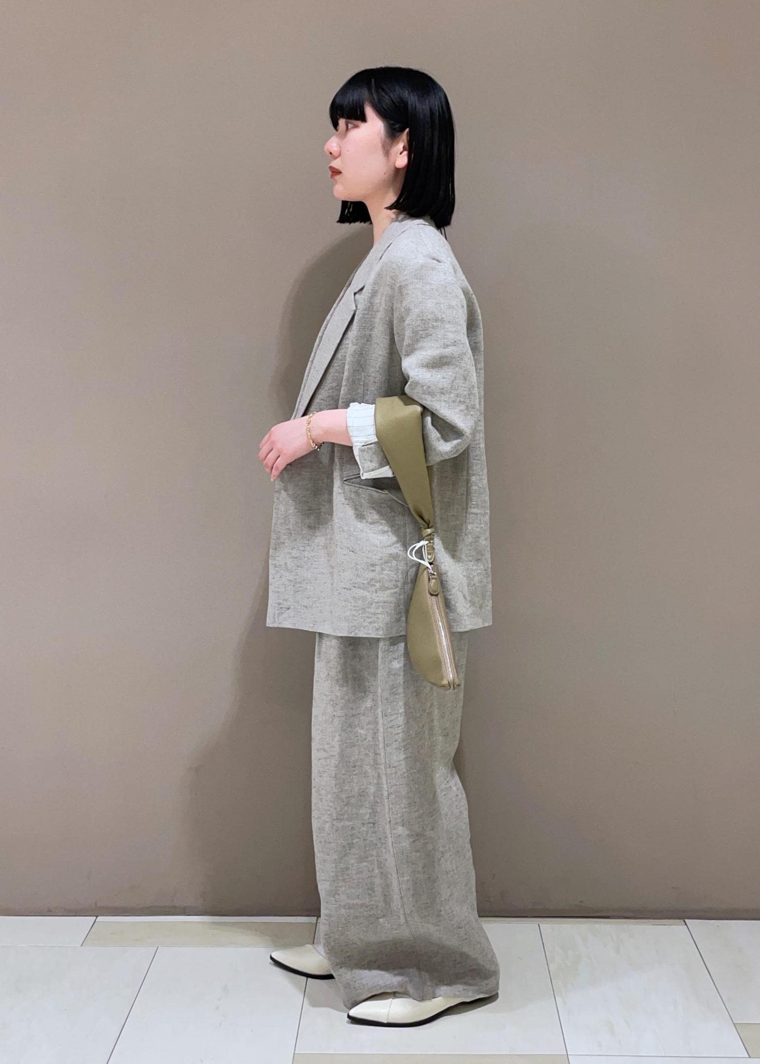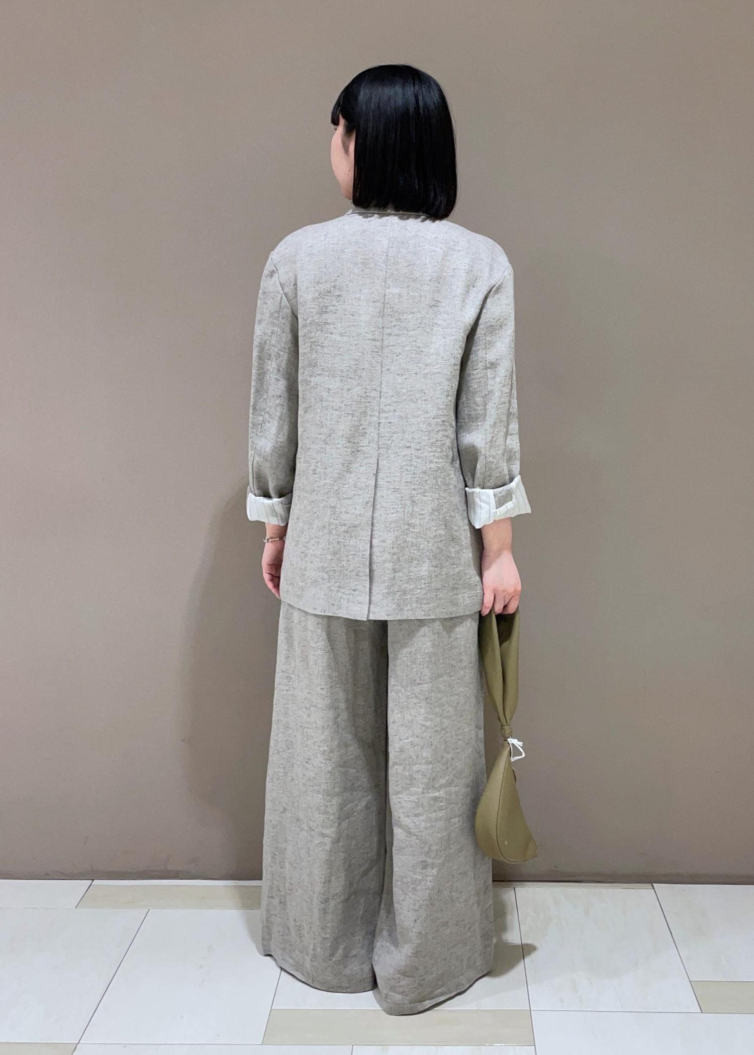 ADAM ET ROPÉ FEMMEリネンタックパンツベージュ / 36¥28,600レビュー着丈はだいぶ長め。162cmの私で、38サイズだとフラットシューズでは地面に付くほどです。ウエストはゆとりがあり、腰で落として履くこともできます◎