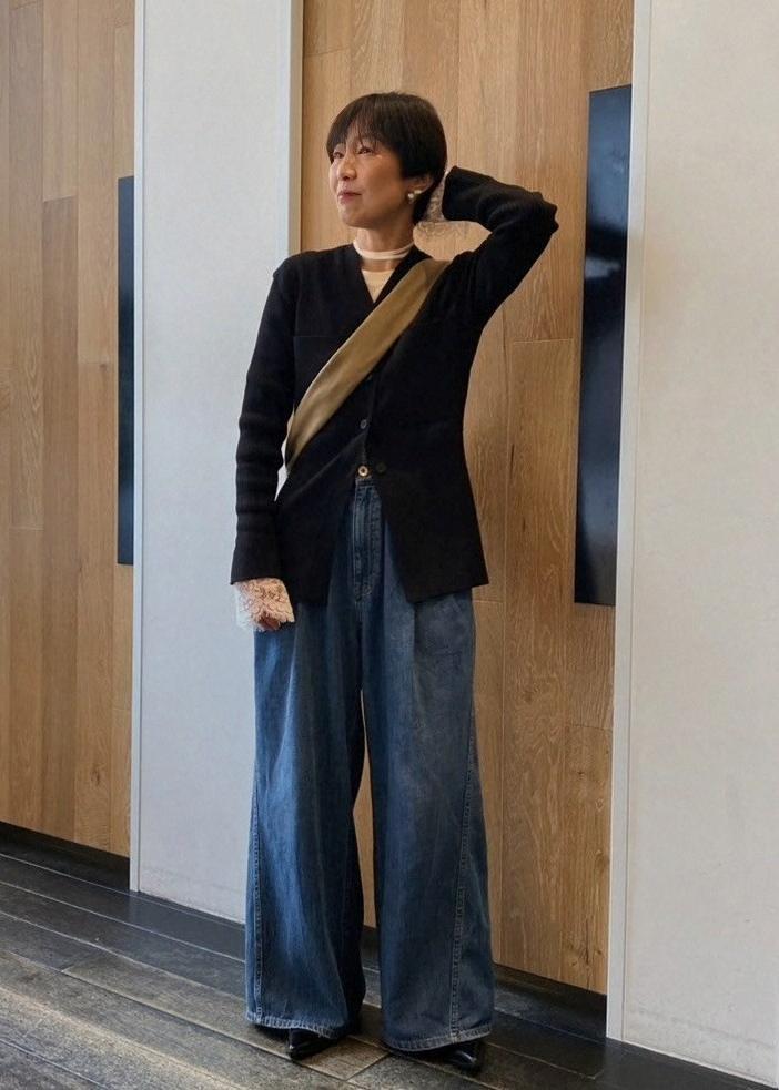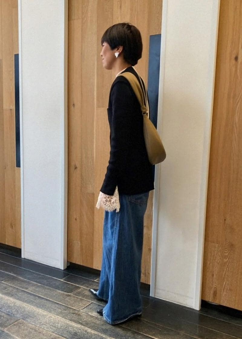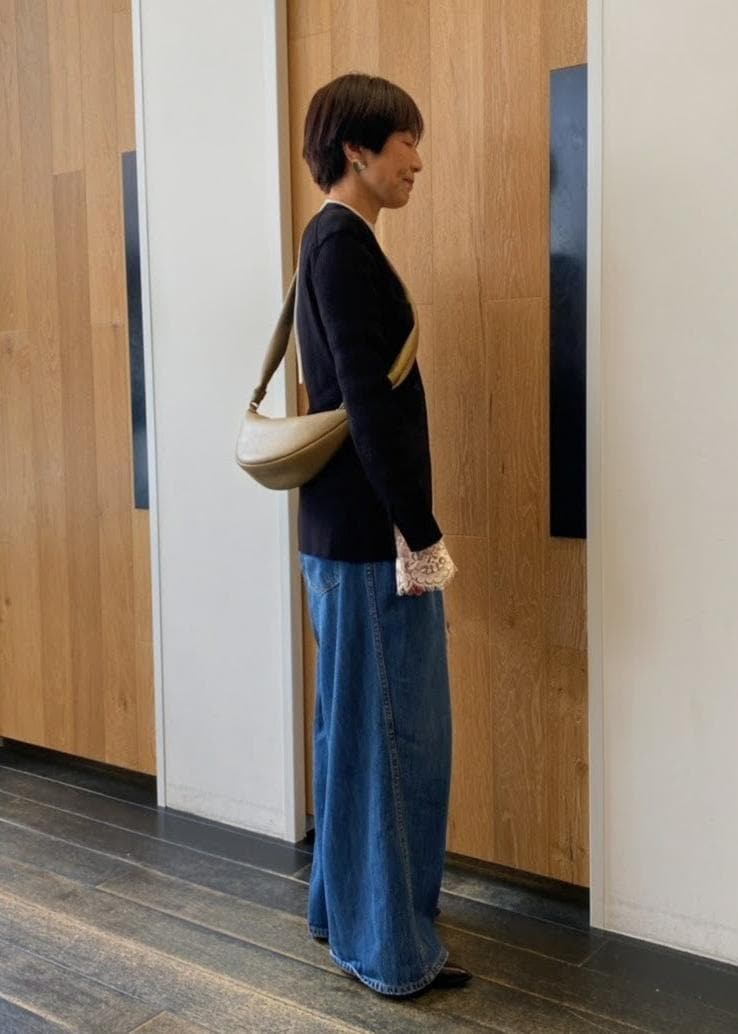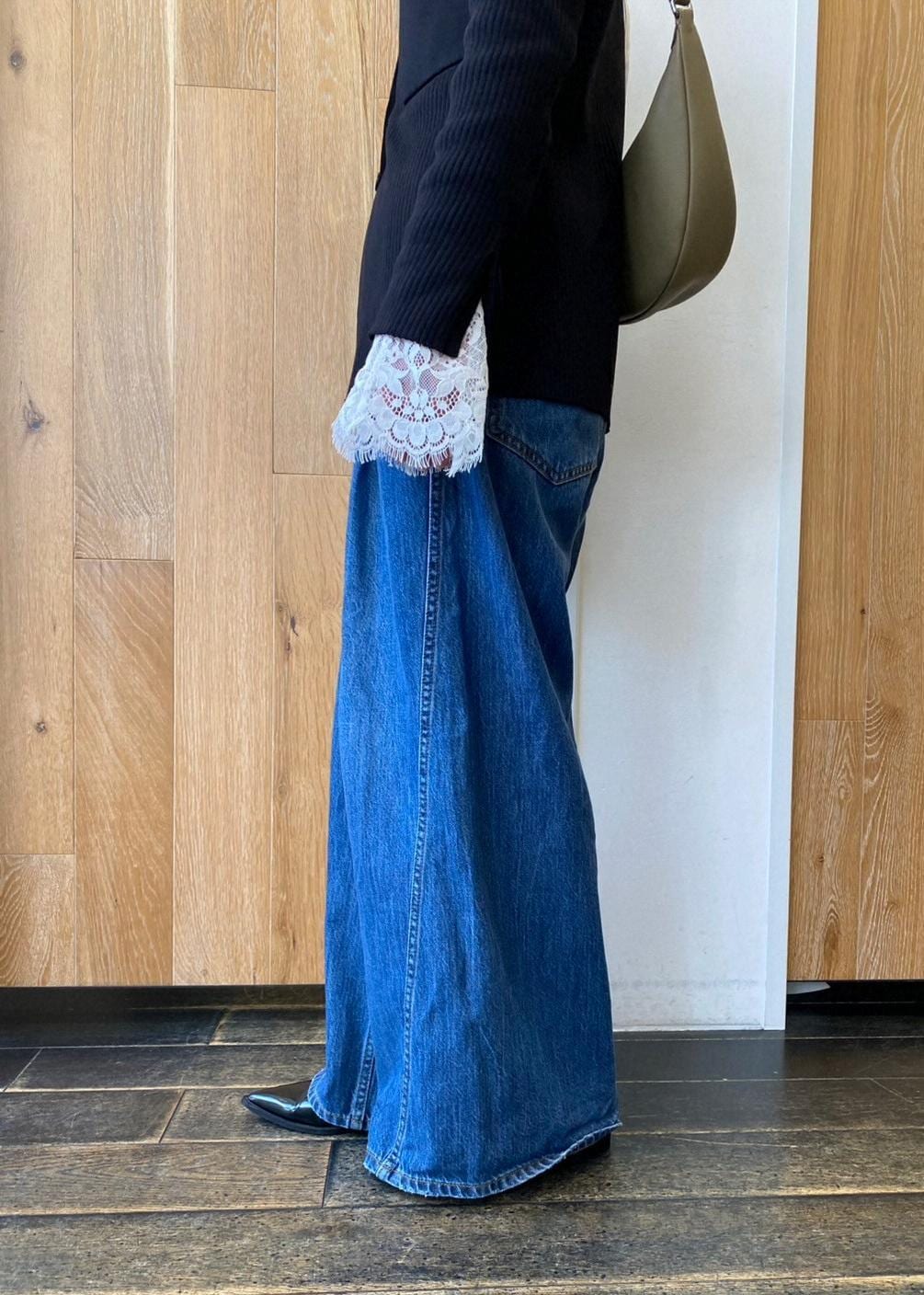 デニムと合わせると甘すぎす大人も着やすい重宝するカットソーです。