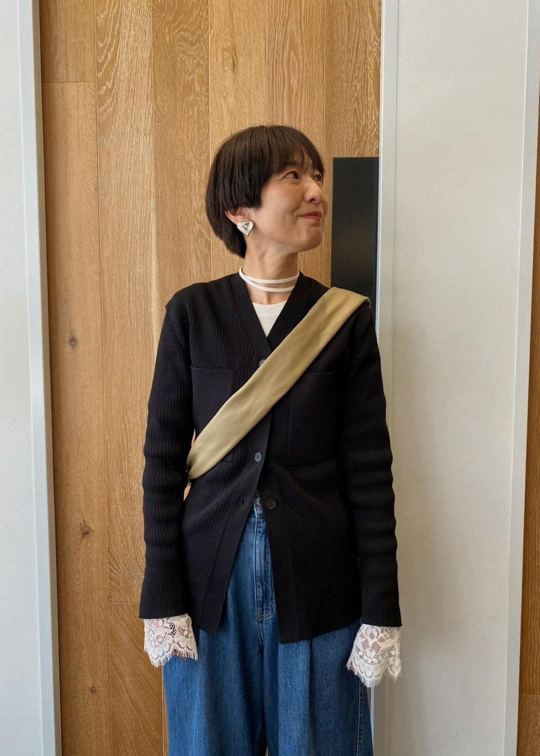 EMOELLE【EMOELLE】ポケットリブカーディガンブラック / F¥26,400レビューリブ素材で程よくフィットしますが、伸縮性があるので着やすいです。