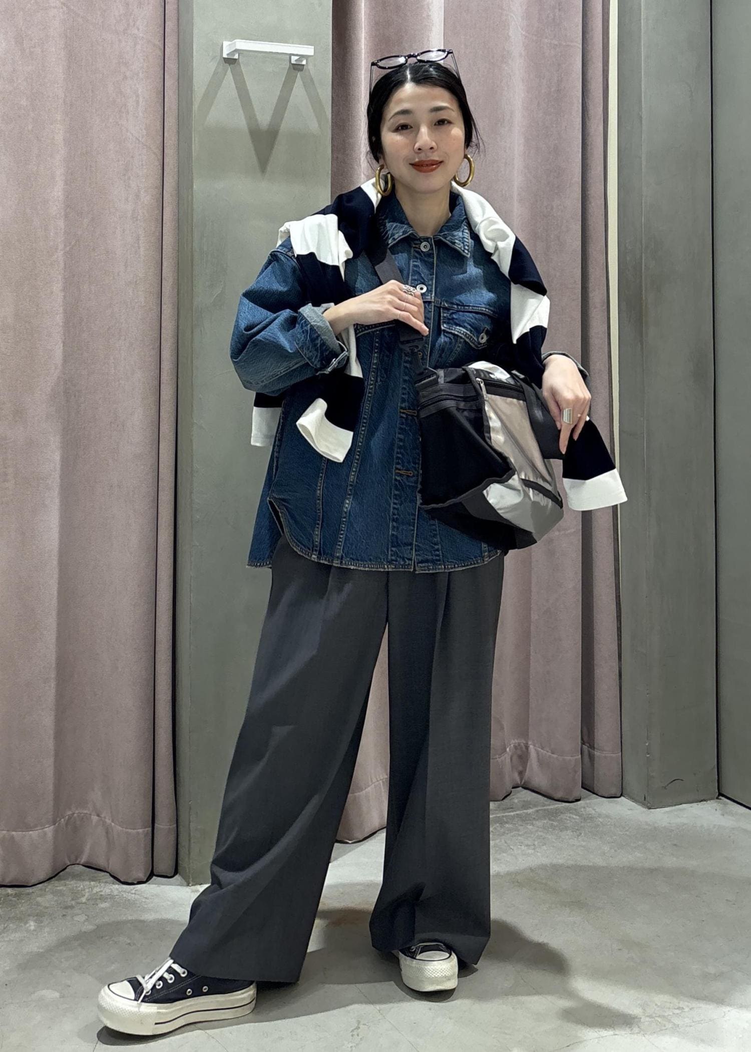 動きやすいデニムシャツにスラックスで楽だけどおしゃれな雰囲気でまとめてみました!