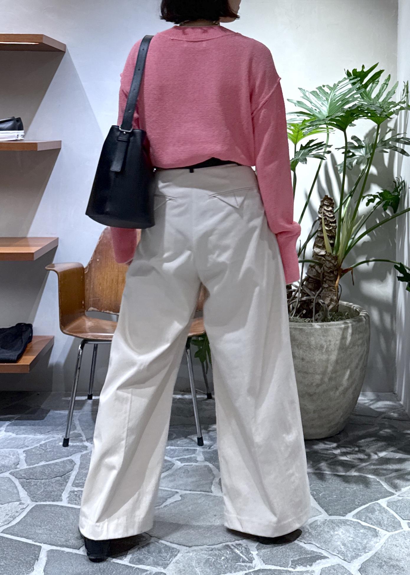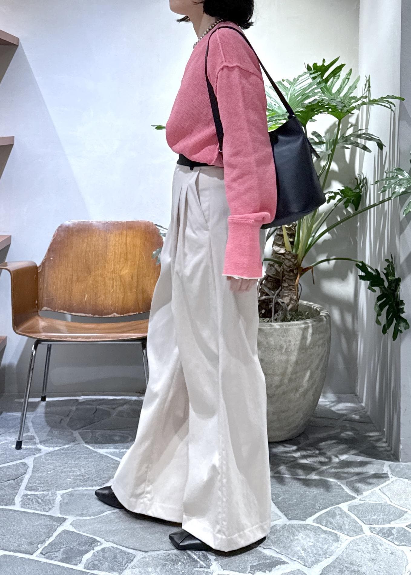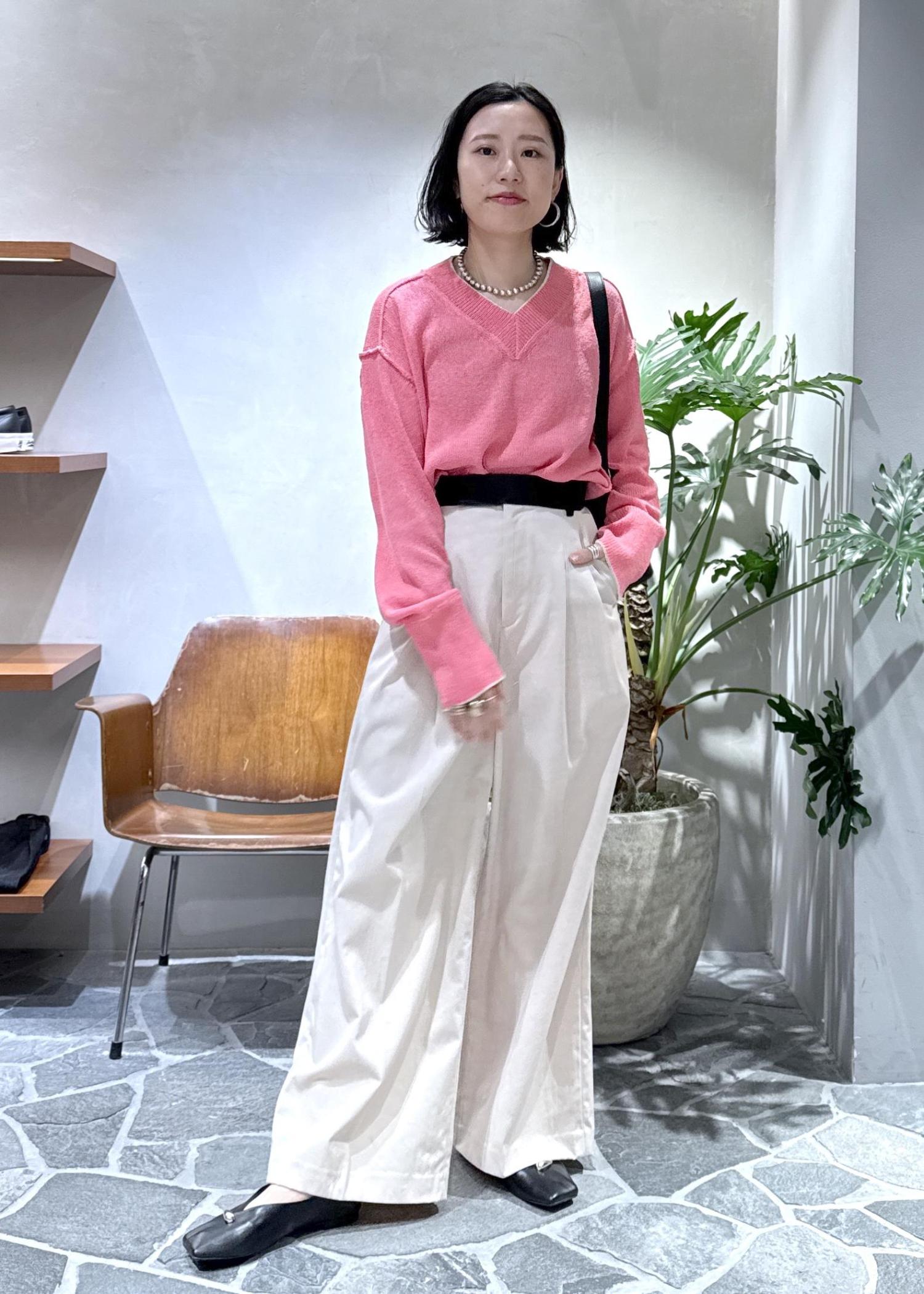 ADAM ET ROPÉ FEMMEペーパーヤーンプルオーバーピンク / F¥16,500レビューワイドな身頃と短丈のバランスが綺麗です。深すぎないVネックで合わせやすくなっています。