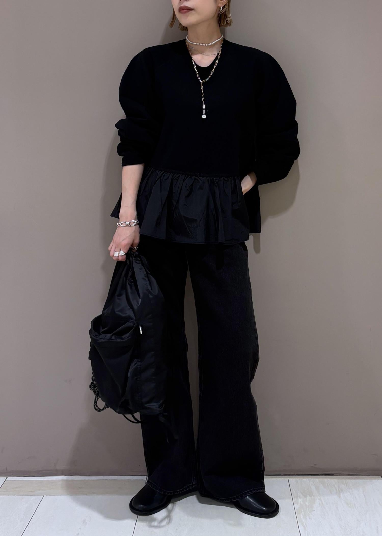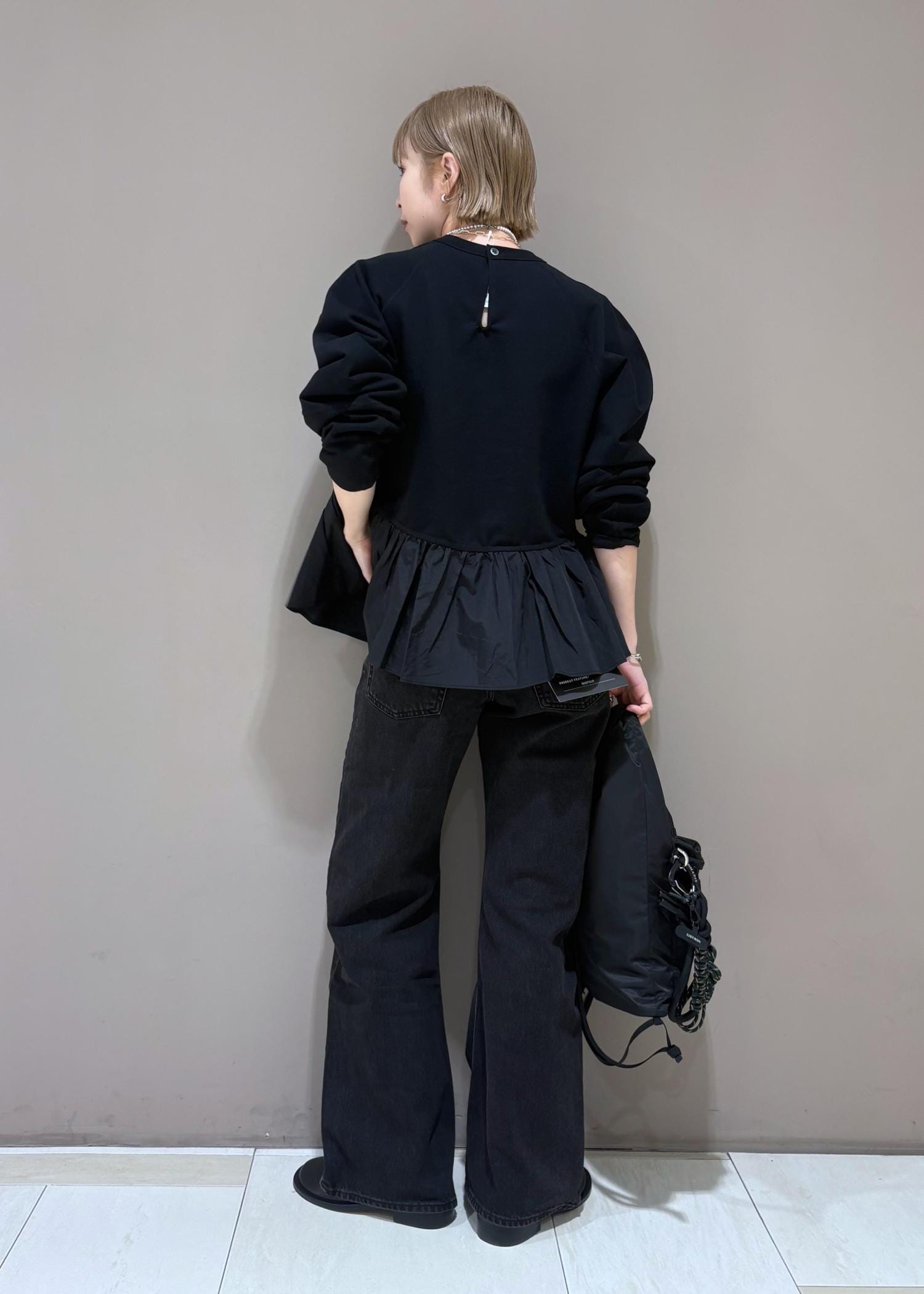 スウェット素材ですが、フェミニンな印象で着用できます◎