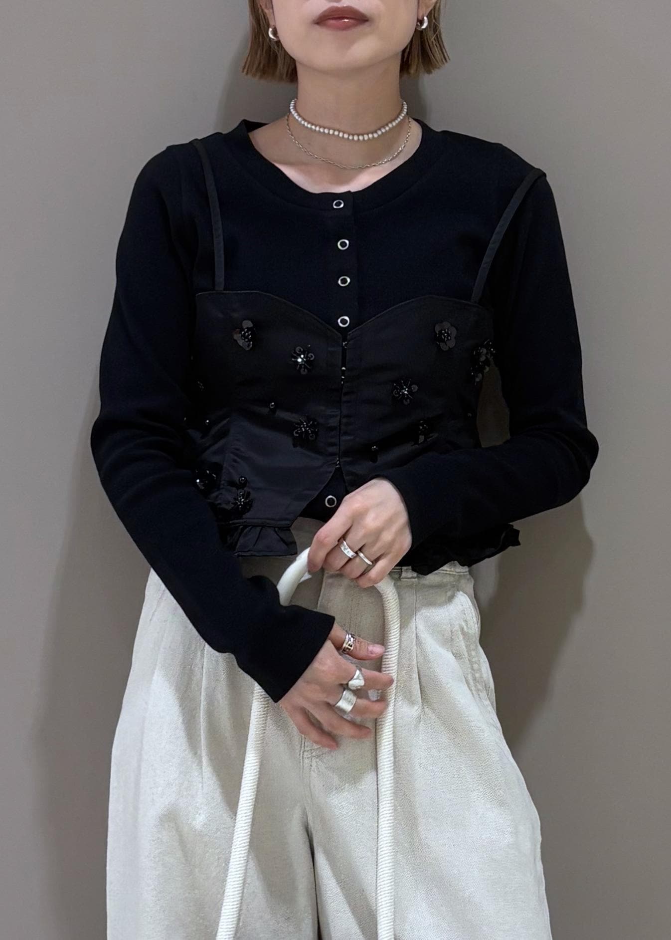 ADAM ET ROPÉ FEMMEシークインフラワービスチェセットカーディガンブラック / F¥17,600レビュー162cm、フリーサイズ着用。