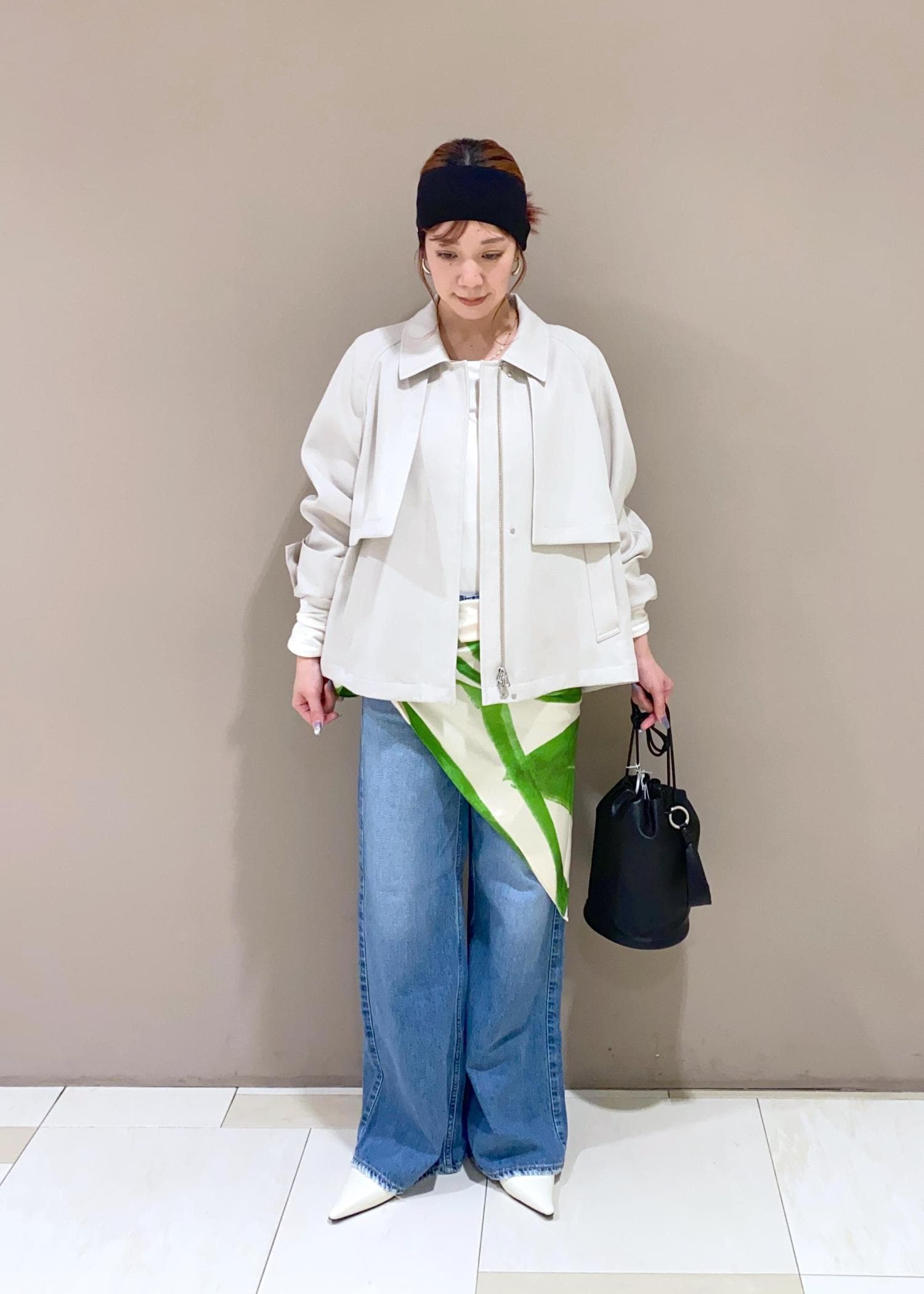 グリーンがポイントになって春らしいスタイリングになりますよね! -