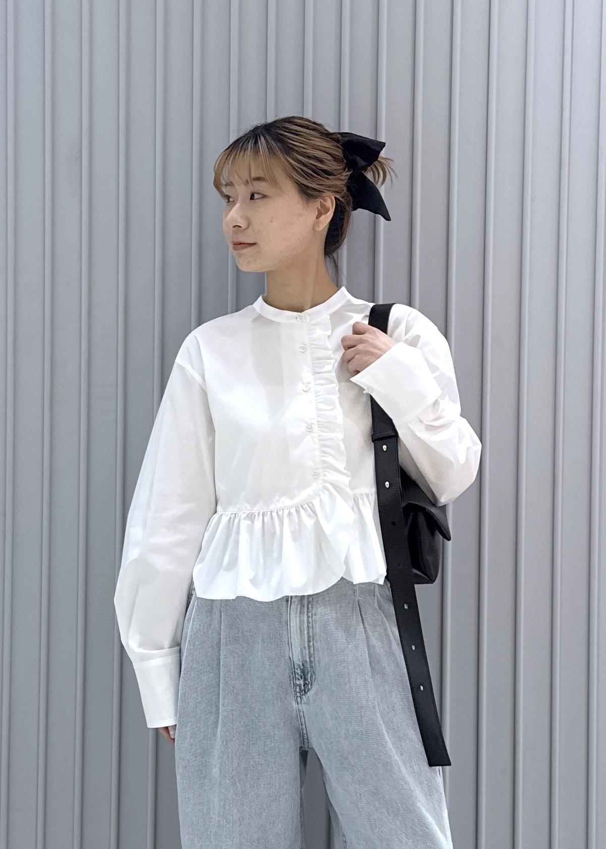 予約ADAM ET ROPÉ FEMME【サステナブル】ロングスリーブフリルブラウスホワイト / F¥16,500レビューフリルでフェミニンなデザインですがコンパクトな丈感ですっきりとした印象です!