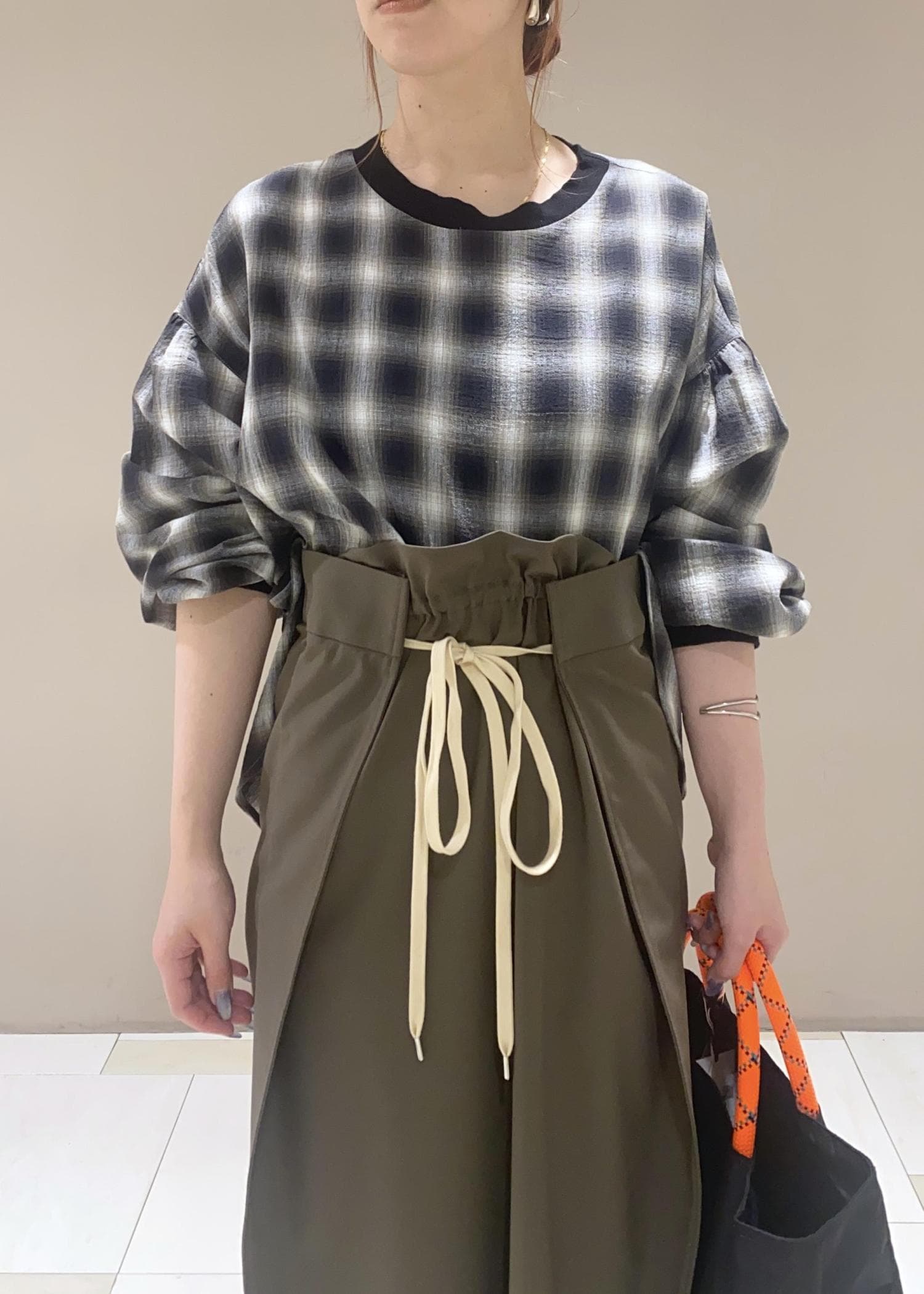 ADAM ET ROPÉ FEMMEチェックプルオーバーブラック系 / F¥19,800レビュー麻が少し入っているサラッとした生地のトップスです。