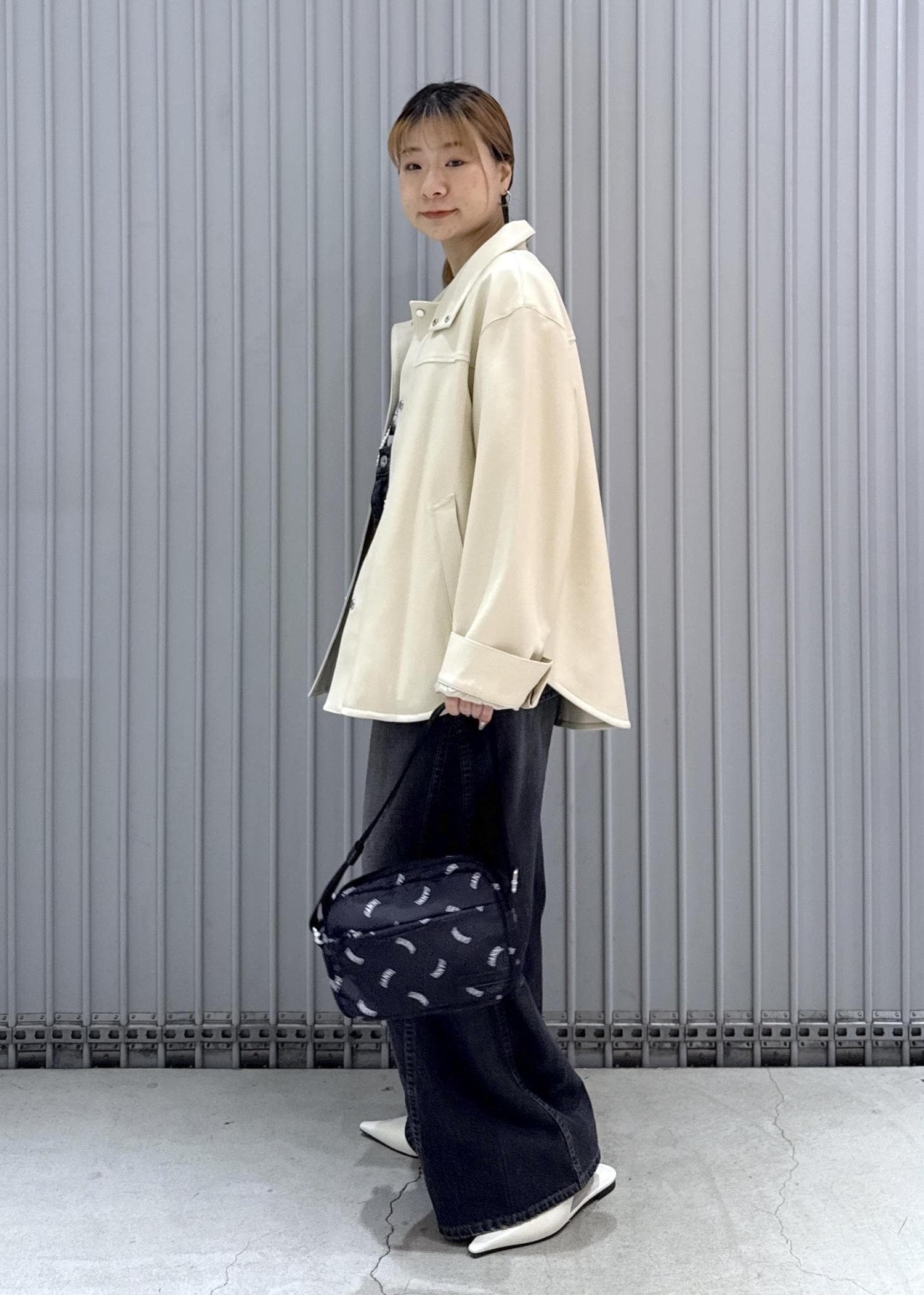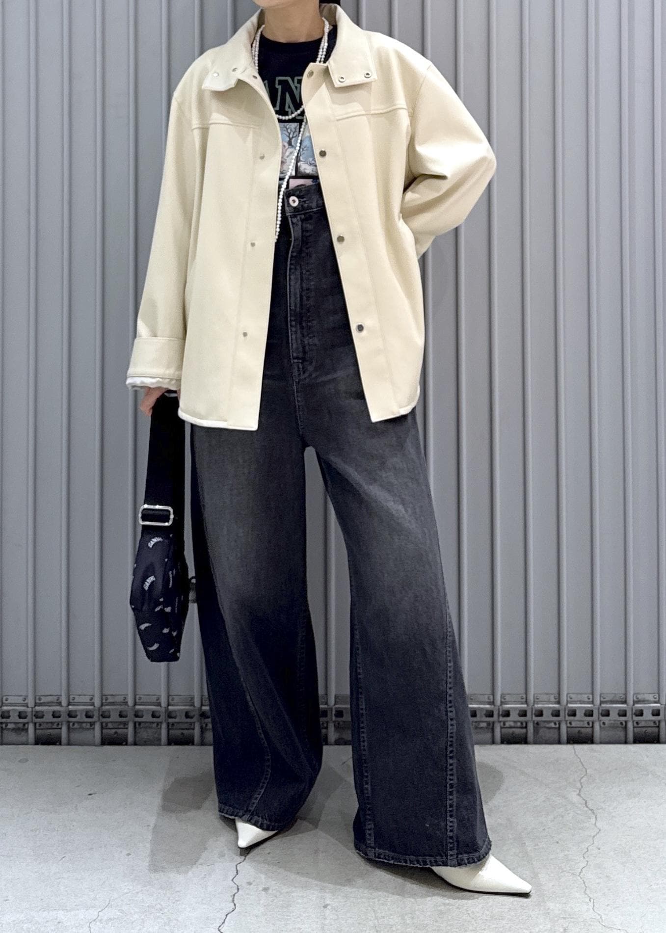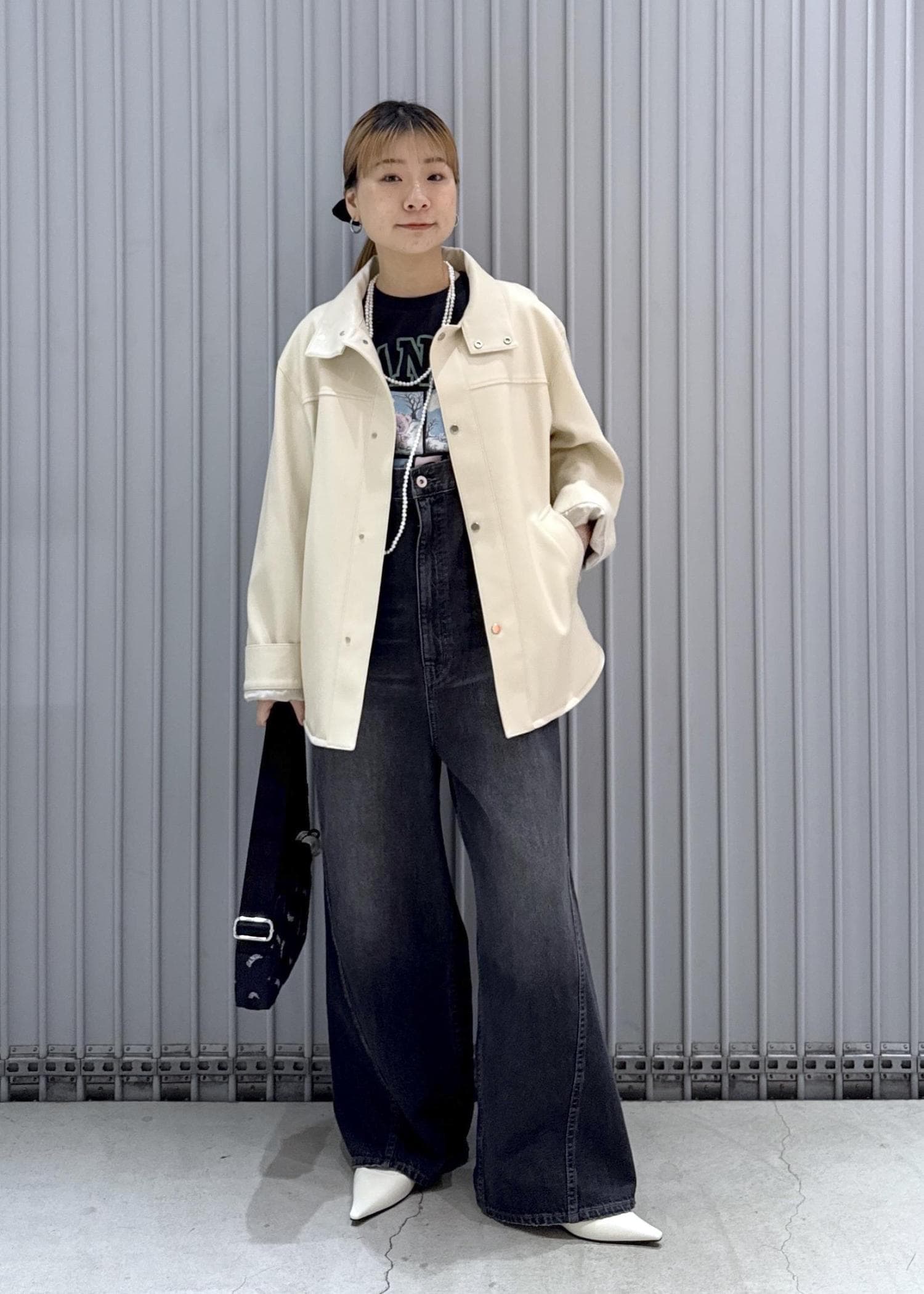 フェイクレザーのブルゾンがホワイトで柔らかい雰囲気に♡