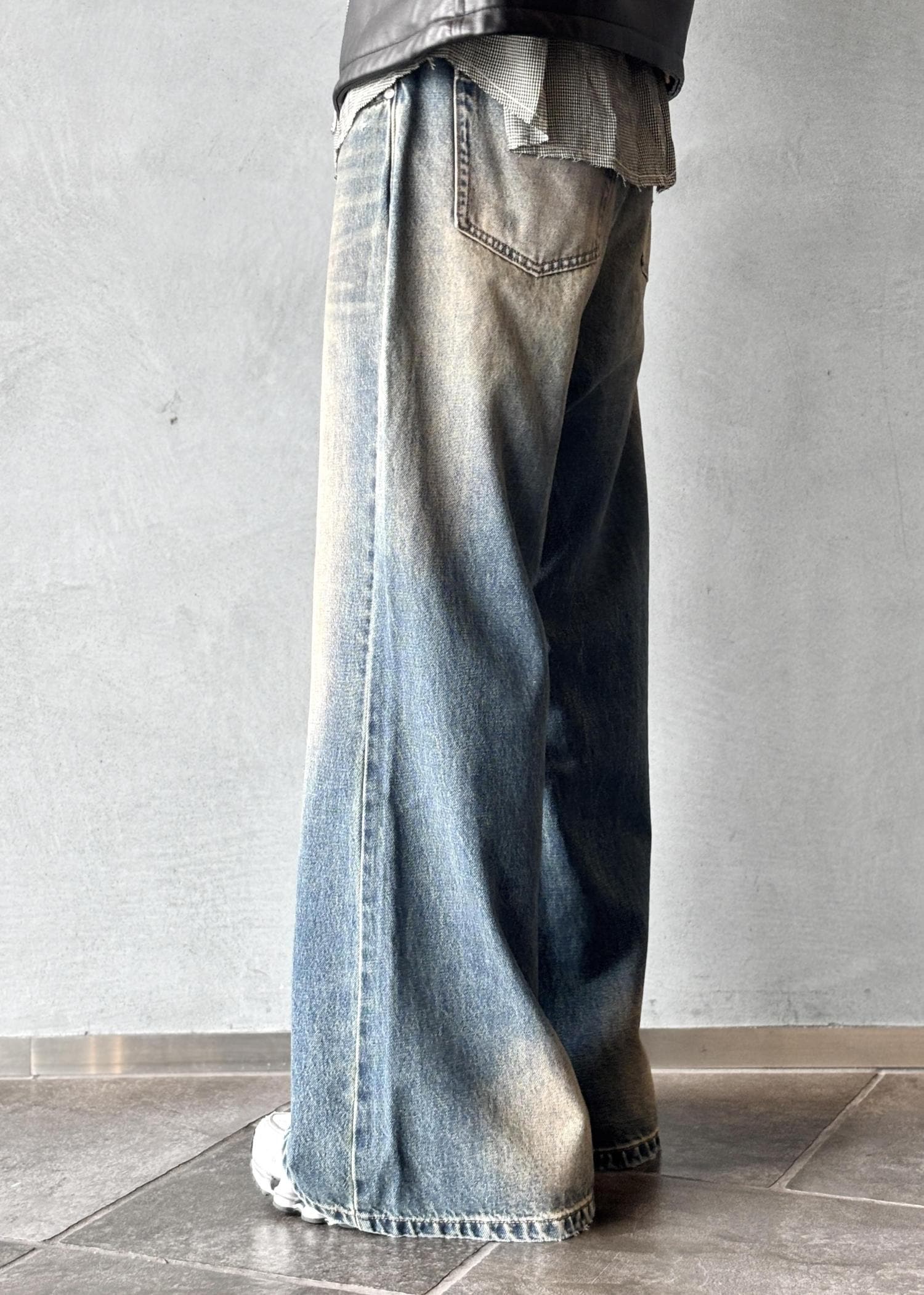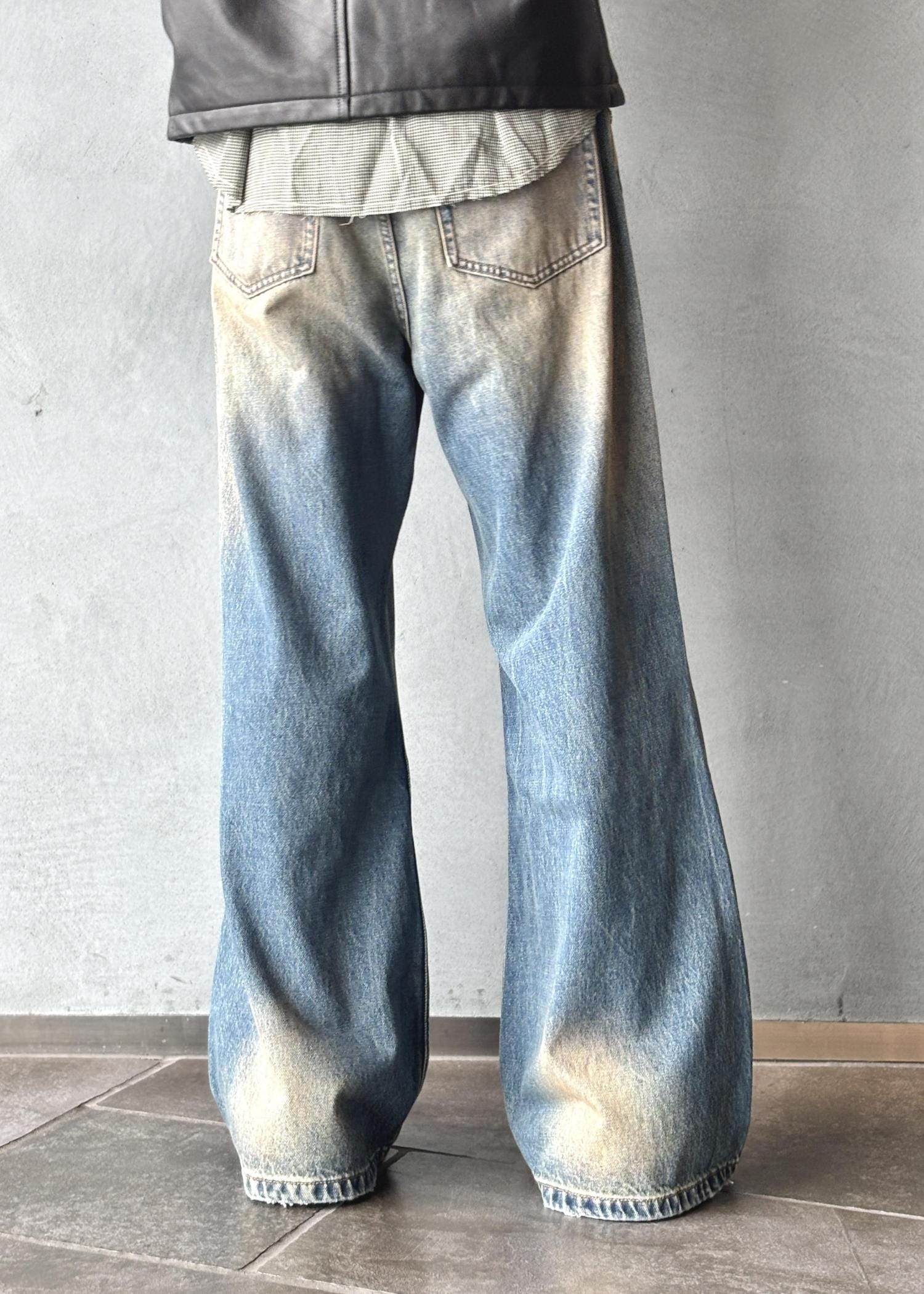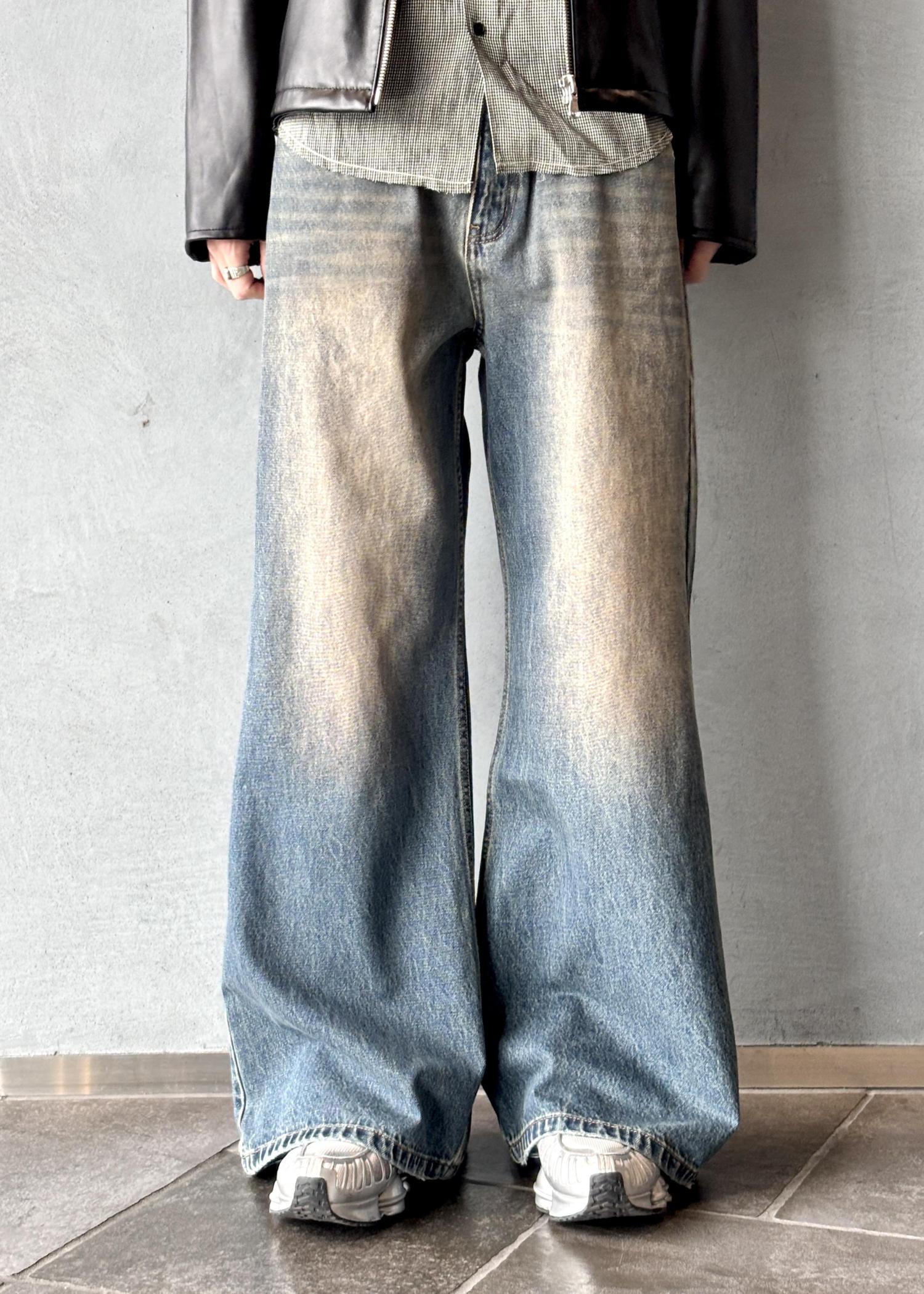 広がりのあるシルエットと独特な色落ちが特徴で、スタイリングの主役になる一本です。
