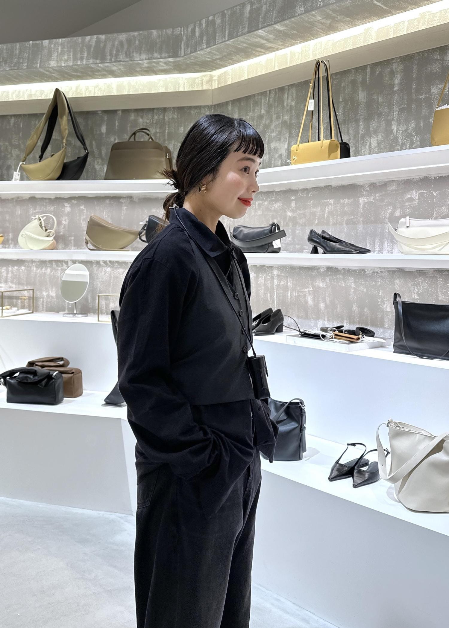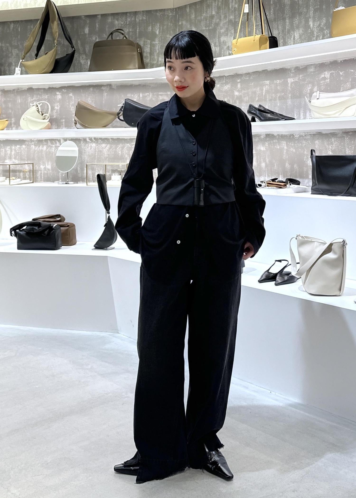 今回はブラックシャツにベストをレイヤード