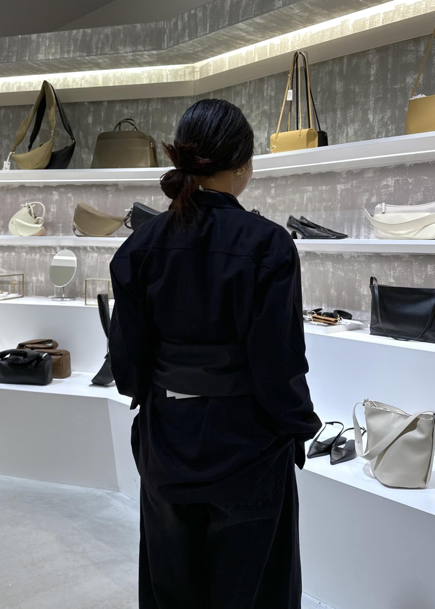 ブラックシャツのレイヤードスタイル