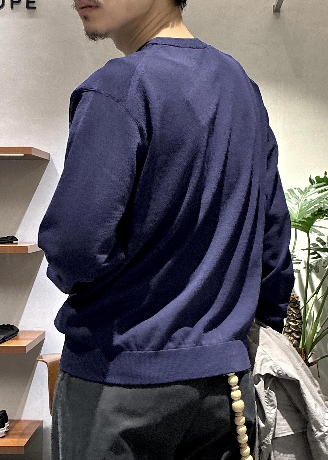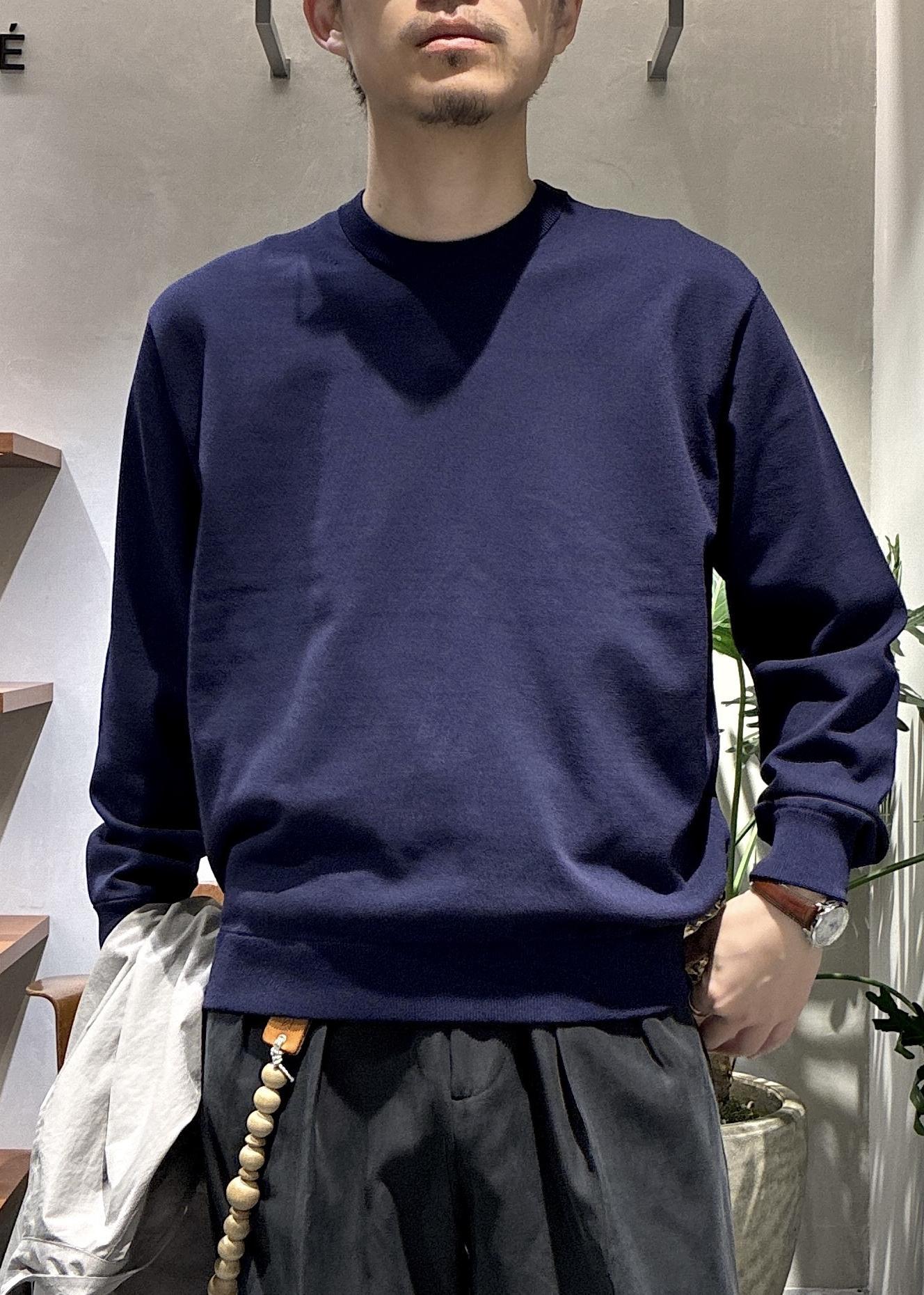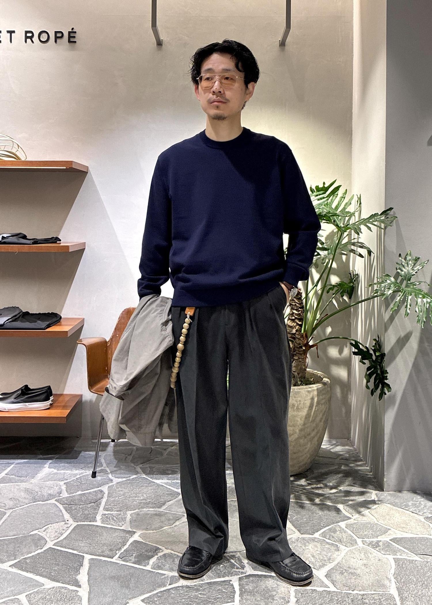 ADAM ET ROPÉ HOMME強撚プレーティングニットプルオーバーネイビー / M¥12,100レビューややゆったりめのサイズ感で、大きめに着たい方は一つ上のサイズがおすすめです。コットンとポリエステルがメインの素材なのでとにかく扱いやすく、インナーから一枚着まで汎用性が高いのも◎