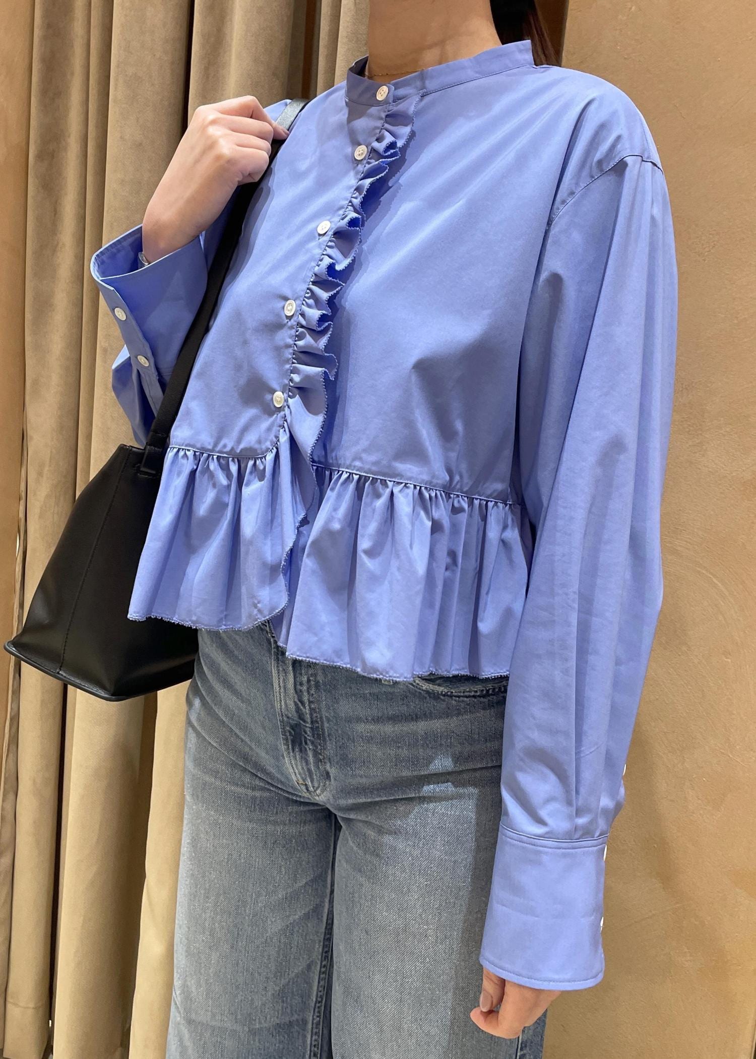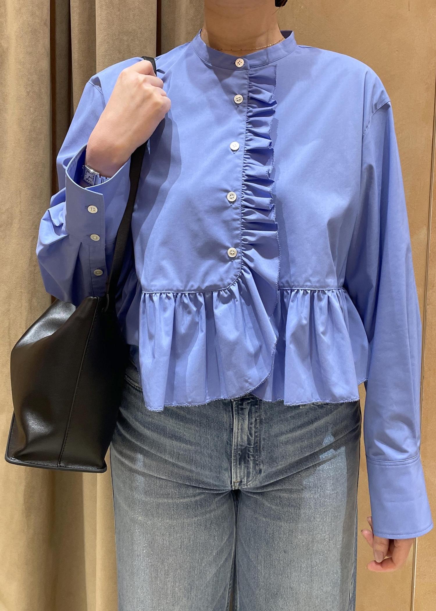予約ADAM ET ROPÉ FEMME【サステナブル】ロングスリーブフリルブラウスサックス / F¥16,500レビュー1枚で着映えするブラウスです!ONOFFで着用でき、お仕事着にも◎162cmで腰ぐらいの丈感でヒップは隠れませんが、フリル感が腰回りが気になられる方にも◎
