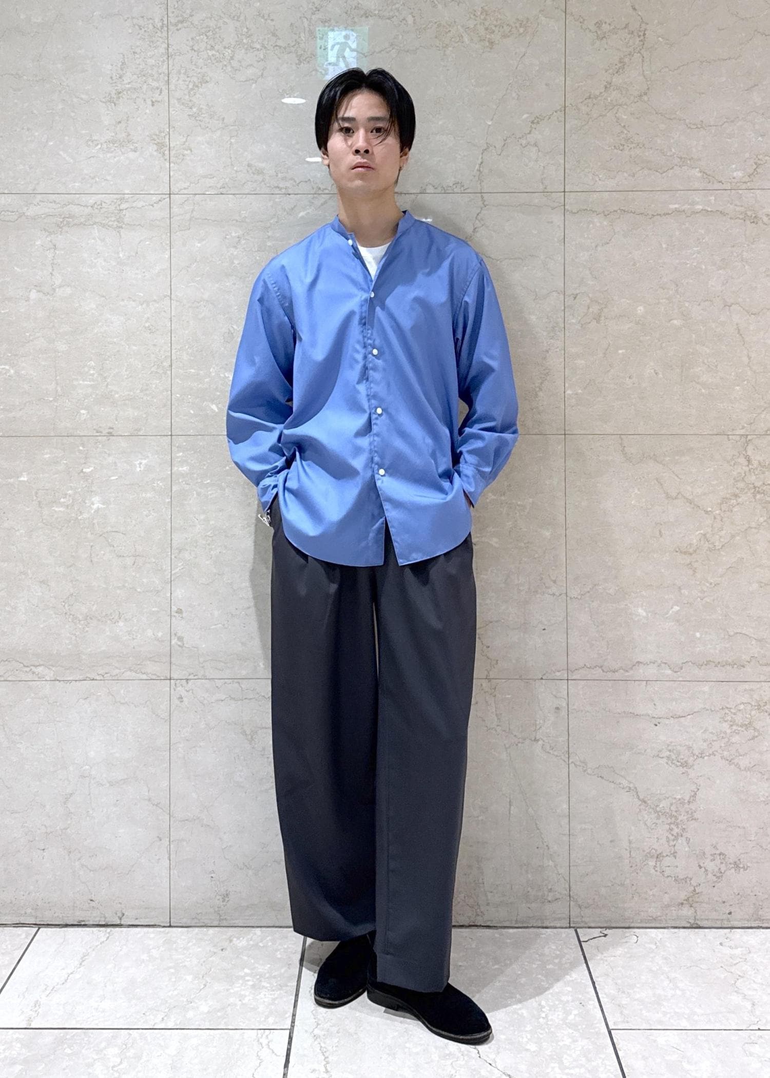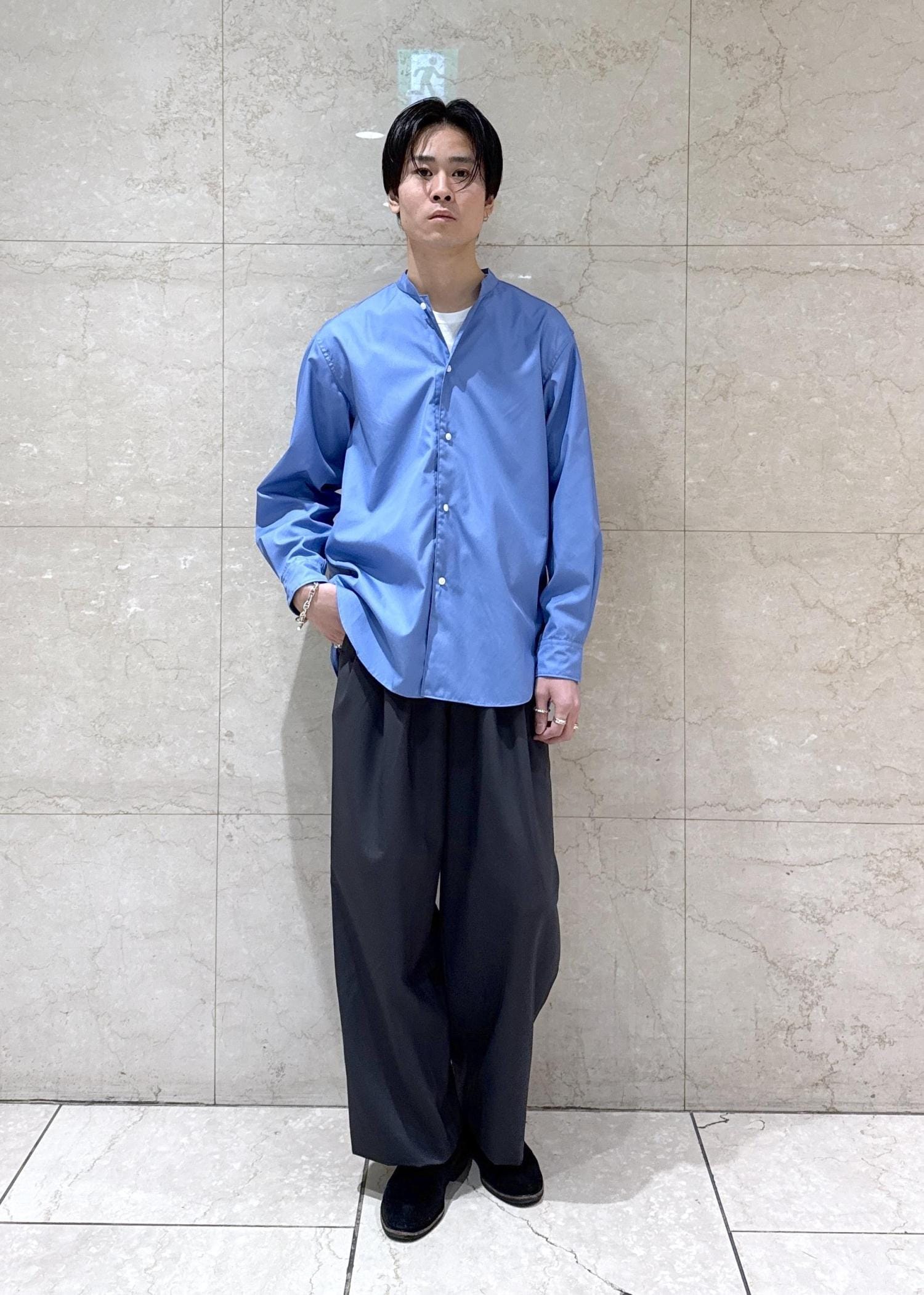 ADAM ET ROPÉ HOMME【blurhms/ブラームス】Cotton Broad Standing-Collar Shirtブルー系 / 2¥34,100