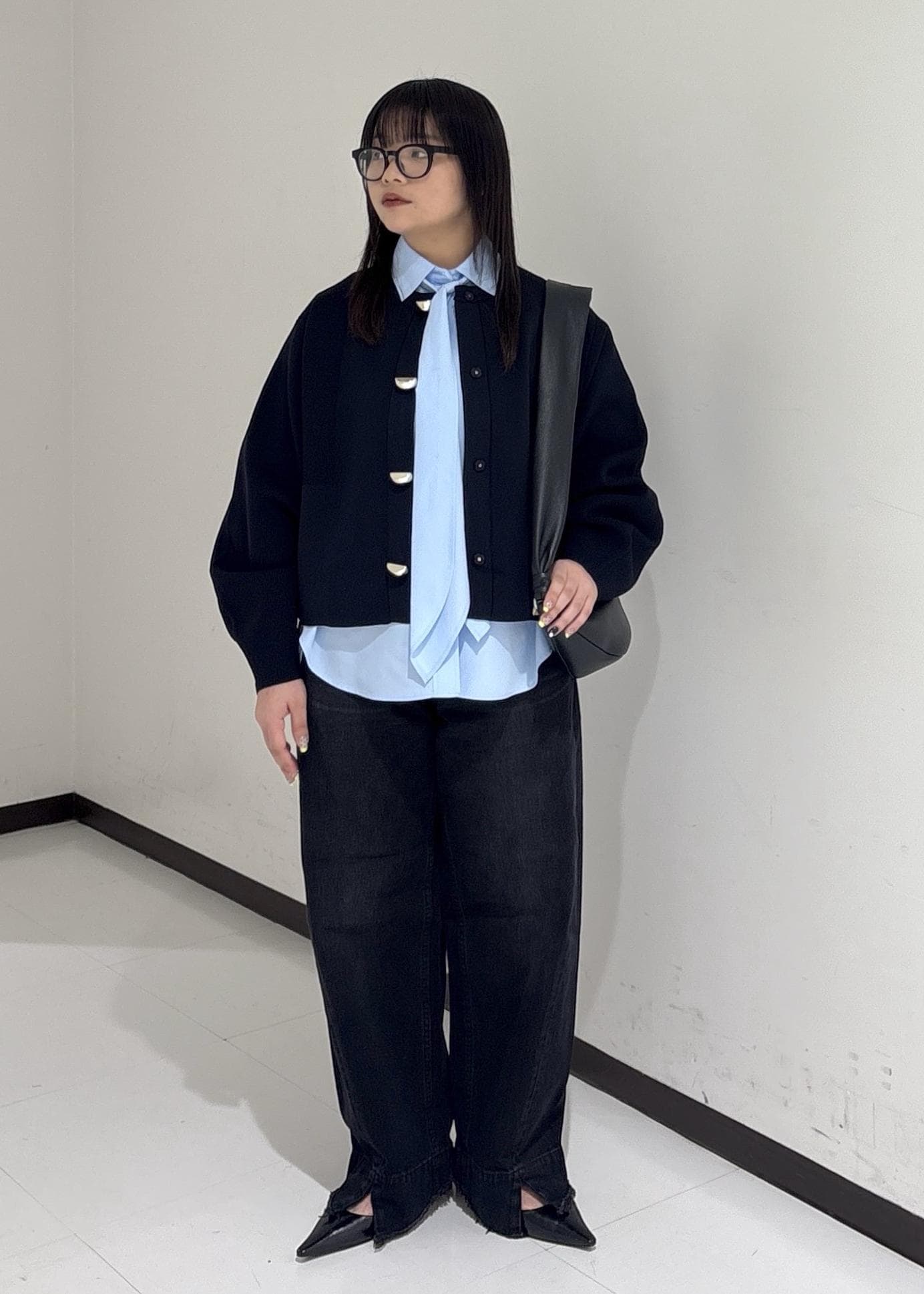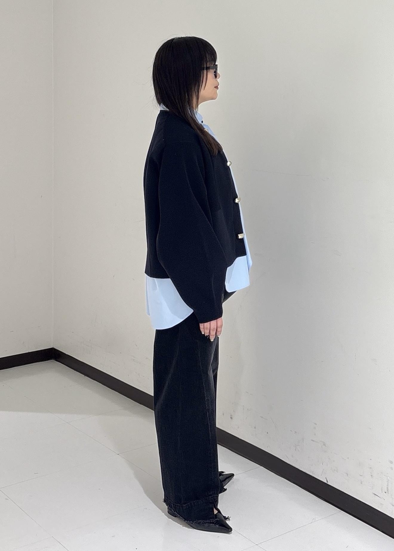 身長156cmでお尻が隠れないぐらいの丈感なのでワイドパンツ、ロングスカート合わせなどシーンによって着回しもできます♪ -