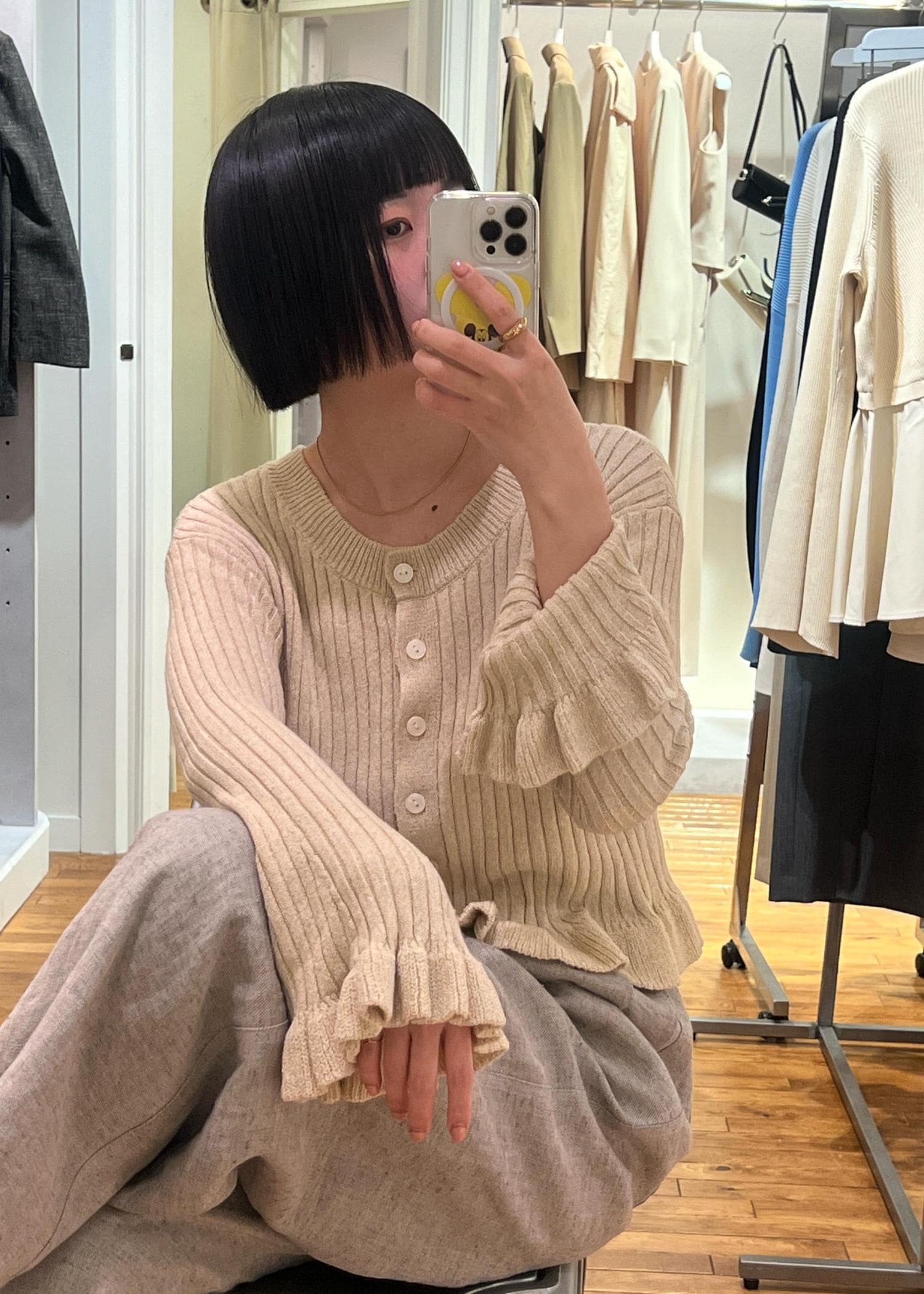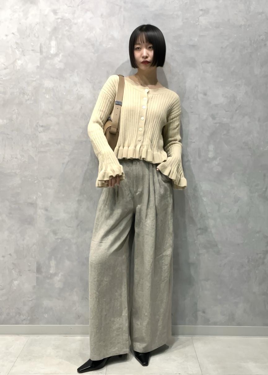 ADAM ET ROPÉ FEMME【WEB限定】2WAYフリルリブカーディガンキナリ系 / F¥11,880レビュー伸縮性のある素材感や、肌心地の良い生地でした◎
