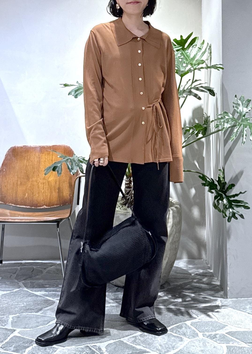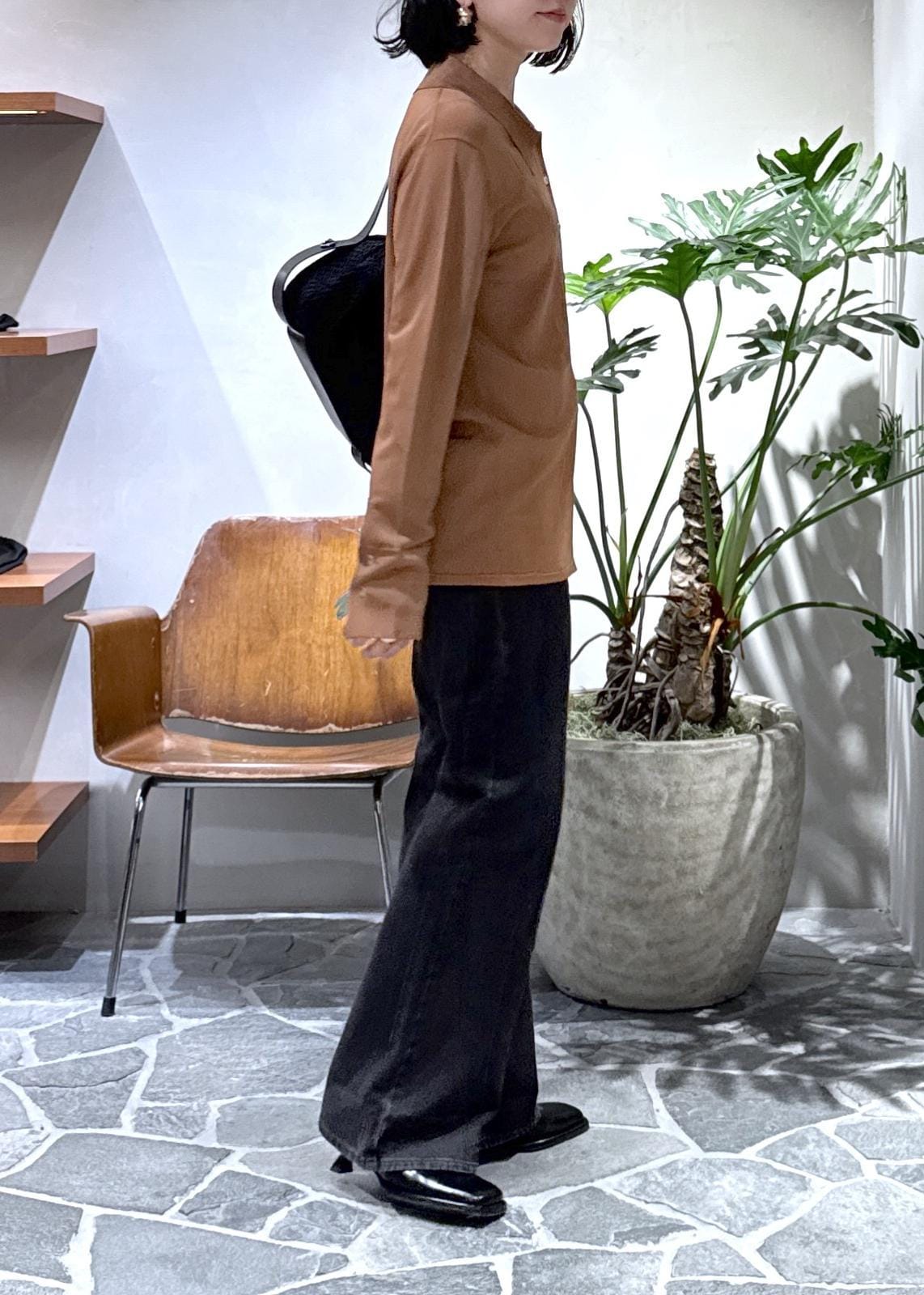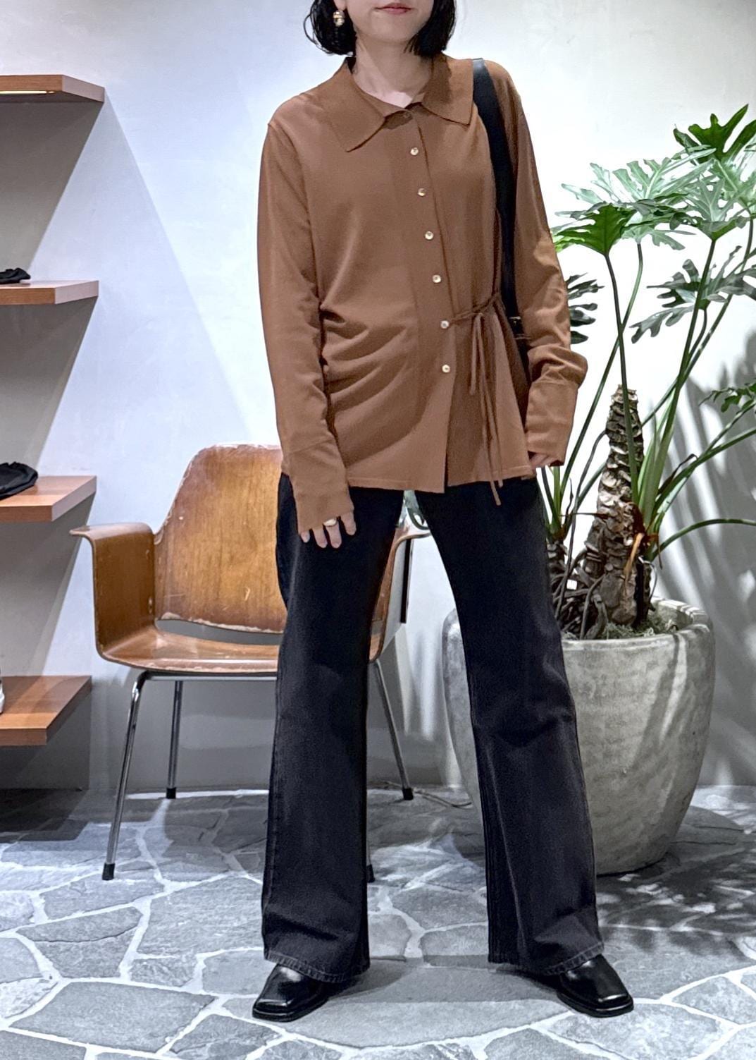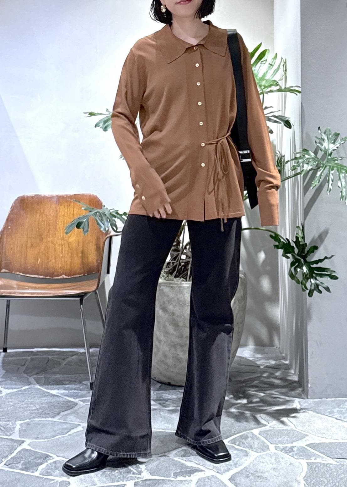 形が本当に綺麗なので、シンプルにカーディガンと合わせてスタイリングしました。
