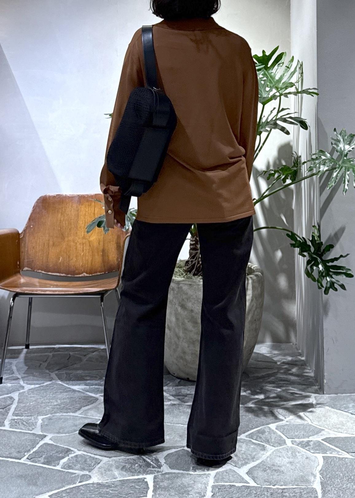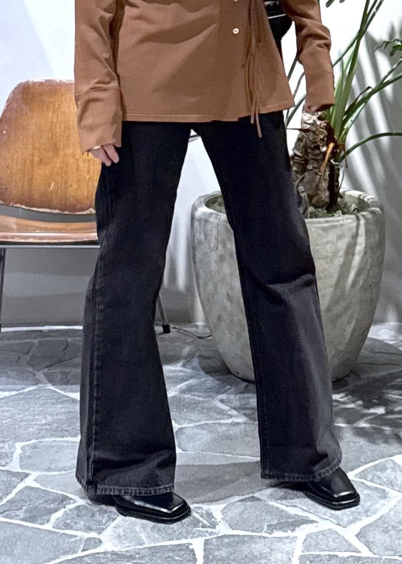 ブーツカットで脚長効果はもちろん、少し赤みを含んだブラックでヴィンテージライクなブラックなので、キレイめ過ぎずにかっこよくスタイリングしていただけます。