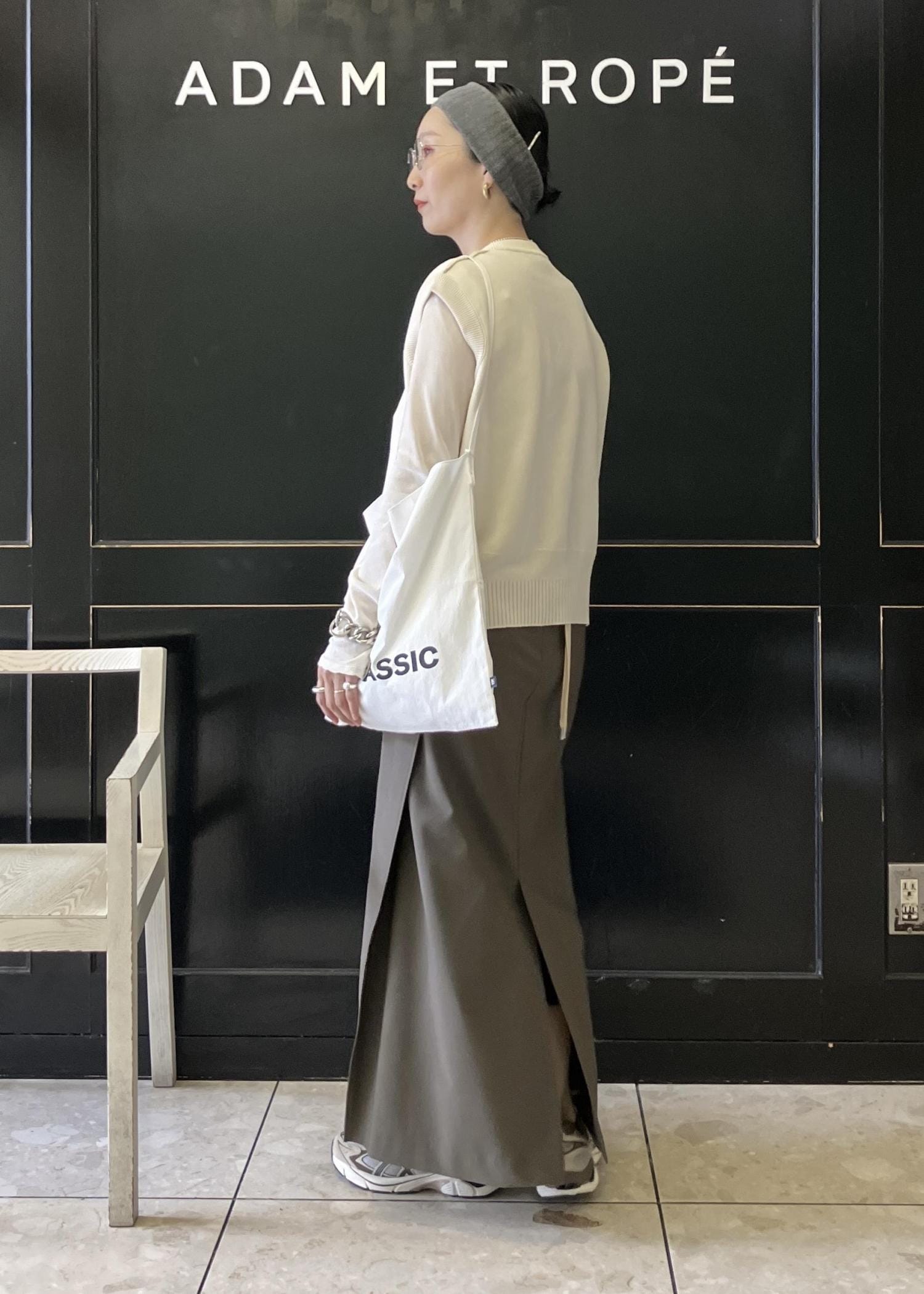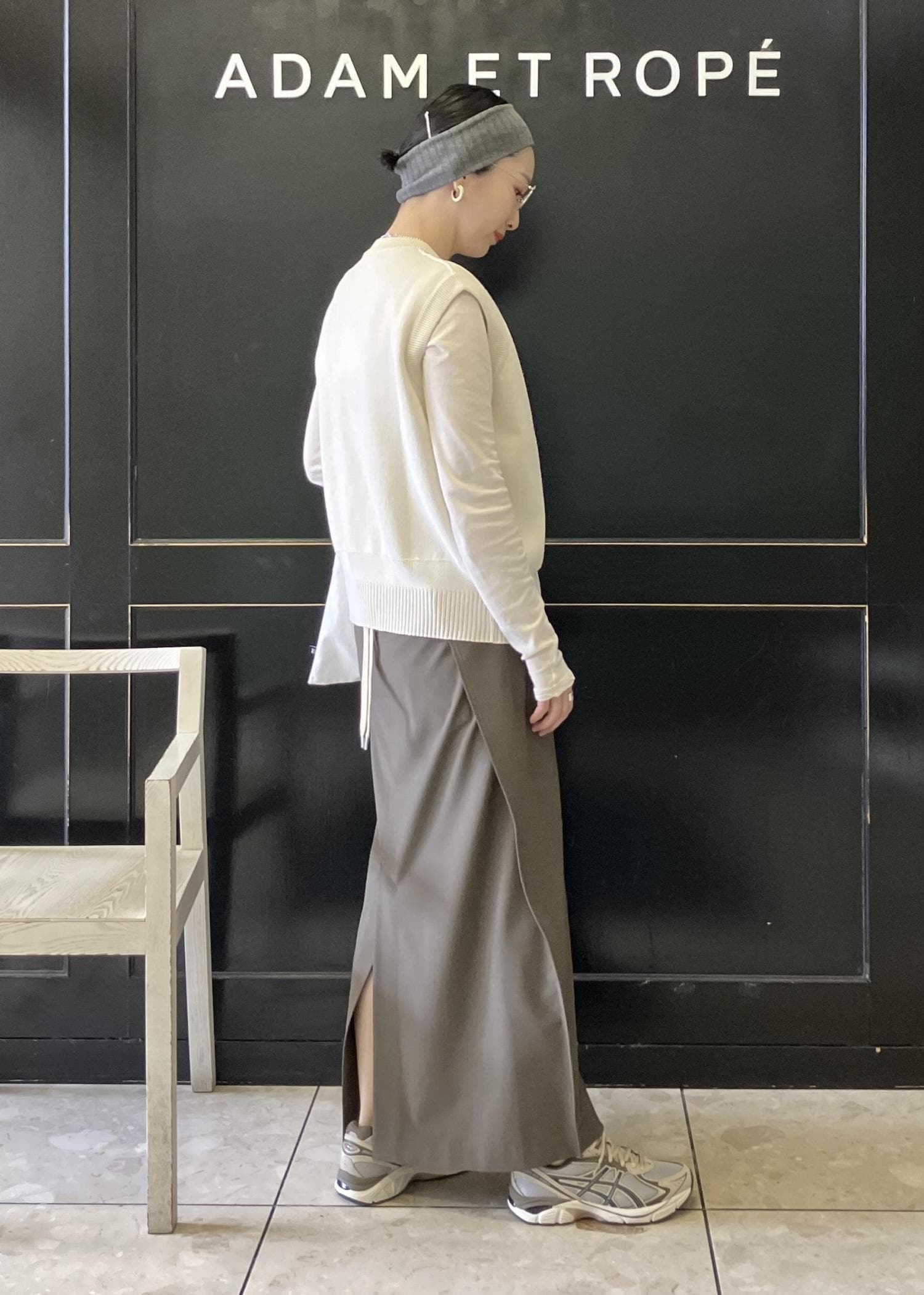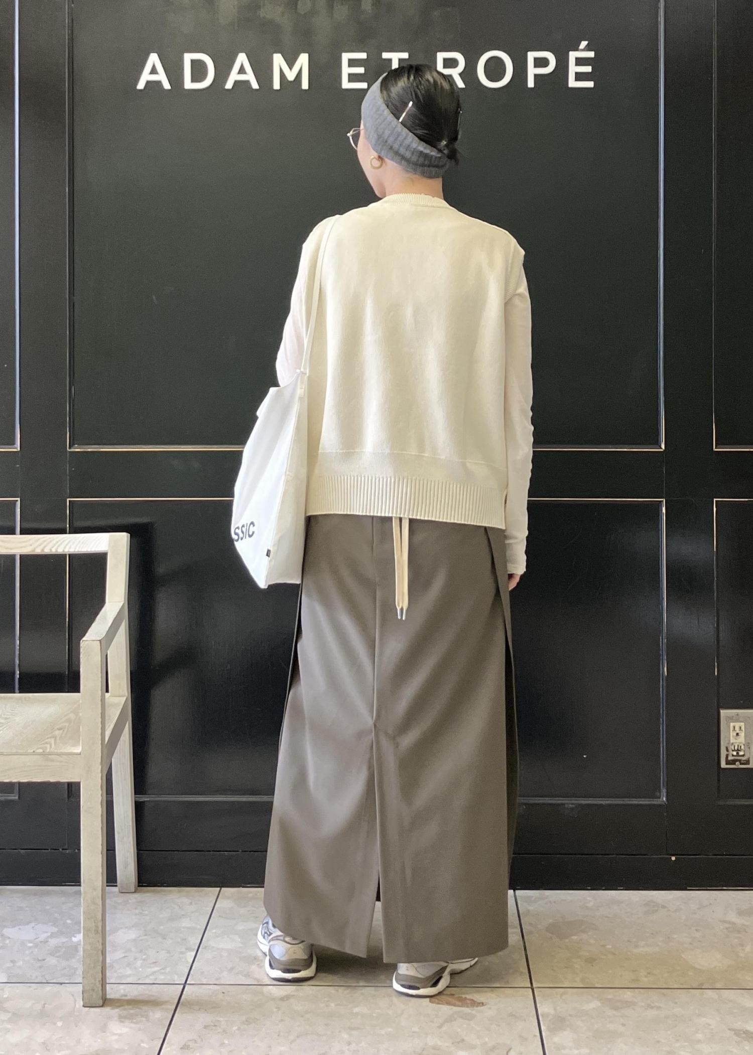 ADAM ET ROPÉ FEMMEドロストリーンスカートブラウン / 38¥22,000レビュードロストリーンスカートはサイドの布を前にも後ろにも折りたたむことが出来るので、違ったイメージでその日の気分で雰囲気を変えて、着ていただけます!