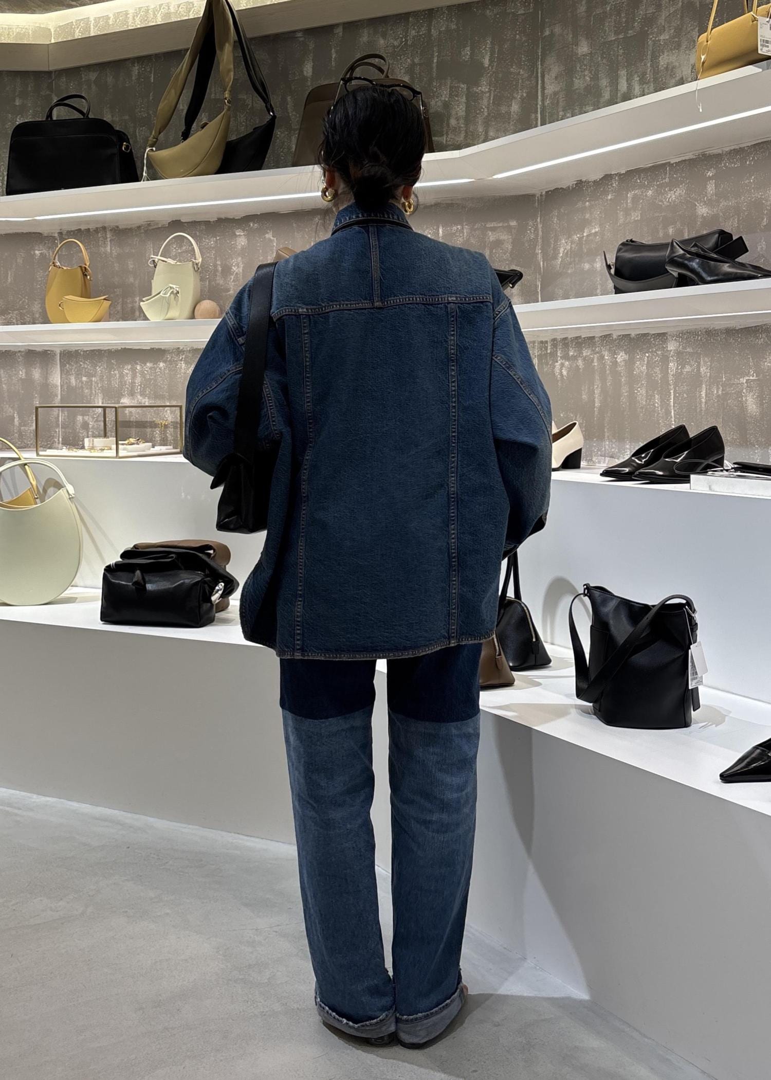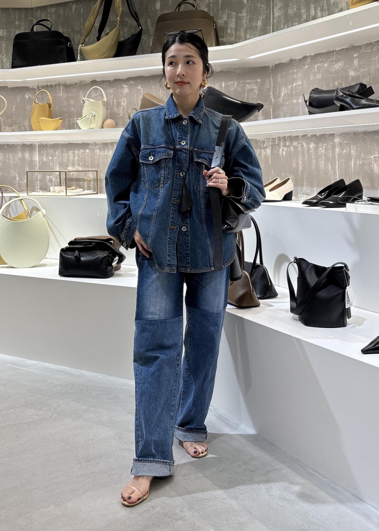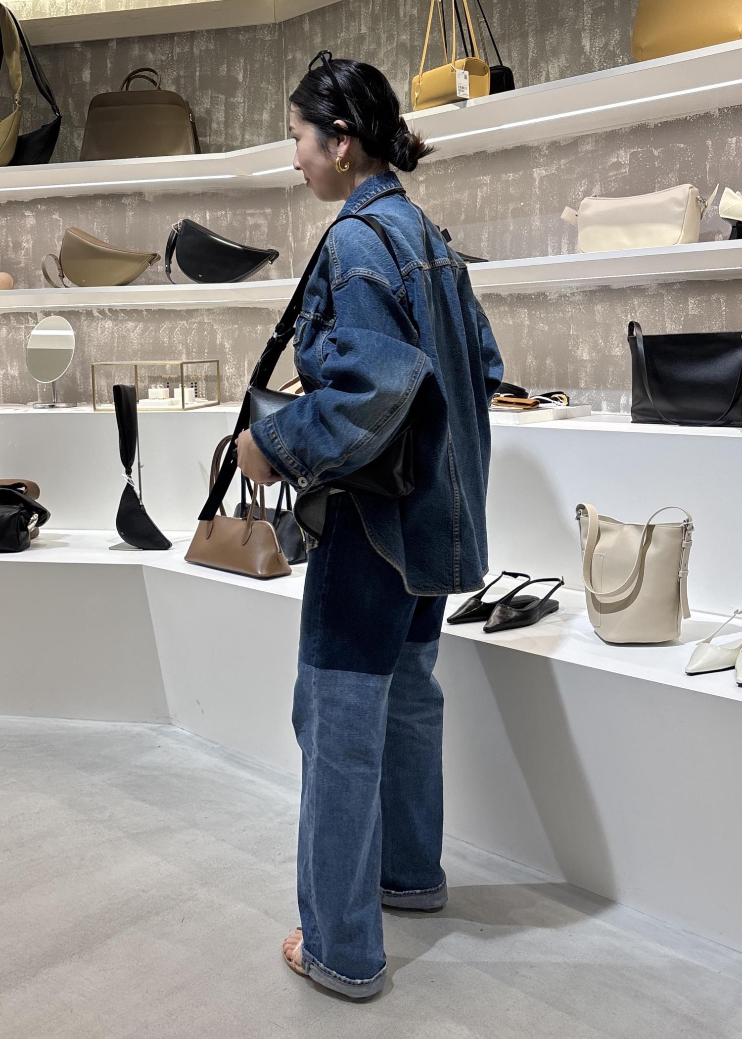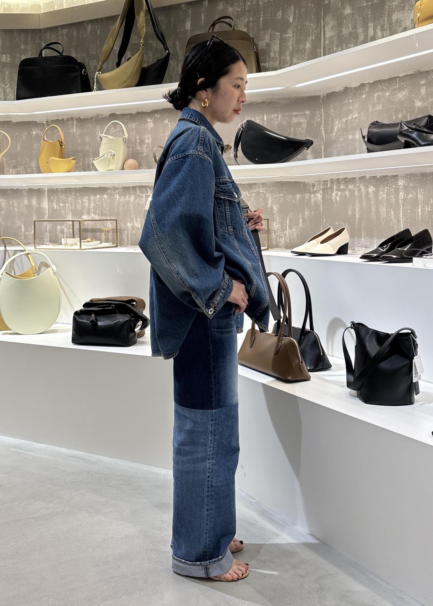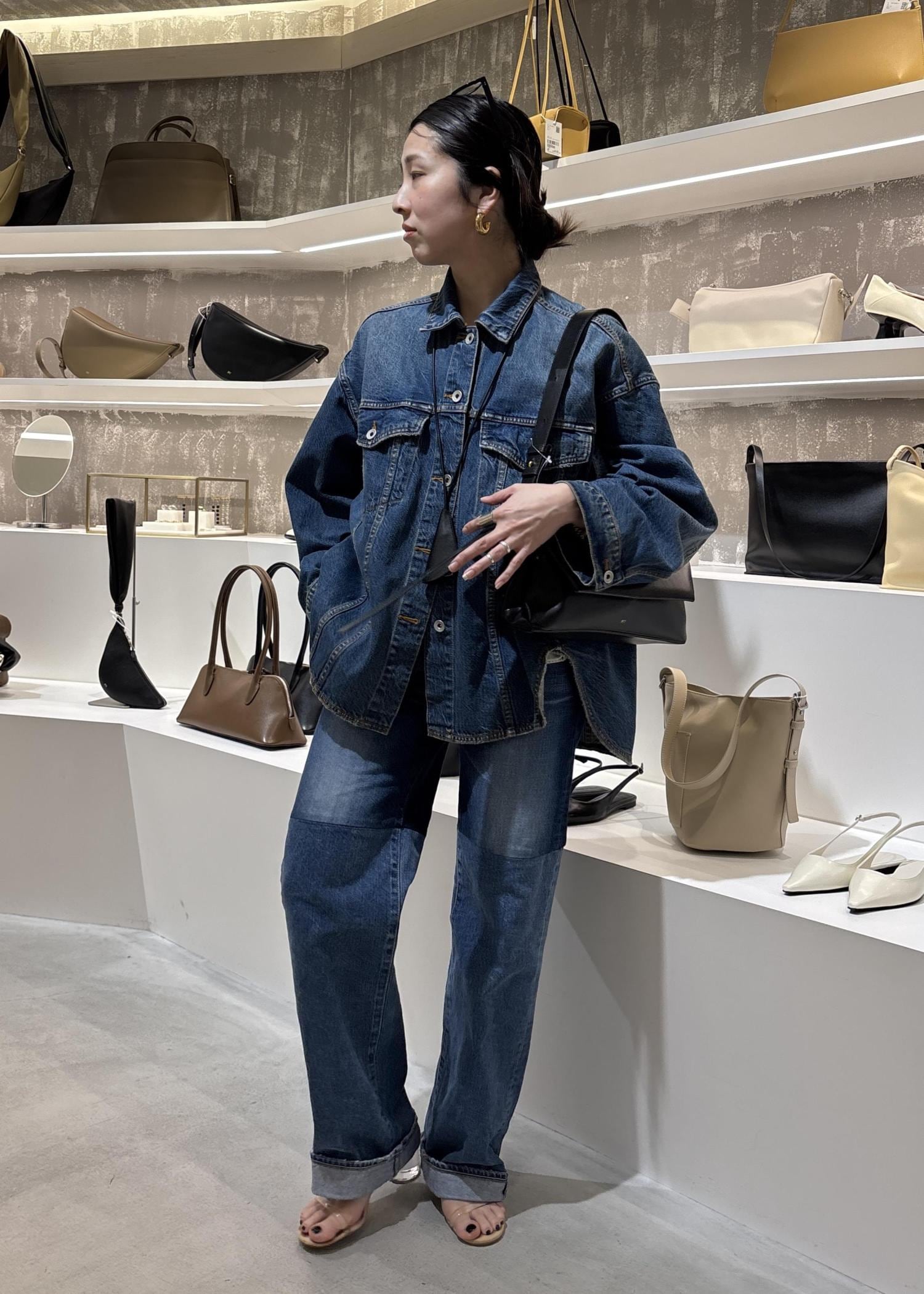 デニムのセットアップ風で合わせていただいてもデニムは程よく細身なので、カジュアルダウンしすぎずおすすめですよ。