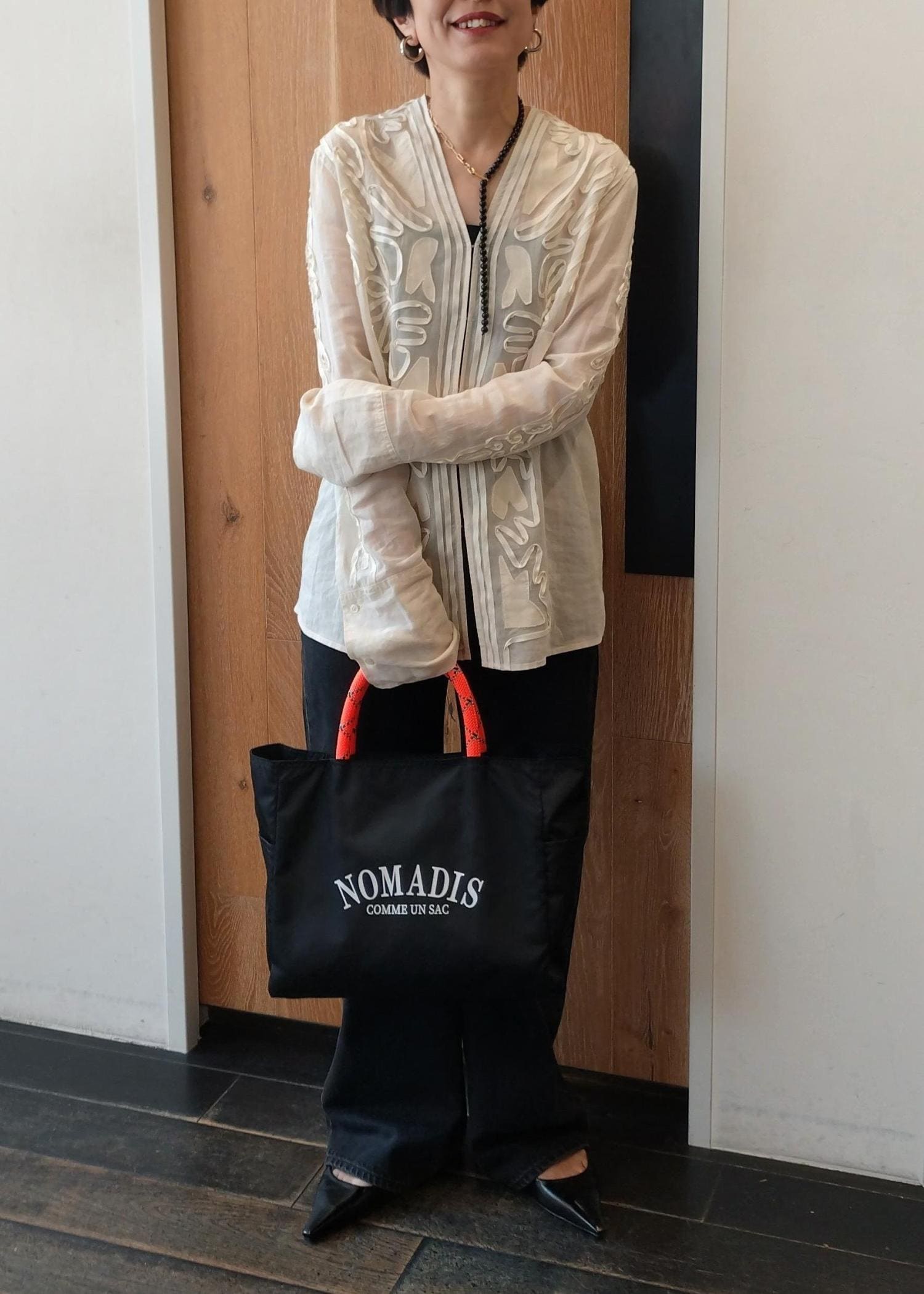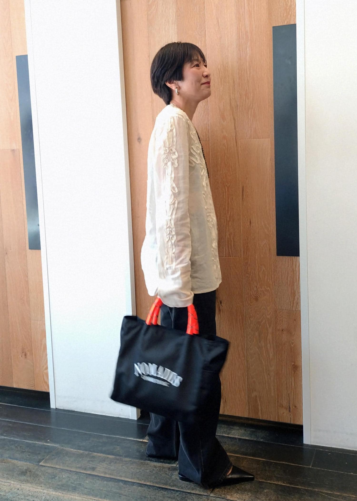シアー感とシャリ感のある素材感で軽さがあります。 -