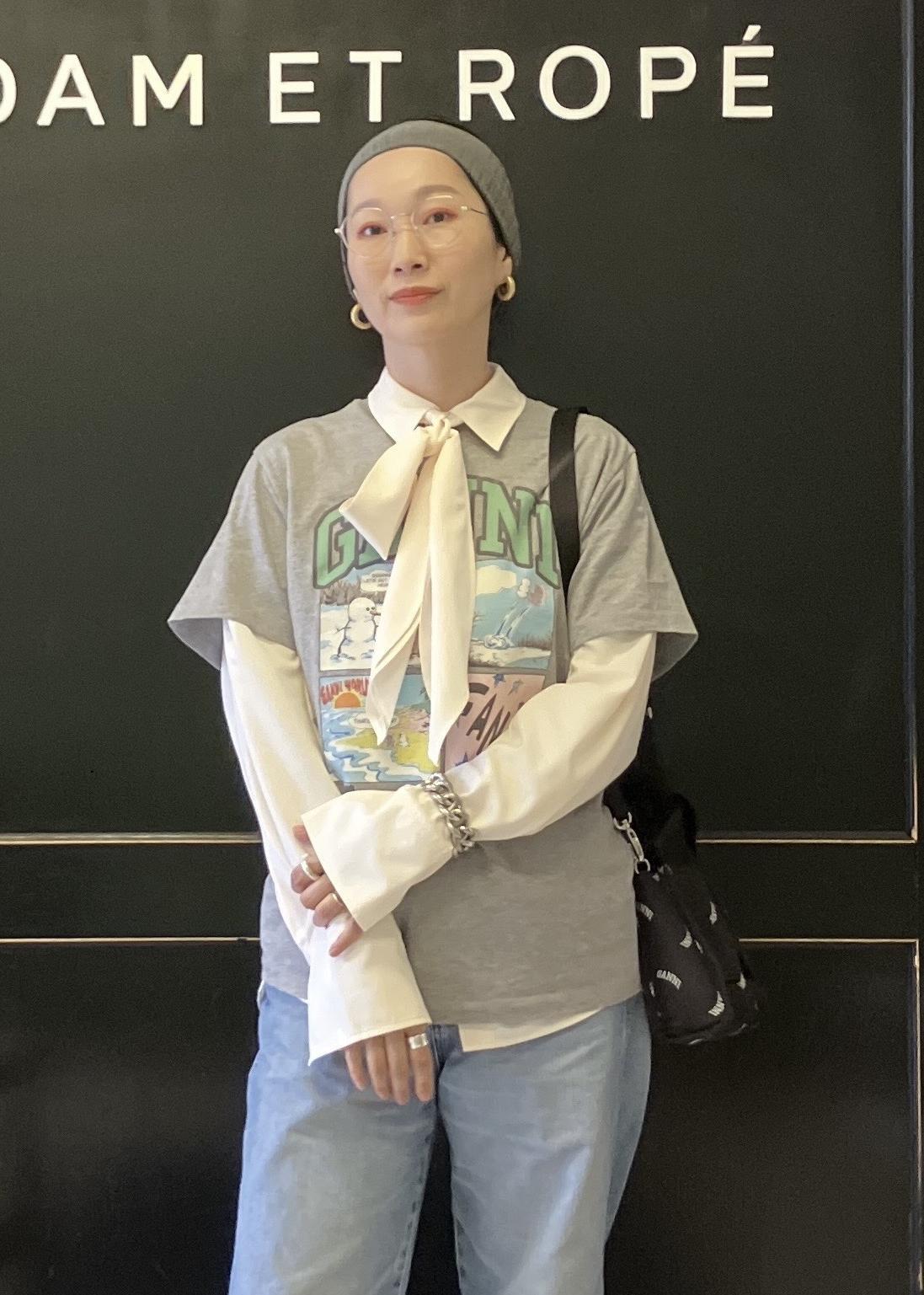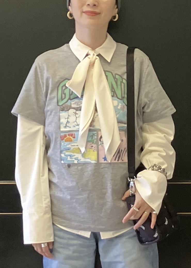 こういうブラウスは今まで苦手でしたが、思い切りカジュアルに合わせると、とてもオシャレで素敵なことに気付きました!