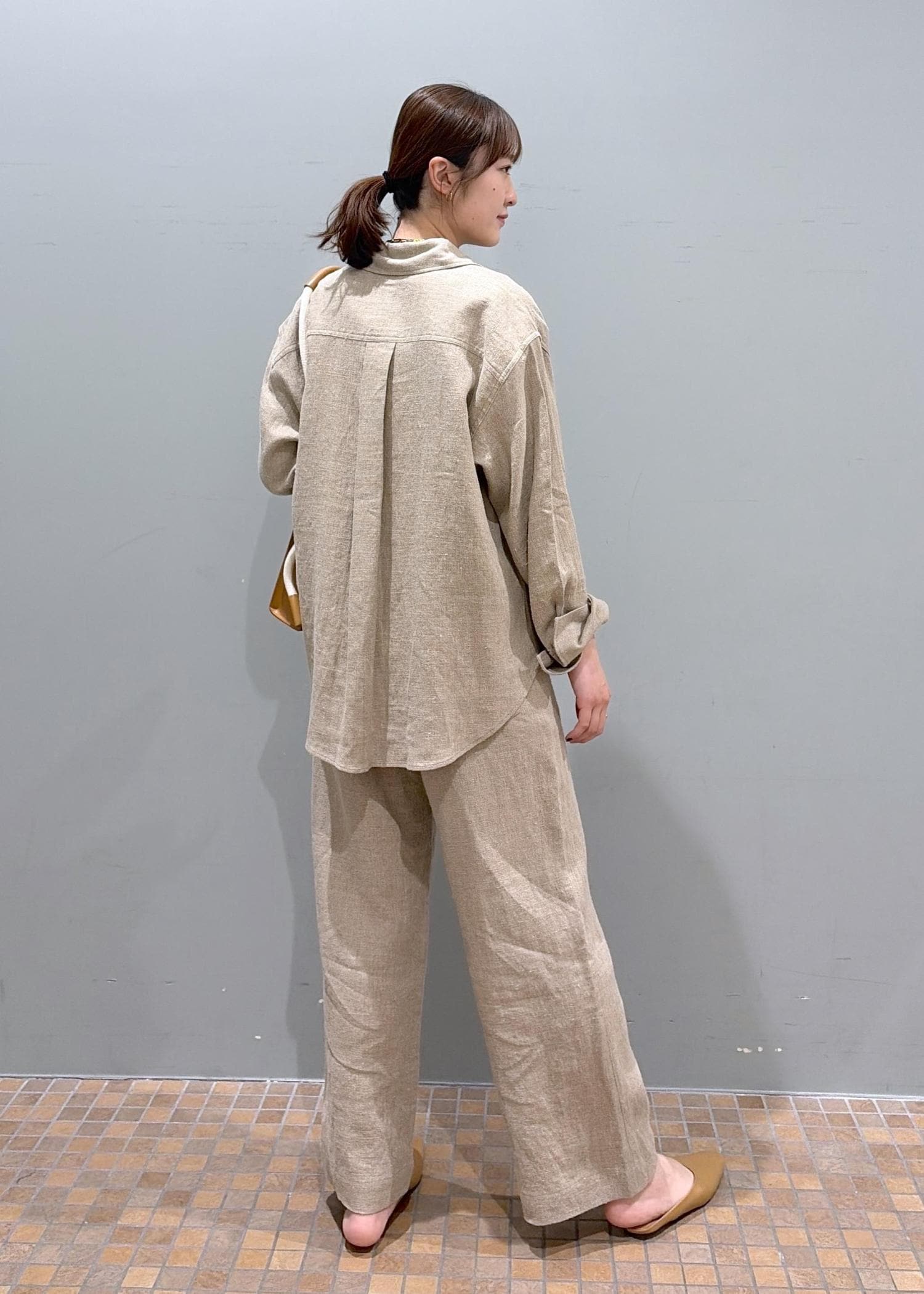 リネンシャツ×パンツのセットアップコーデ