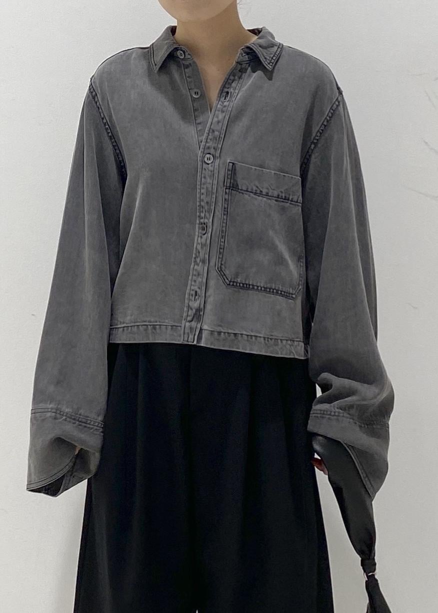 ADAM ET ROPÉ FEMMEライトデニムシャツブラック / F¥18,700レビュー柔らかく落ち感のある素材で着心地が良いです。