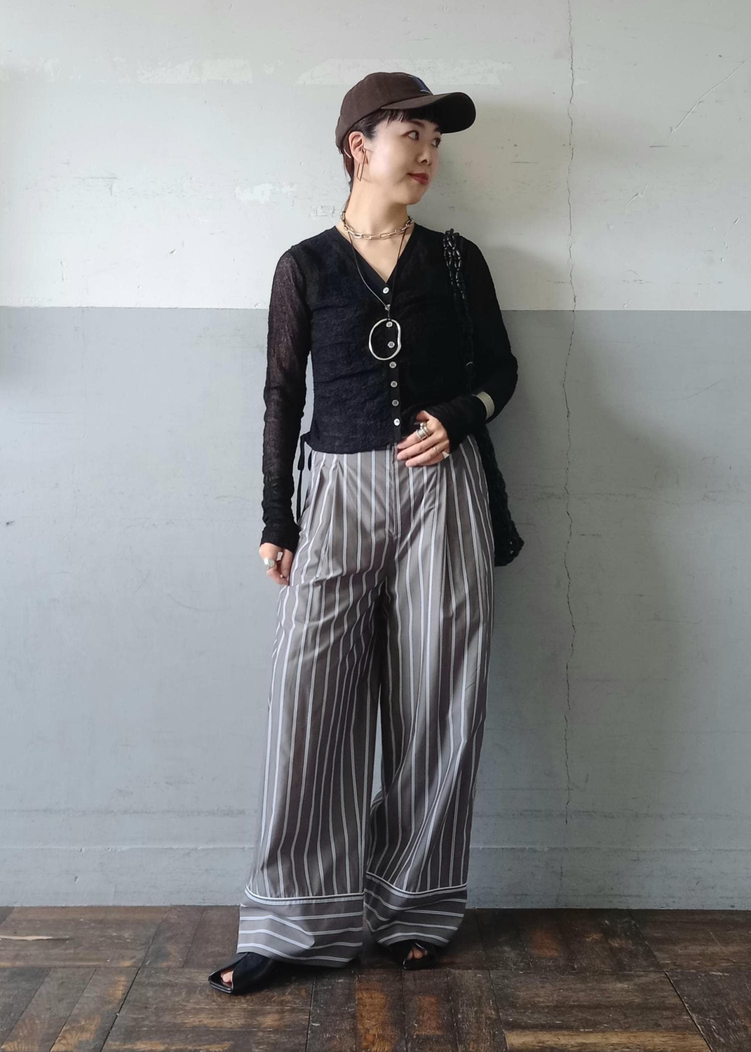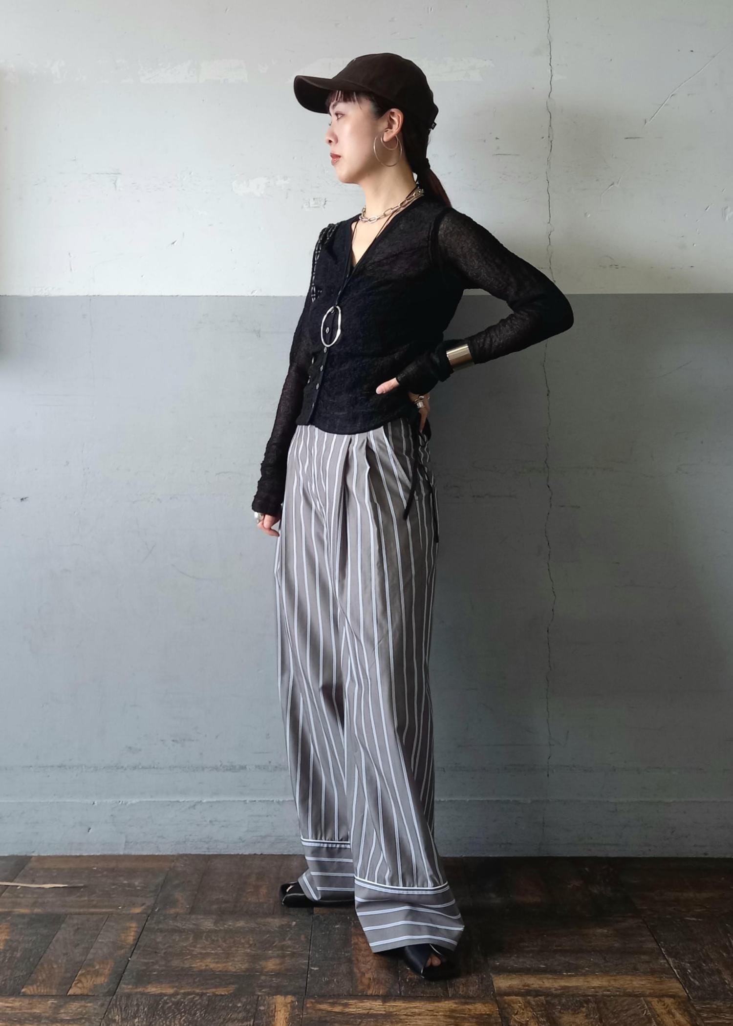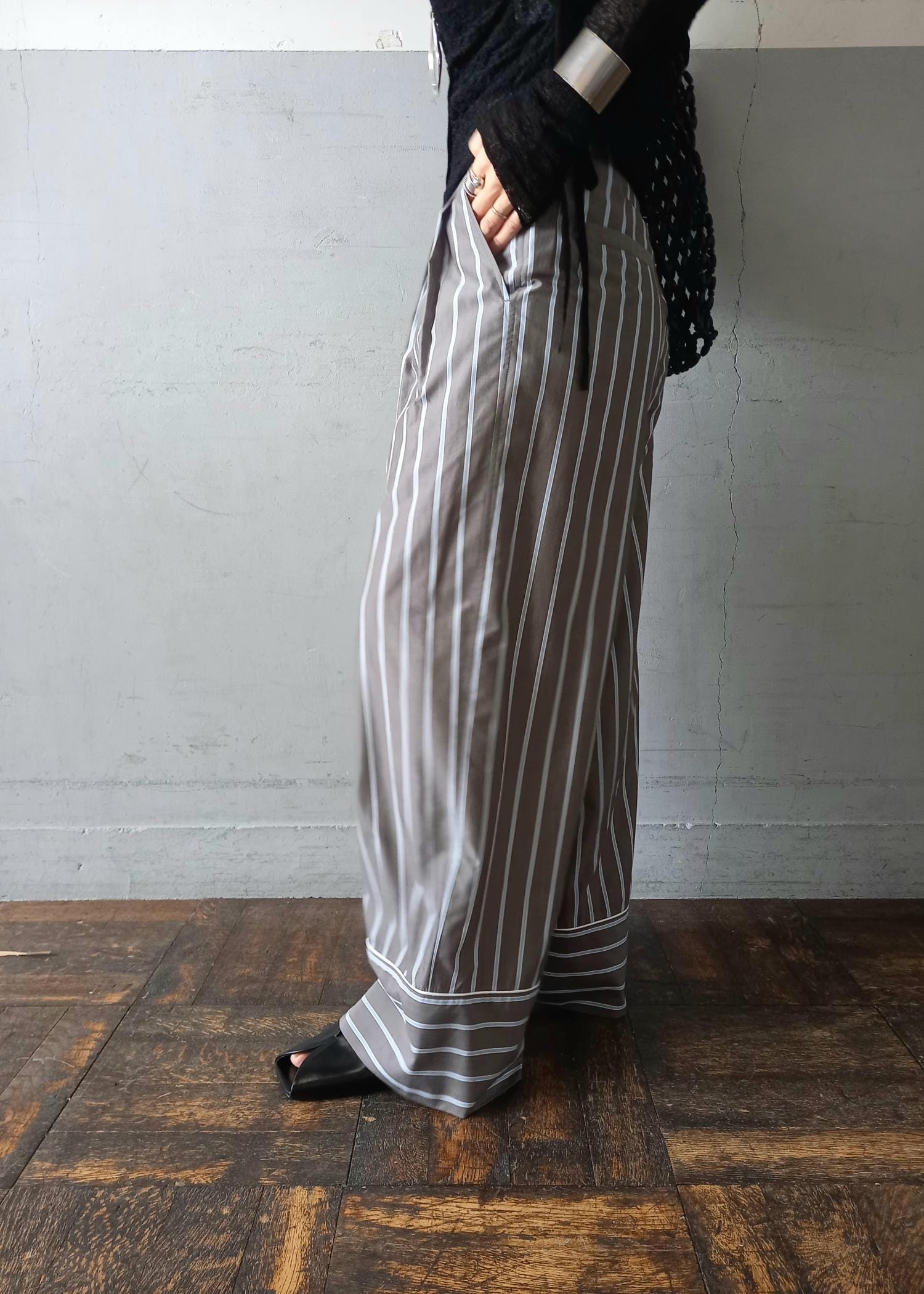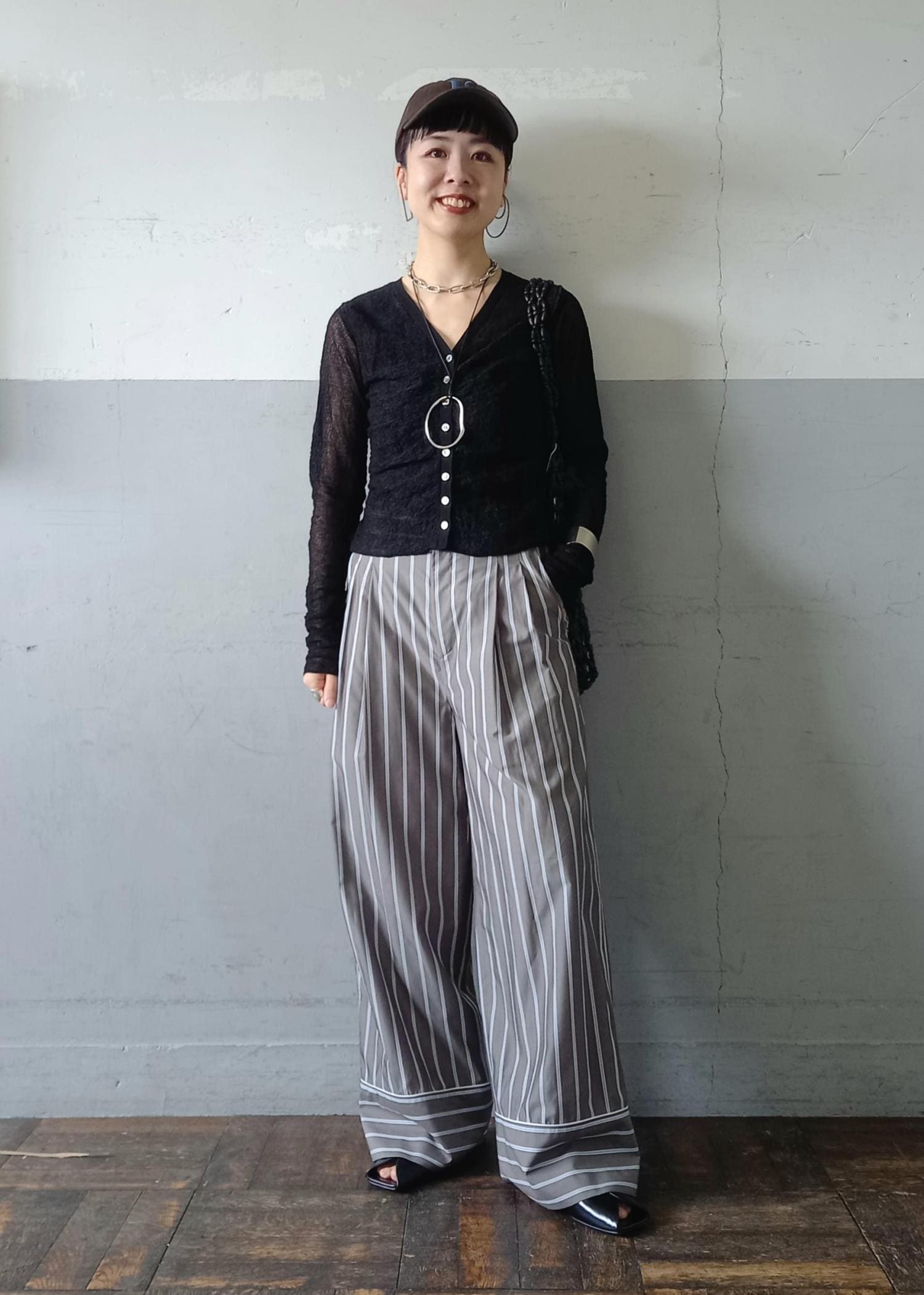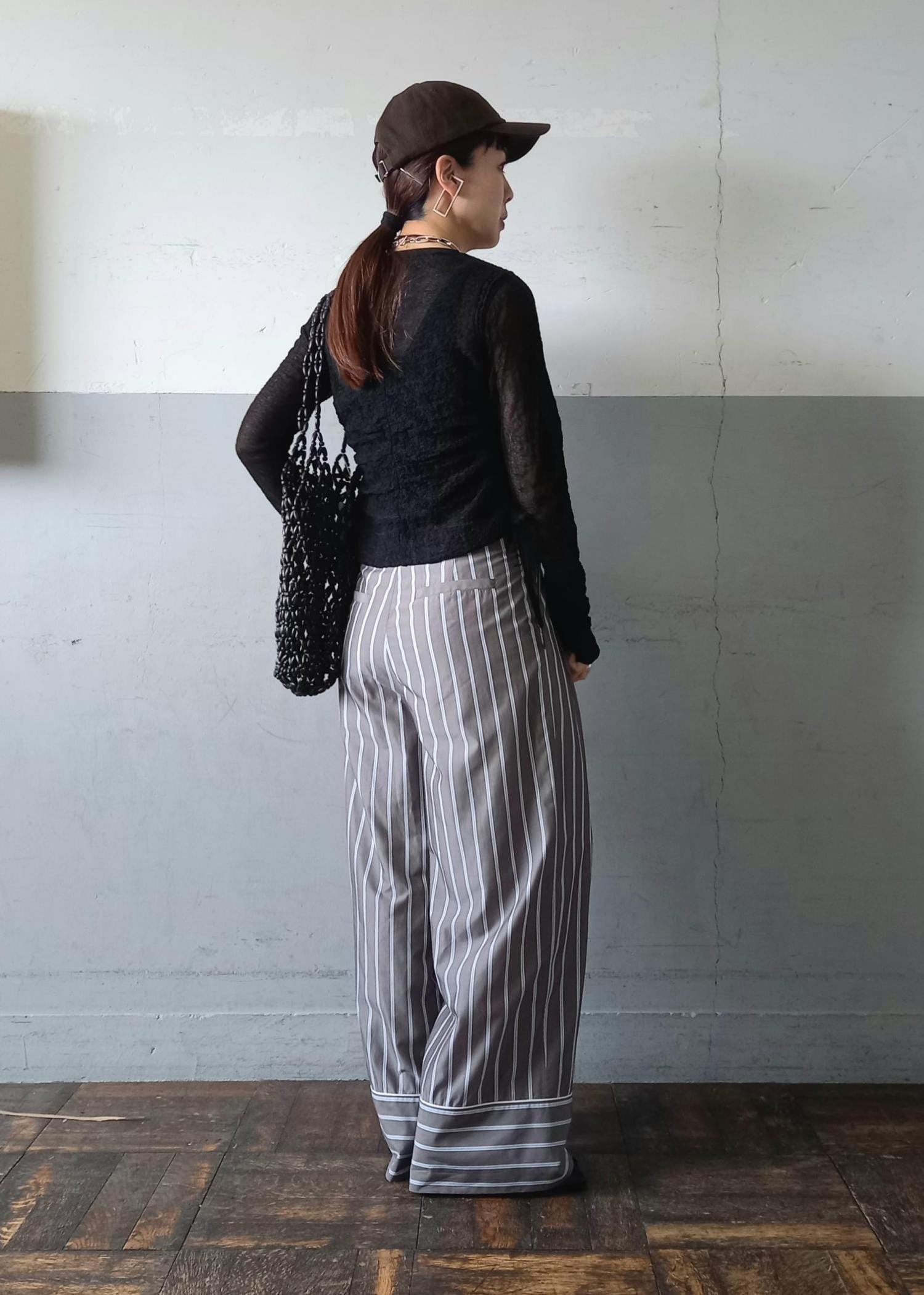 ストライプのワイドパンツとバランスを取って、