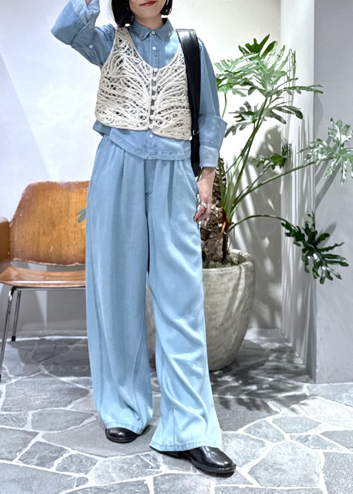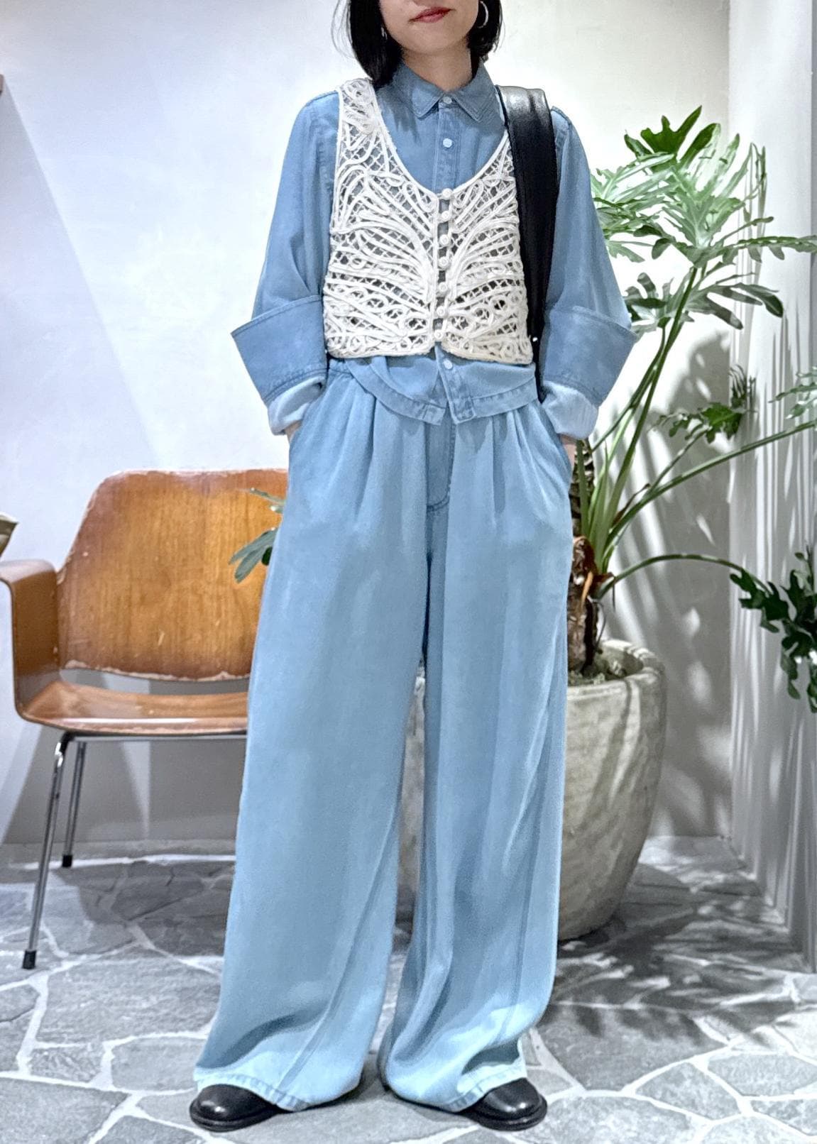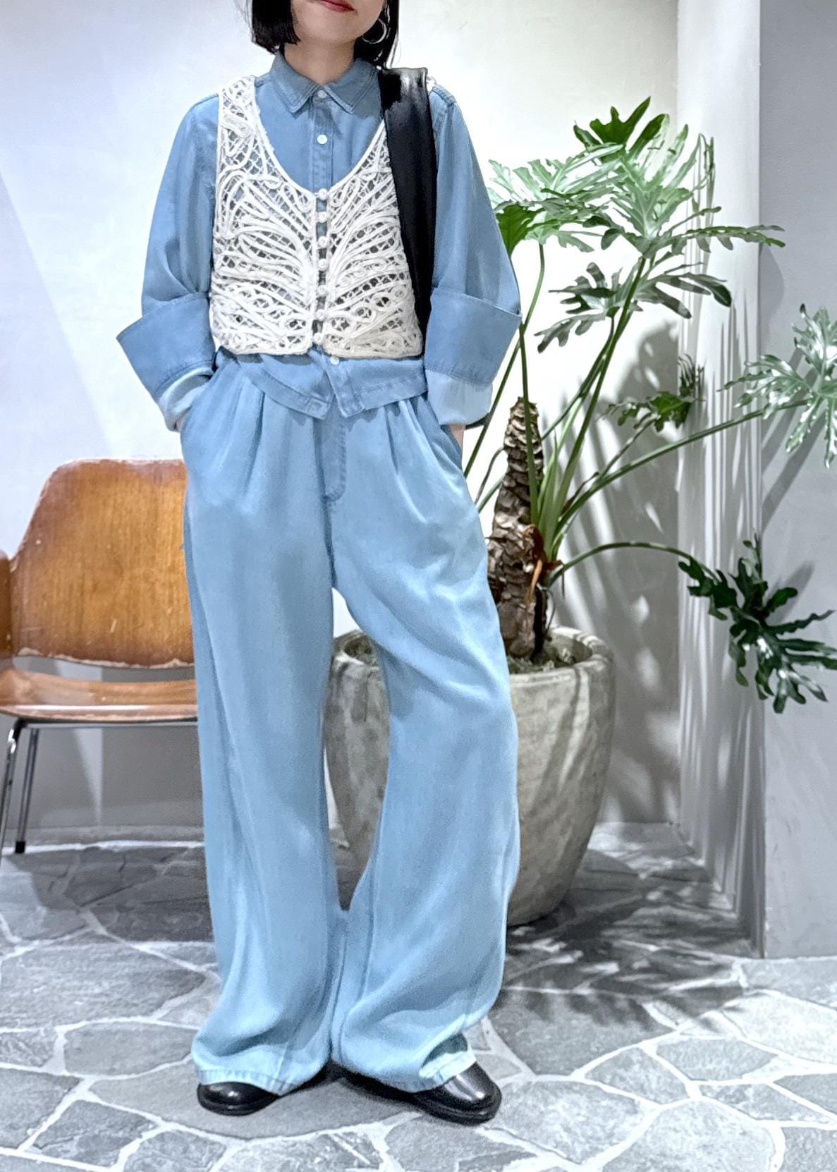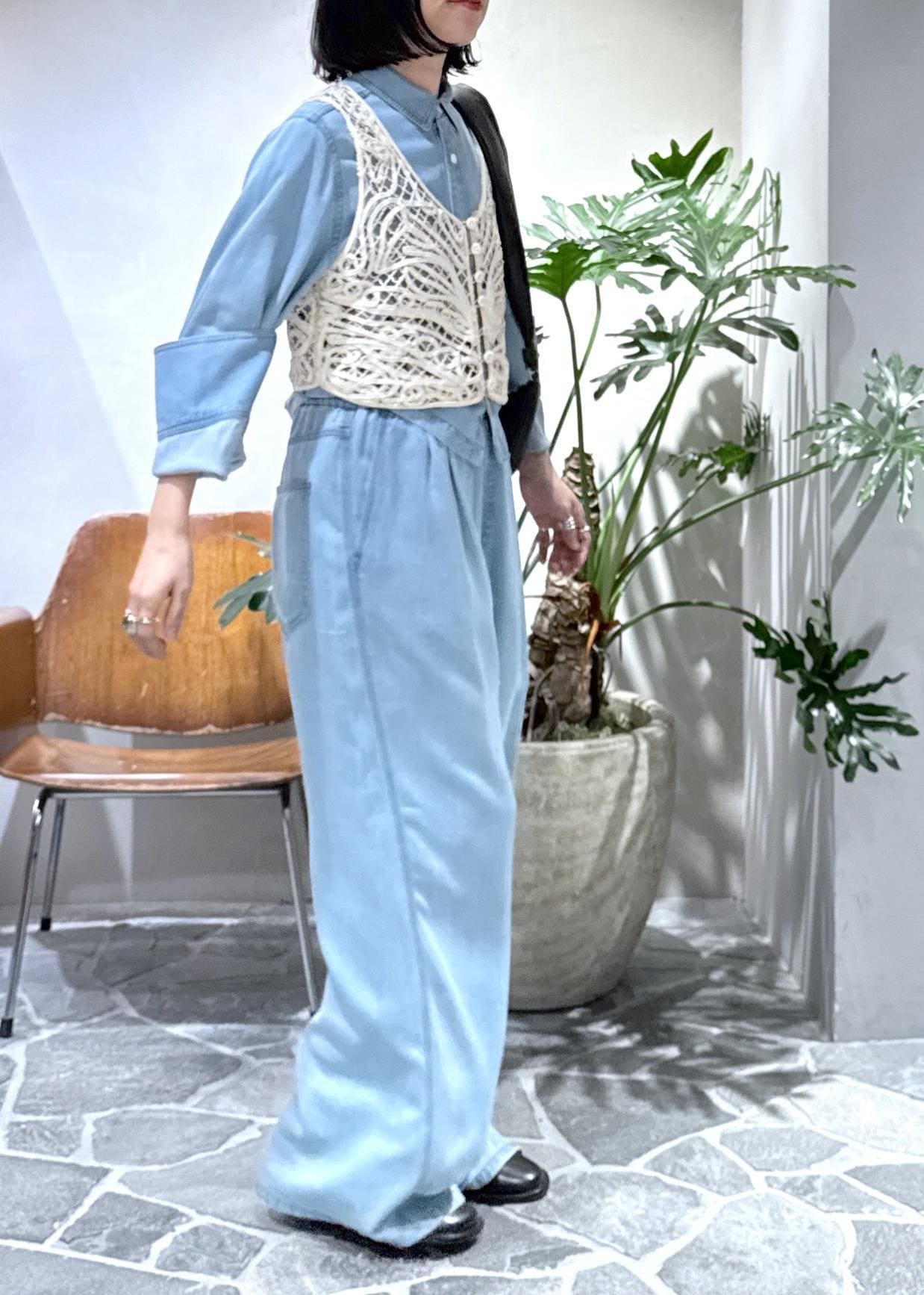 新作のライトデニムシャツとライトデニムイージーパンツを使ったスタイリングのご紹介です!