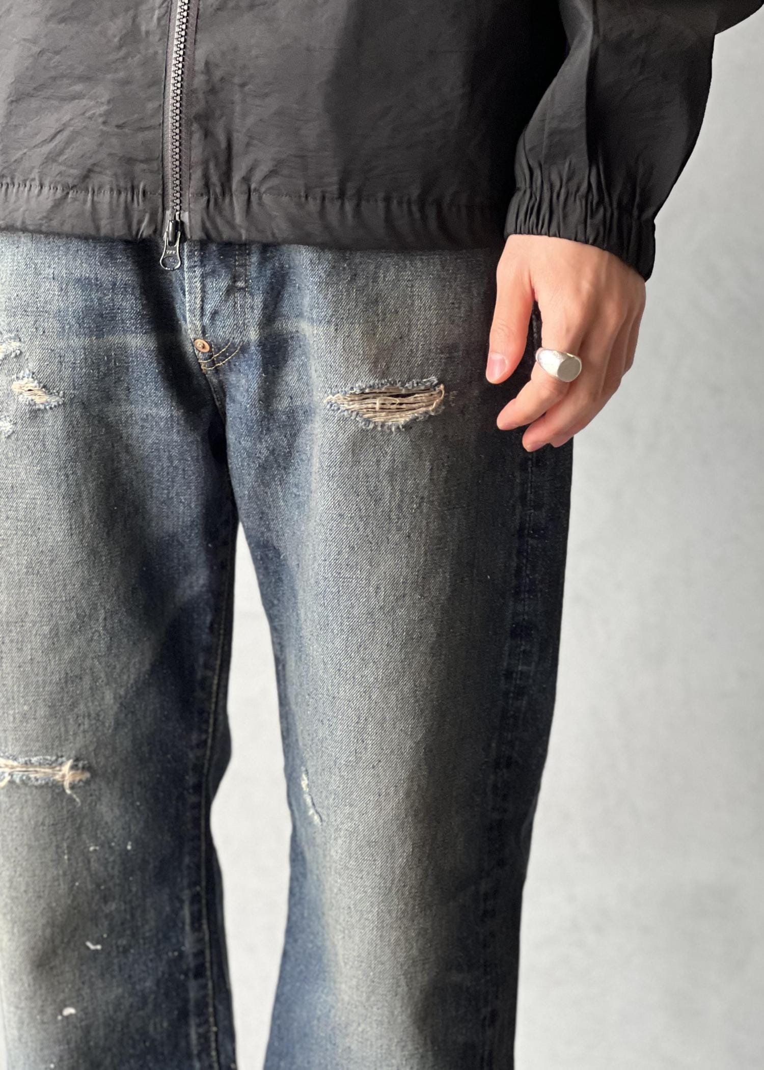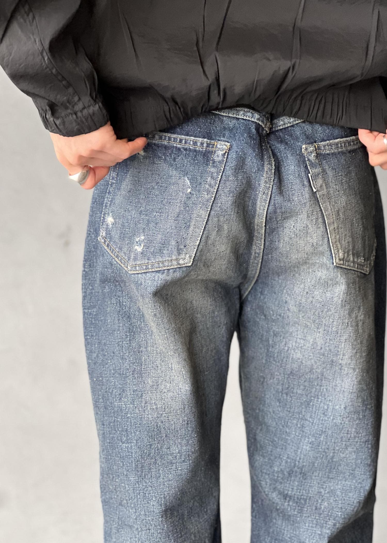 また、土落ちと呼ばれるベージュがかった加工を程よい塩梅で施すことで、新品のデニムでは表現できない独特の雰囲気を表現しました。