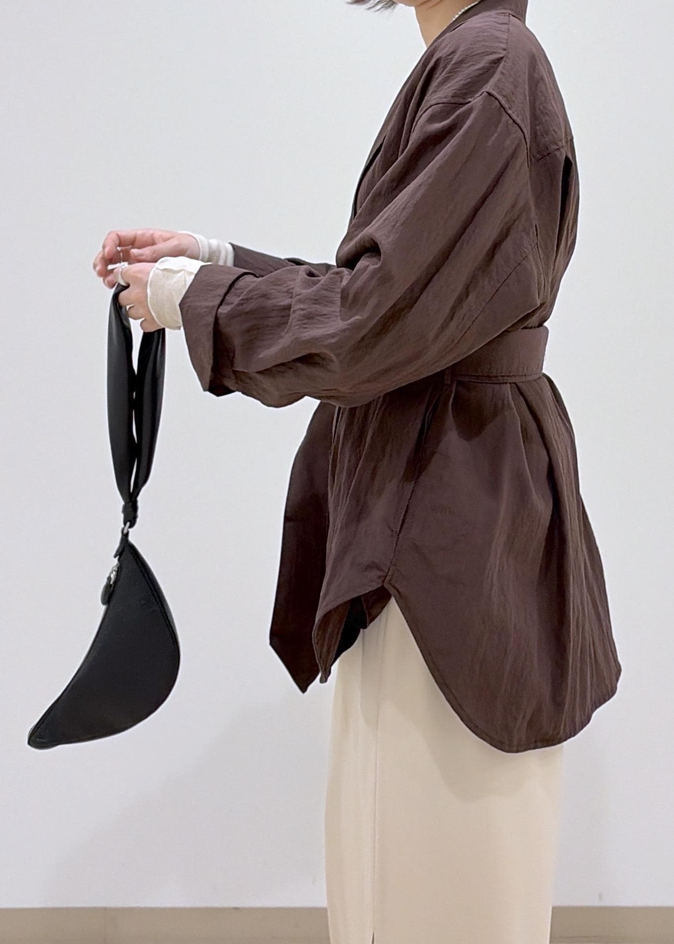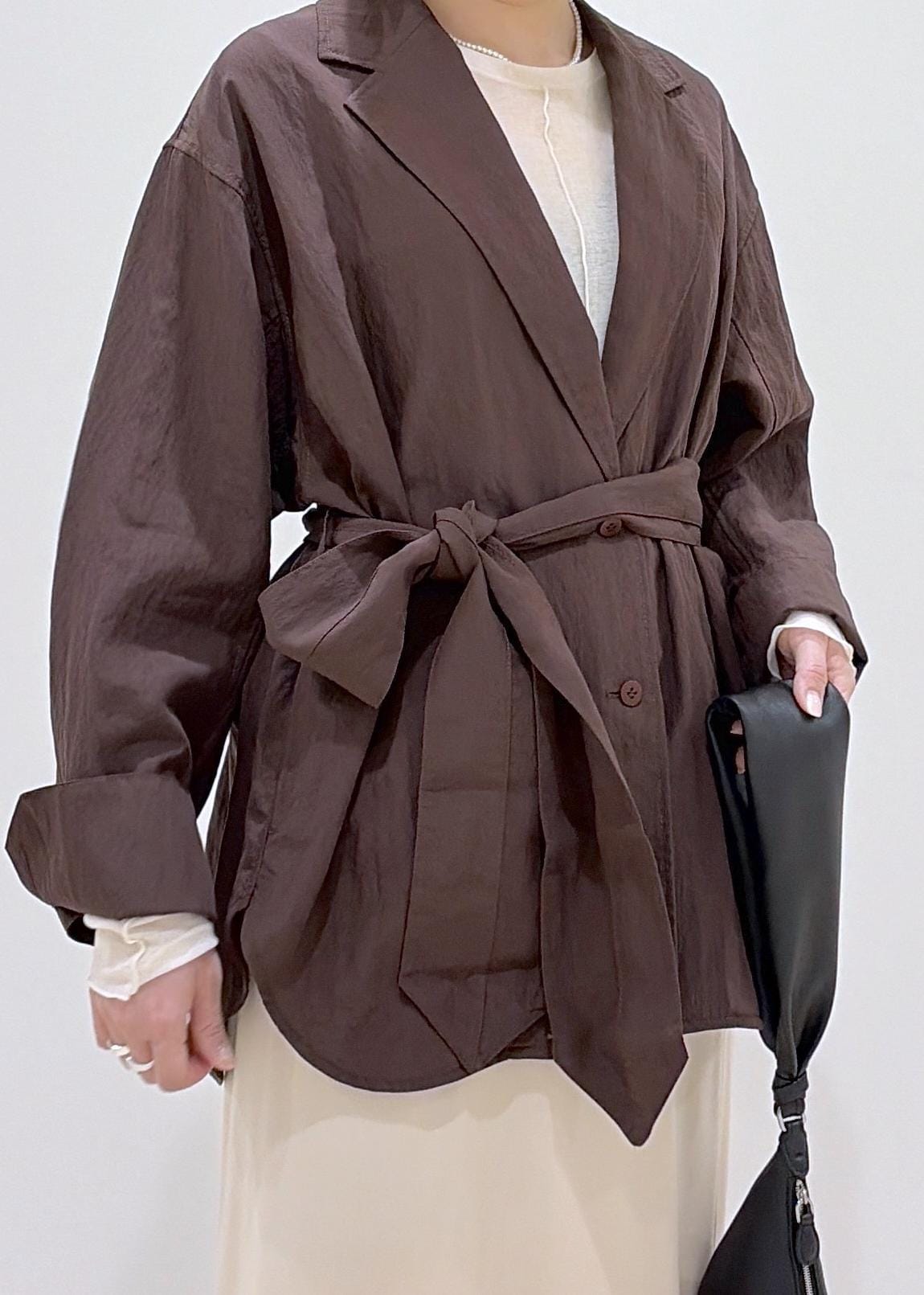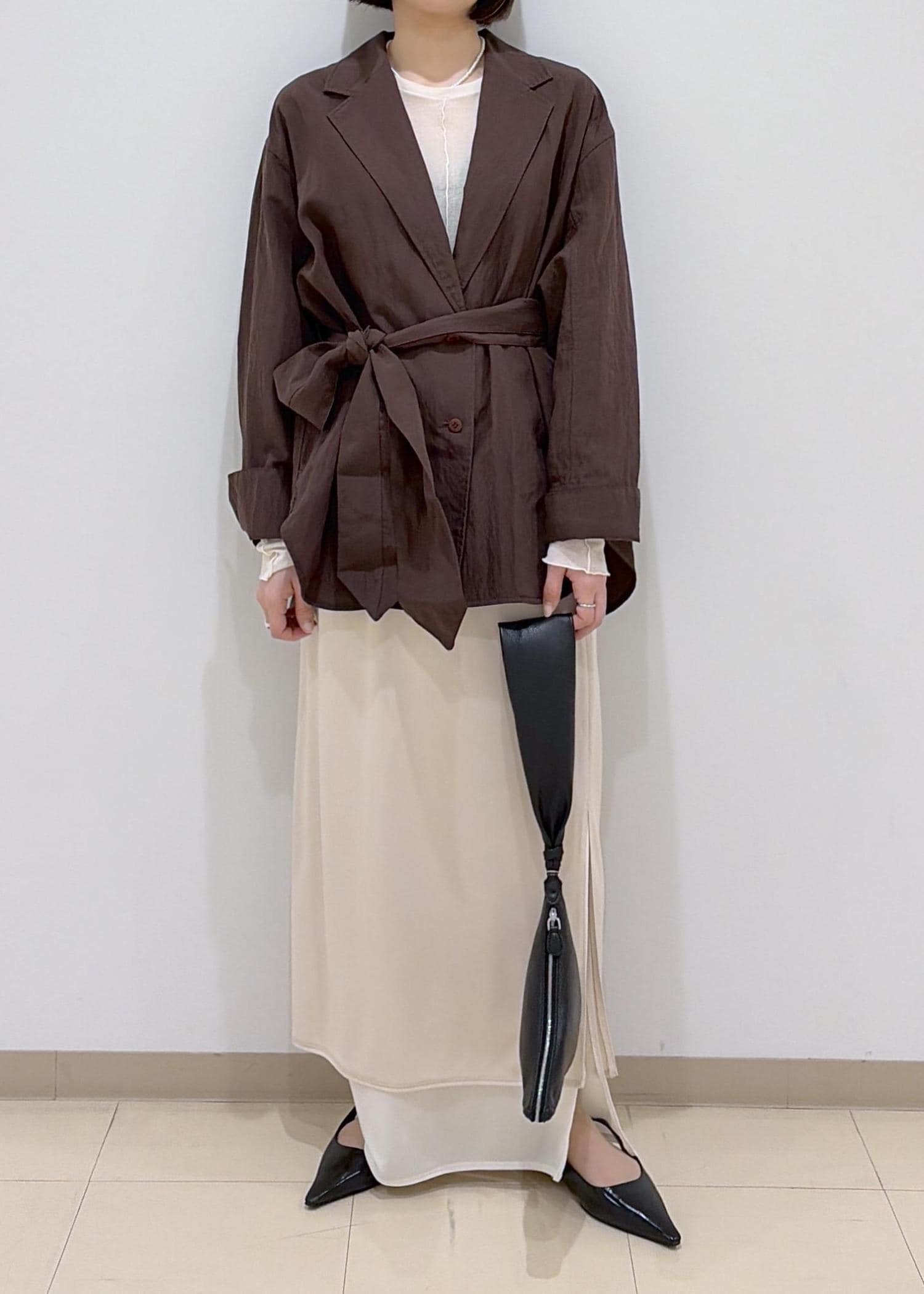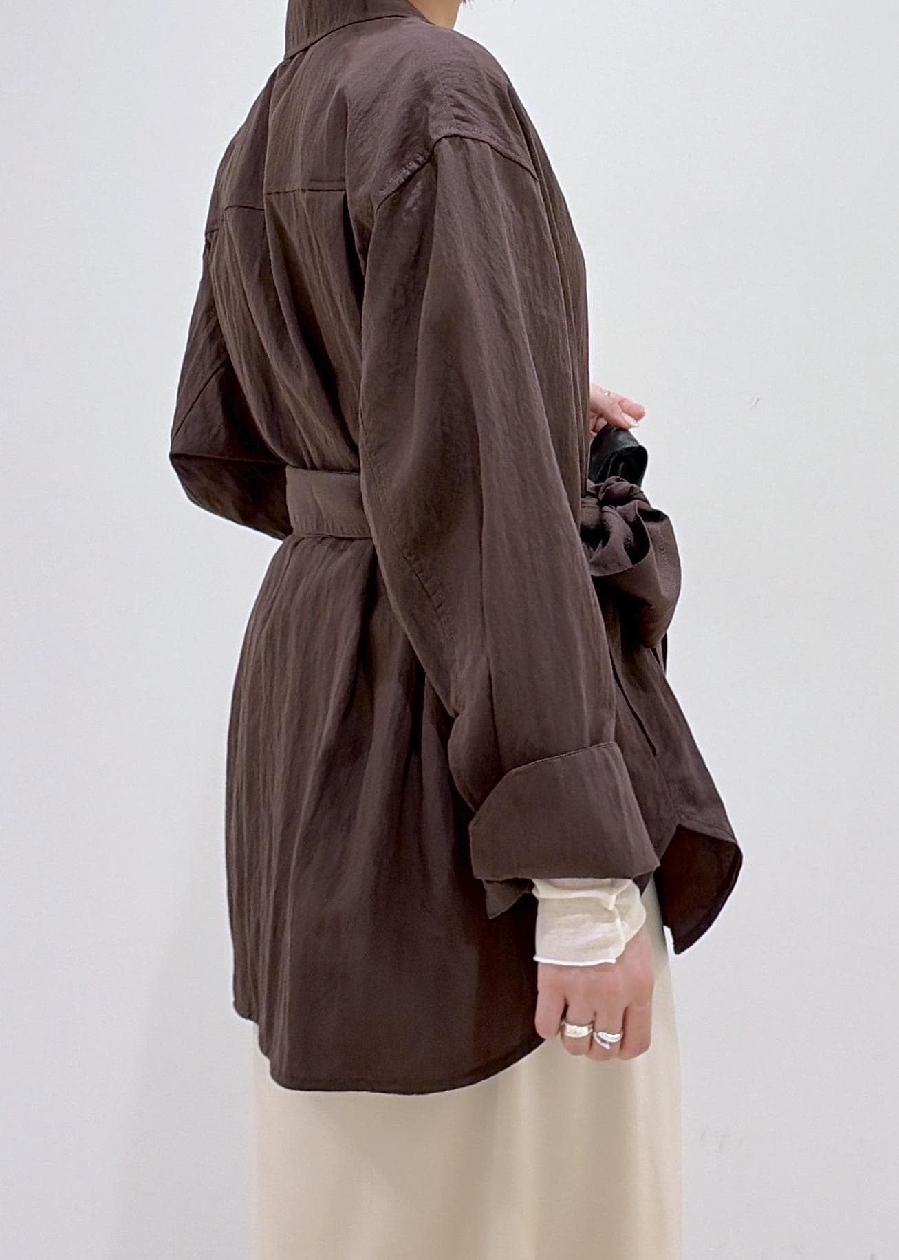 ベルト付きなので、お好みでウエストを絞ってシルエットを変えていただけます。 -