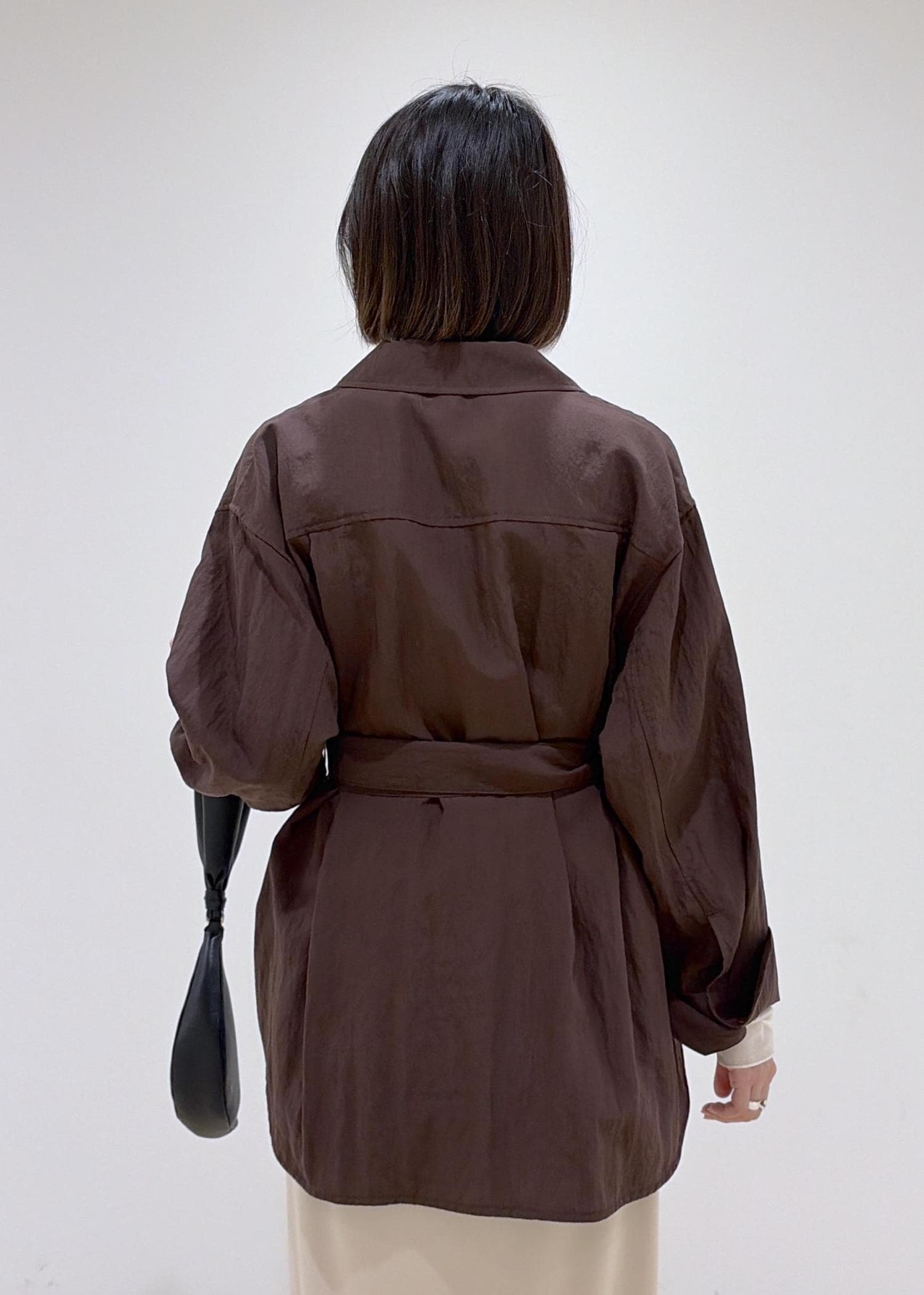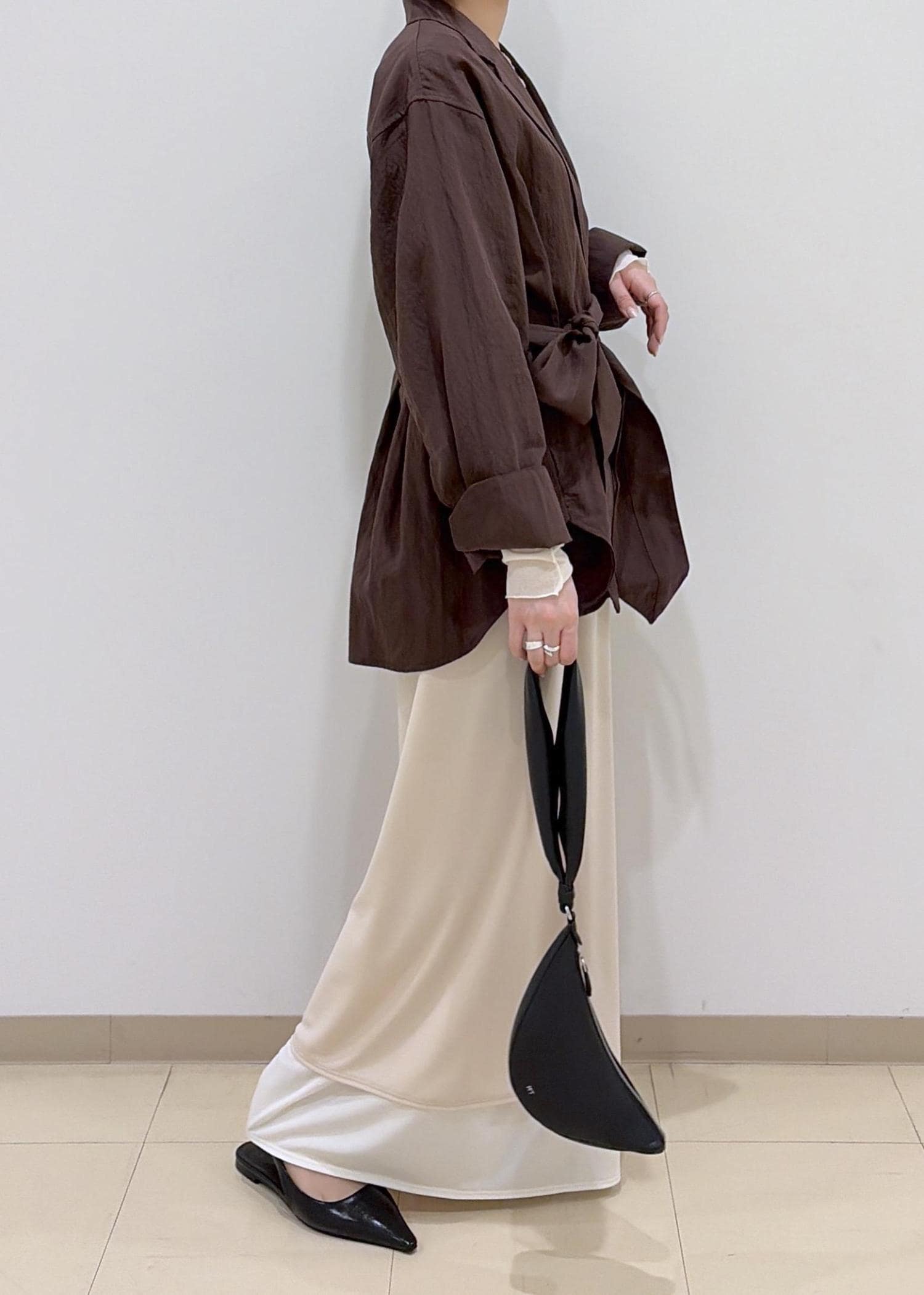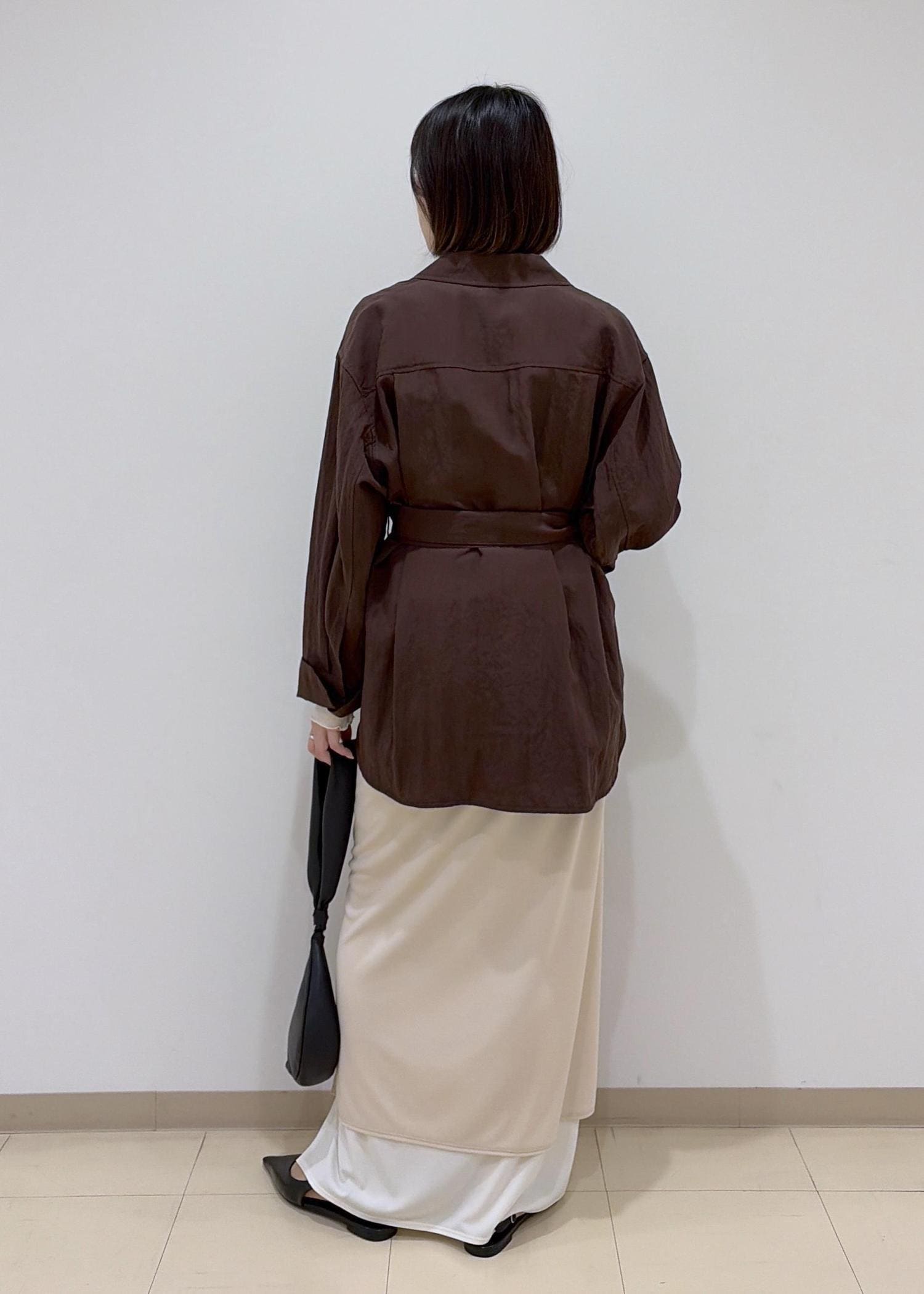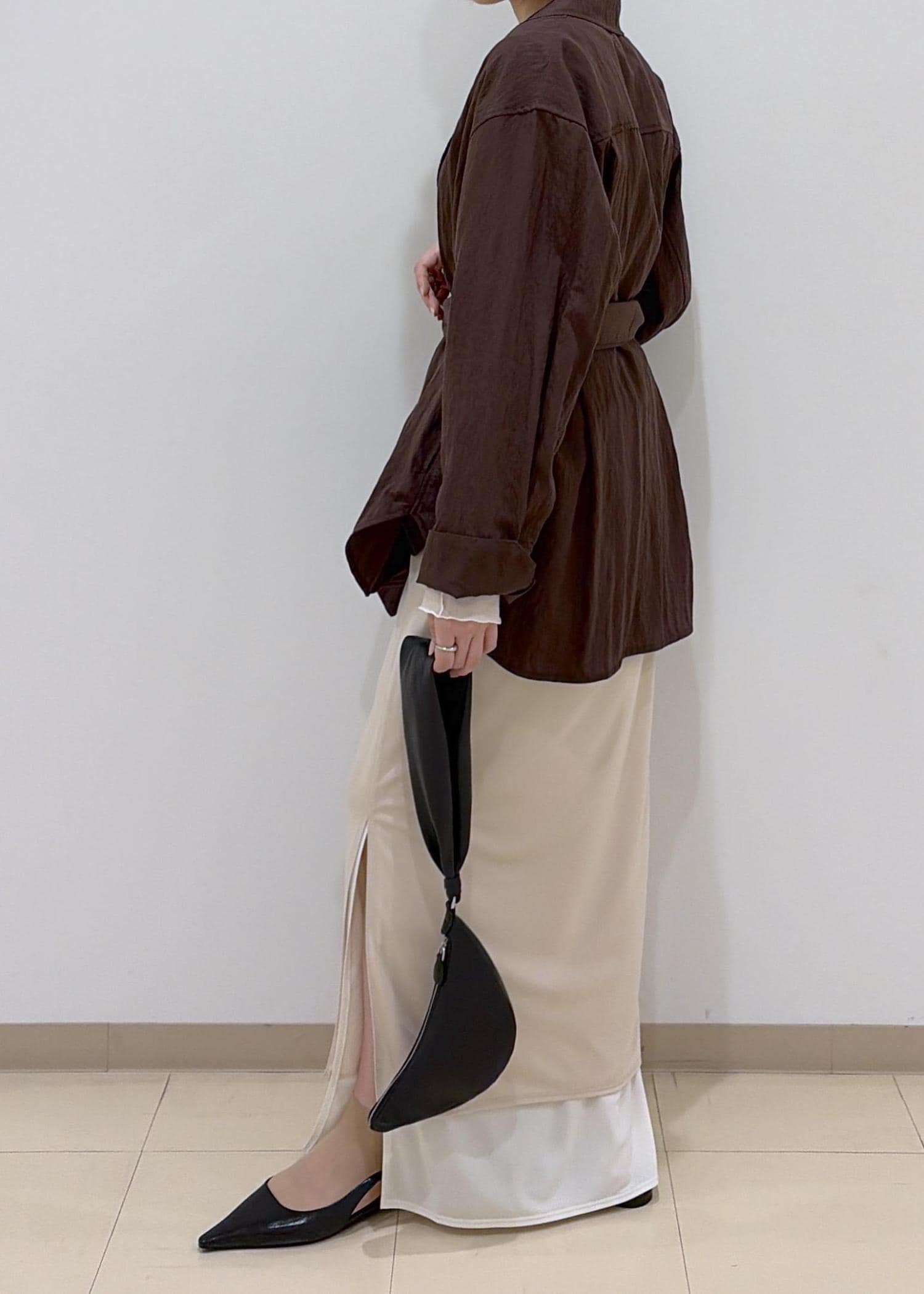 ベルト付きなので、お好みでウエストを絞ってシルエットを変えていただけます。 -