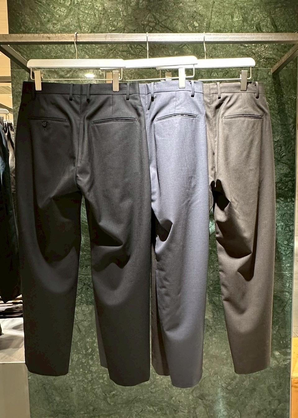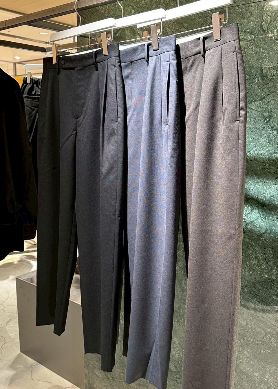ややゆとりを持たせたワタリから緩やかにテーパードしたラインは、ブランドの中でも太めに分類されるシルエット。