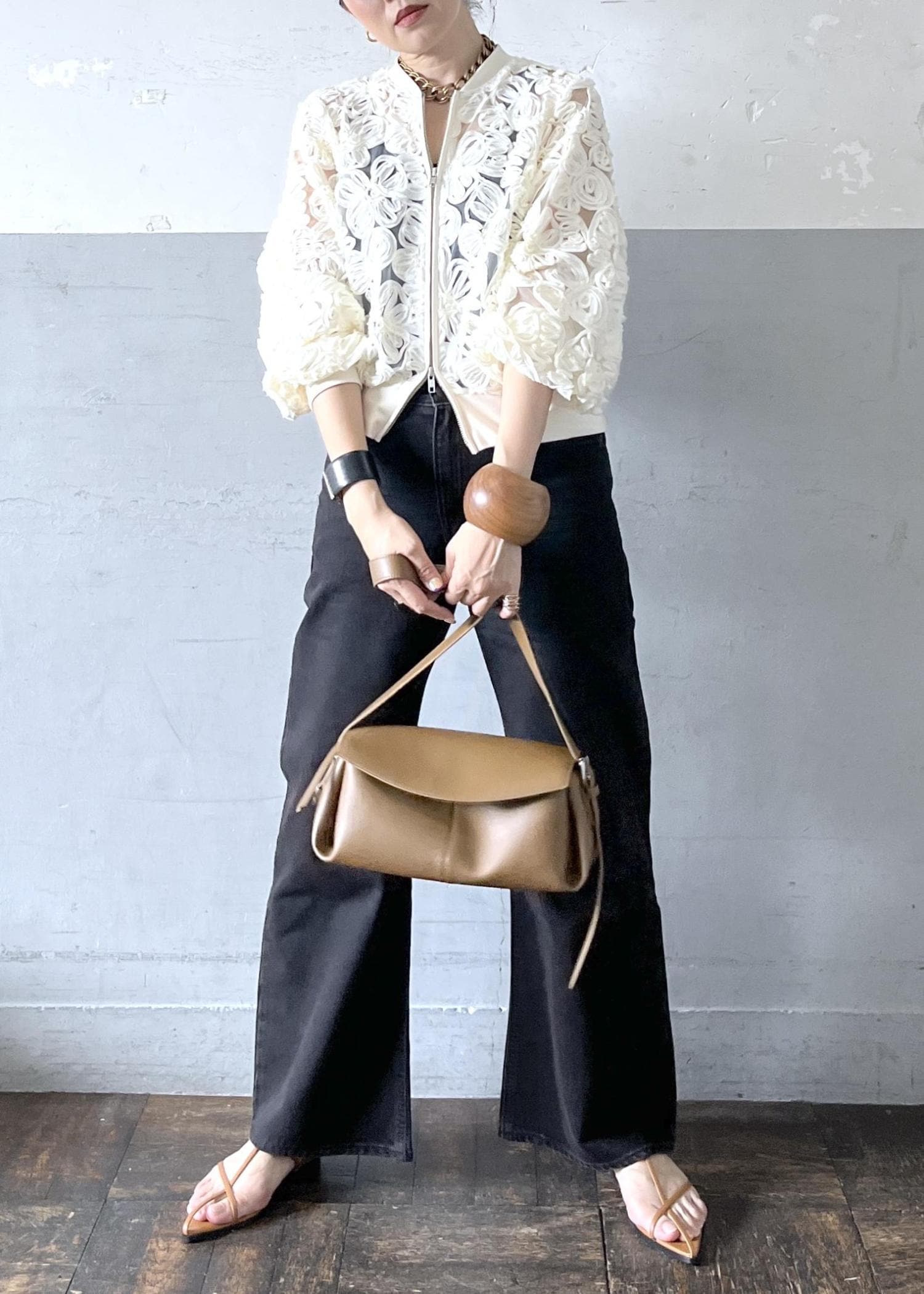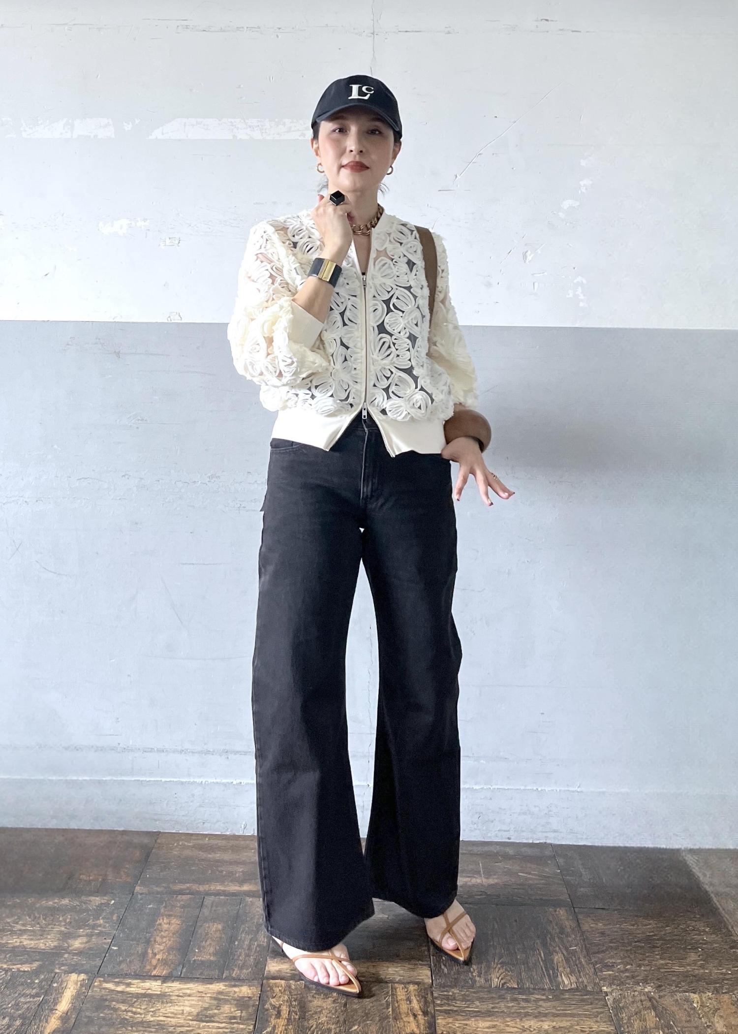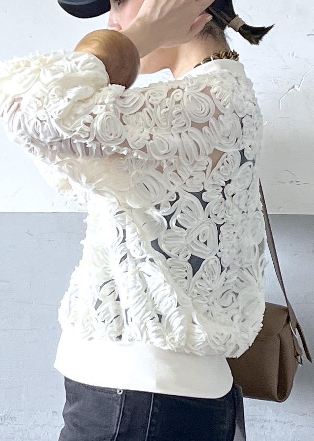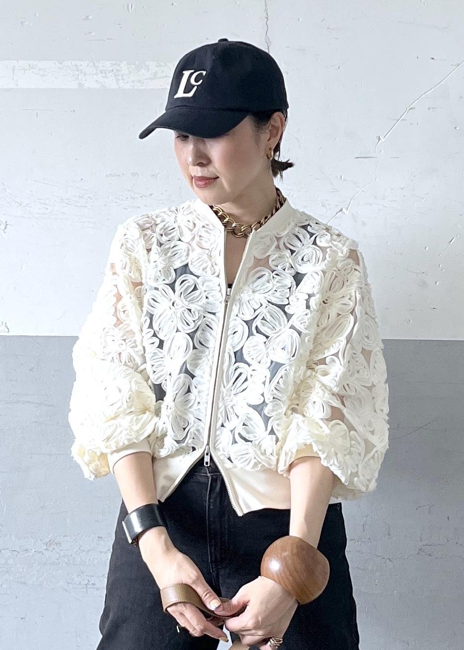 立体感のあるレースブルゾンを主役に、
