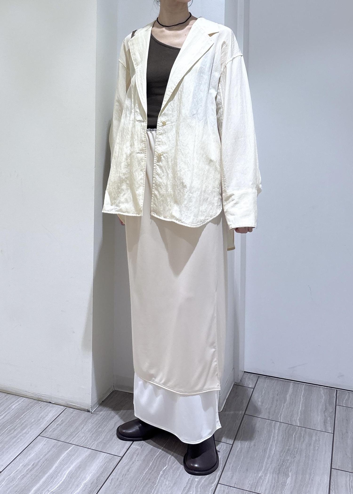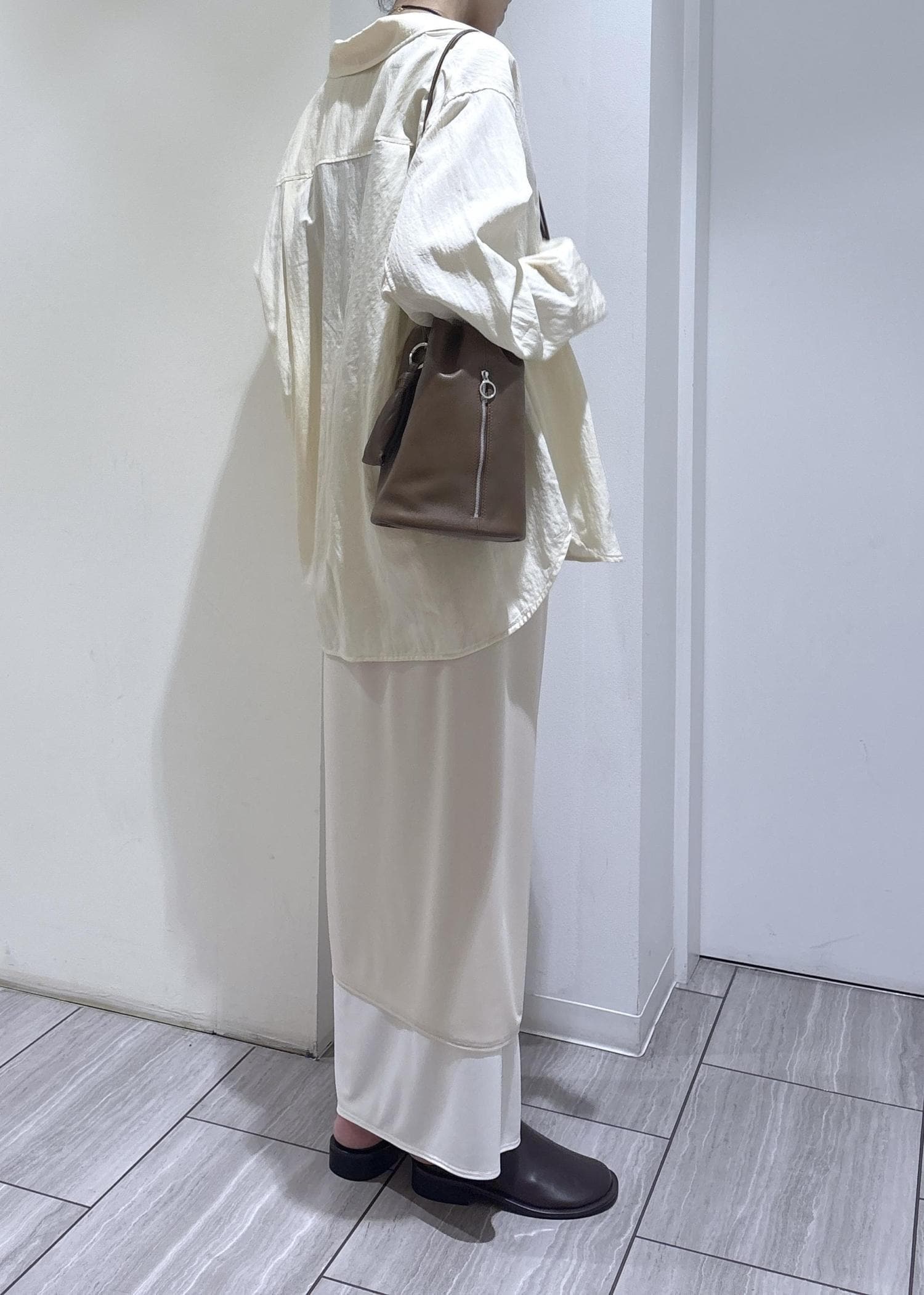パンツとのレイヤードもできて、着回し力の高いアイテムです。 -
