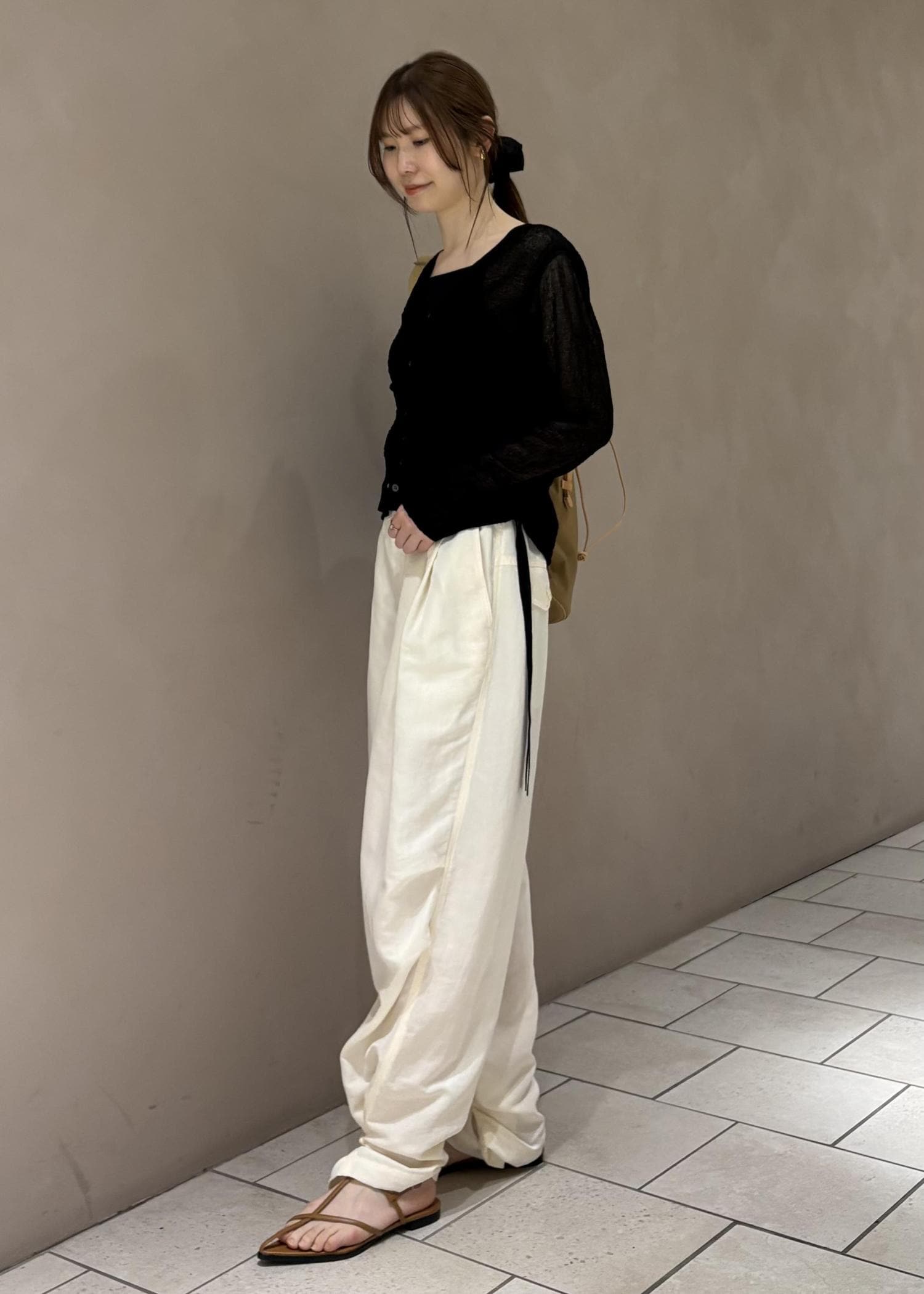 透け感のあるシャリッとした素材が爽やかでこれからの時期にぴったり!横の紐は結んでも、そのまま垂らしても可愛かったです☺︎