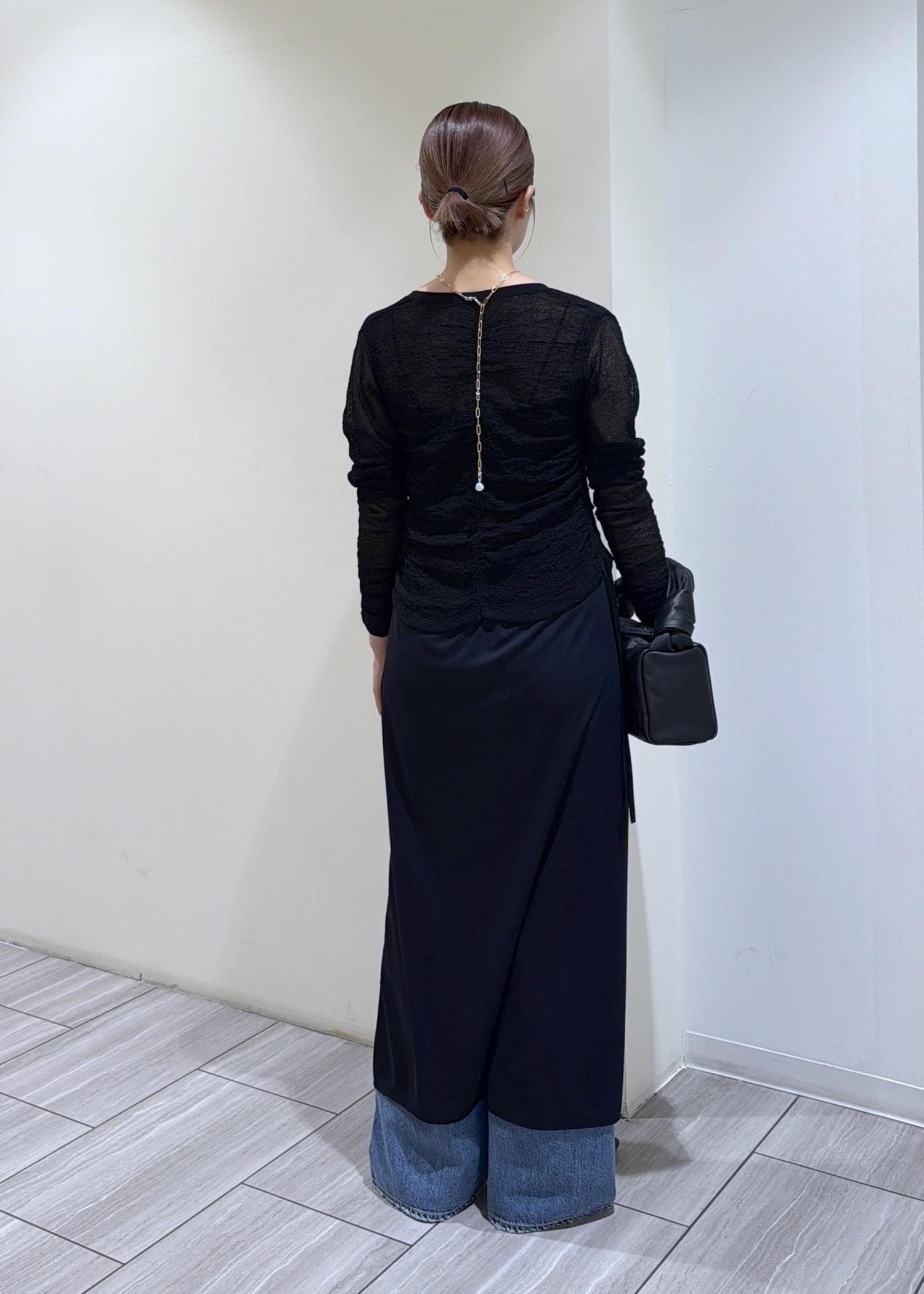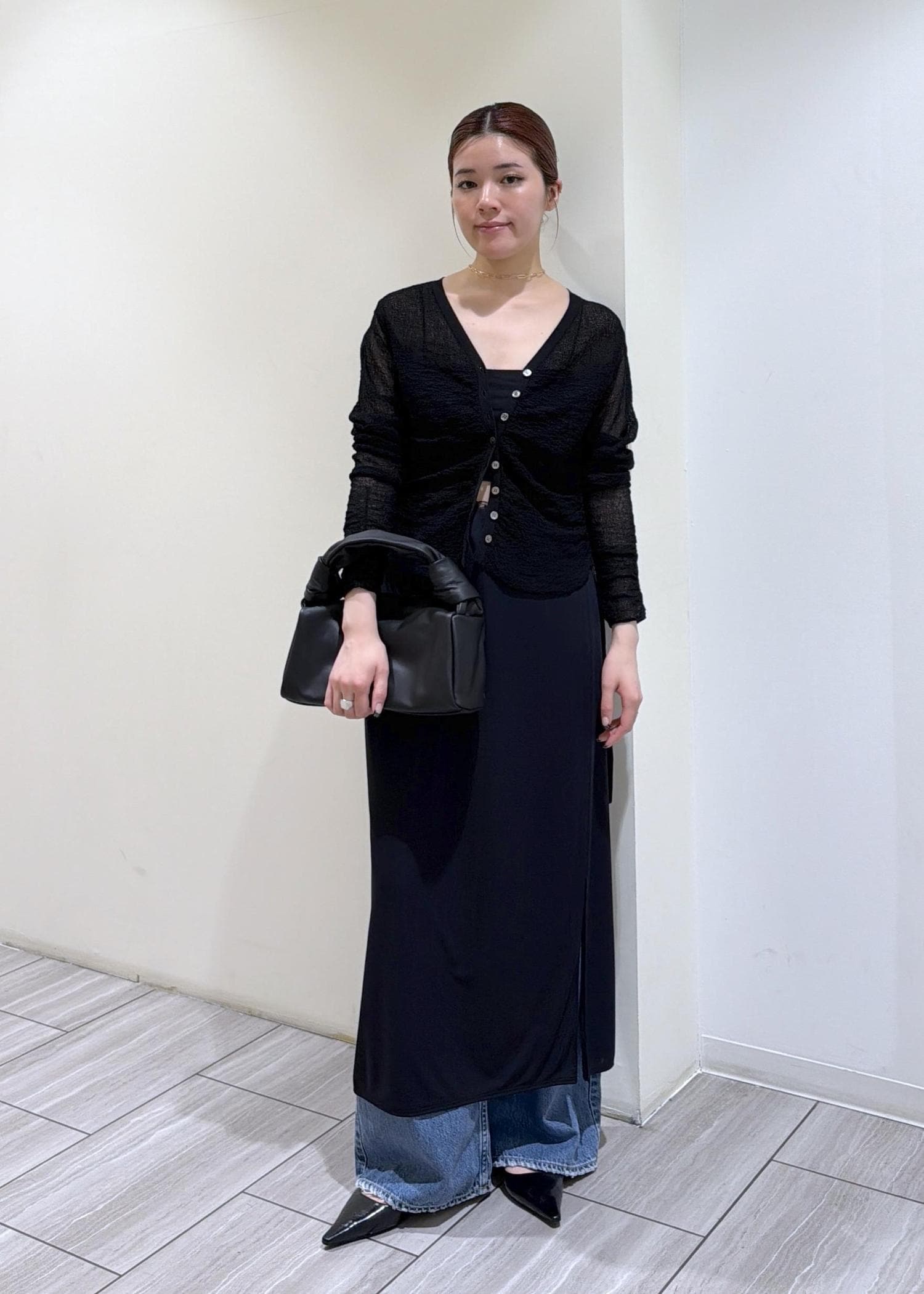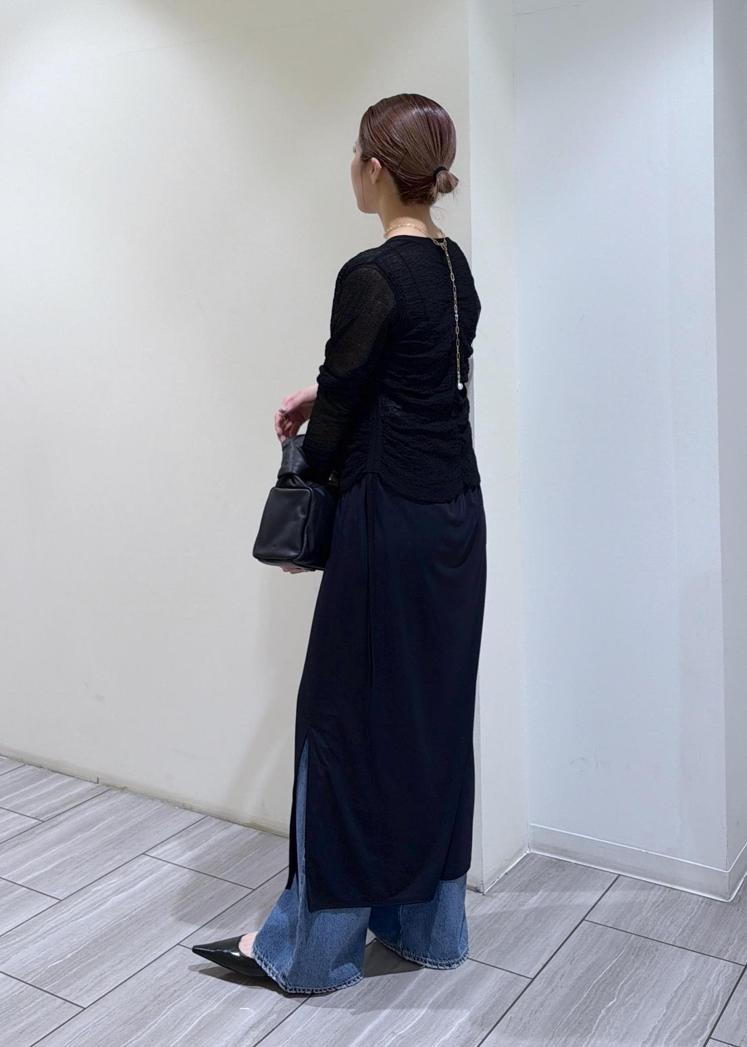 ボトムに、デニムとセットスカートのシアーのみを重ね簡単なレイヤードコーデにしてみました✦︎*