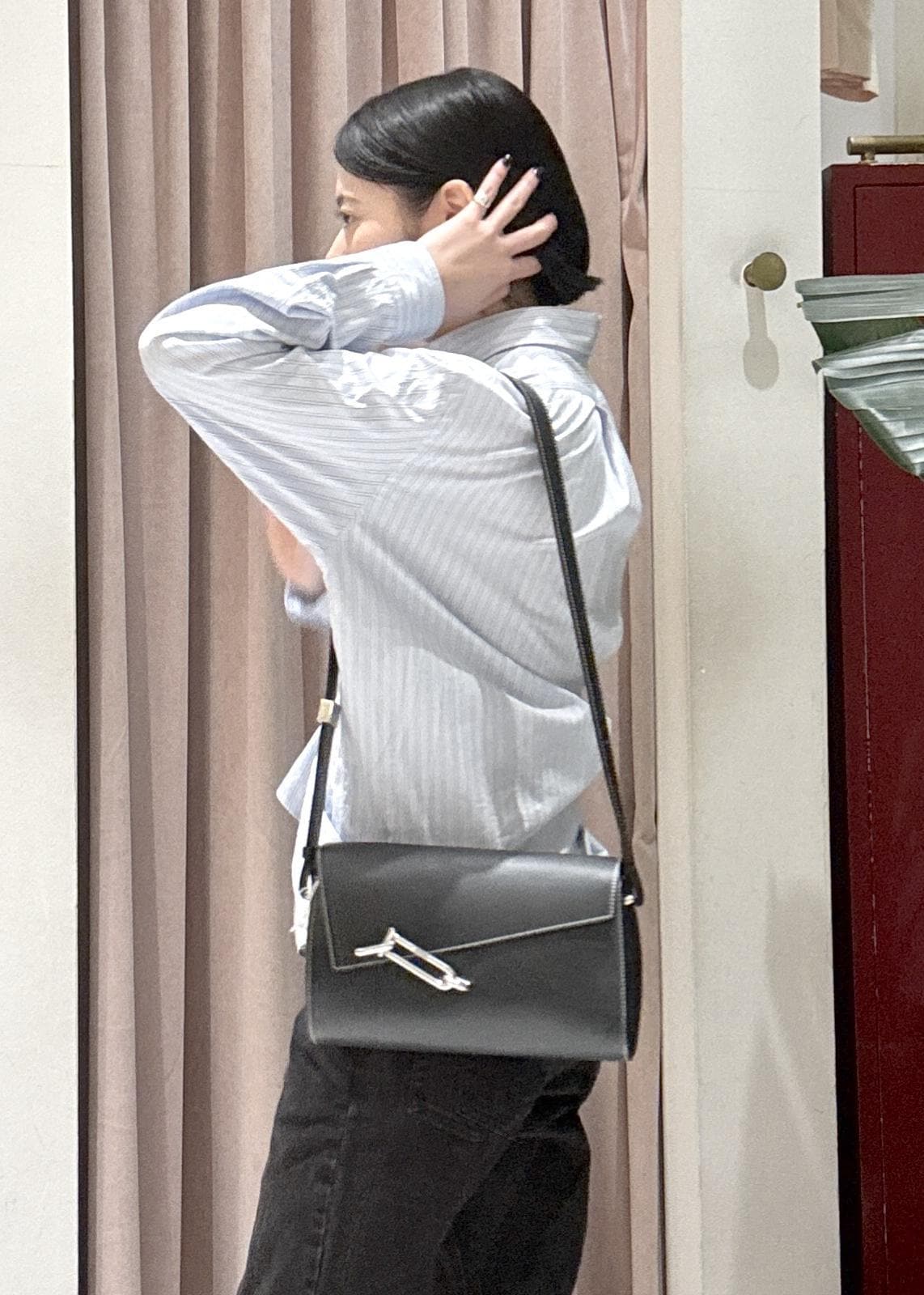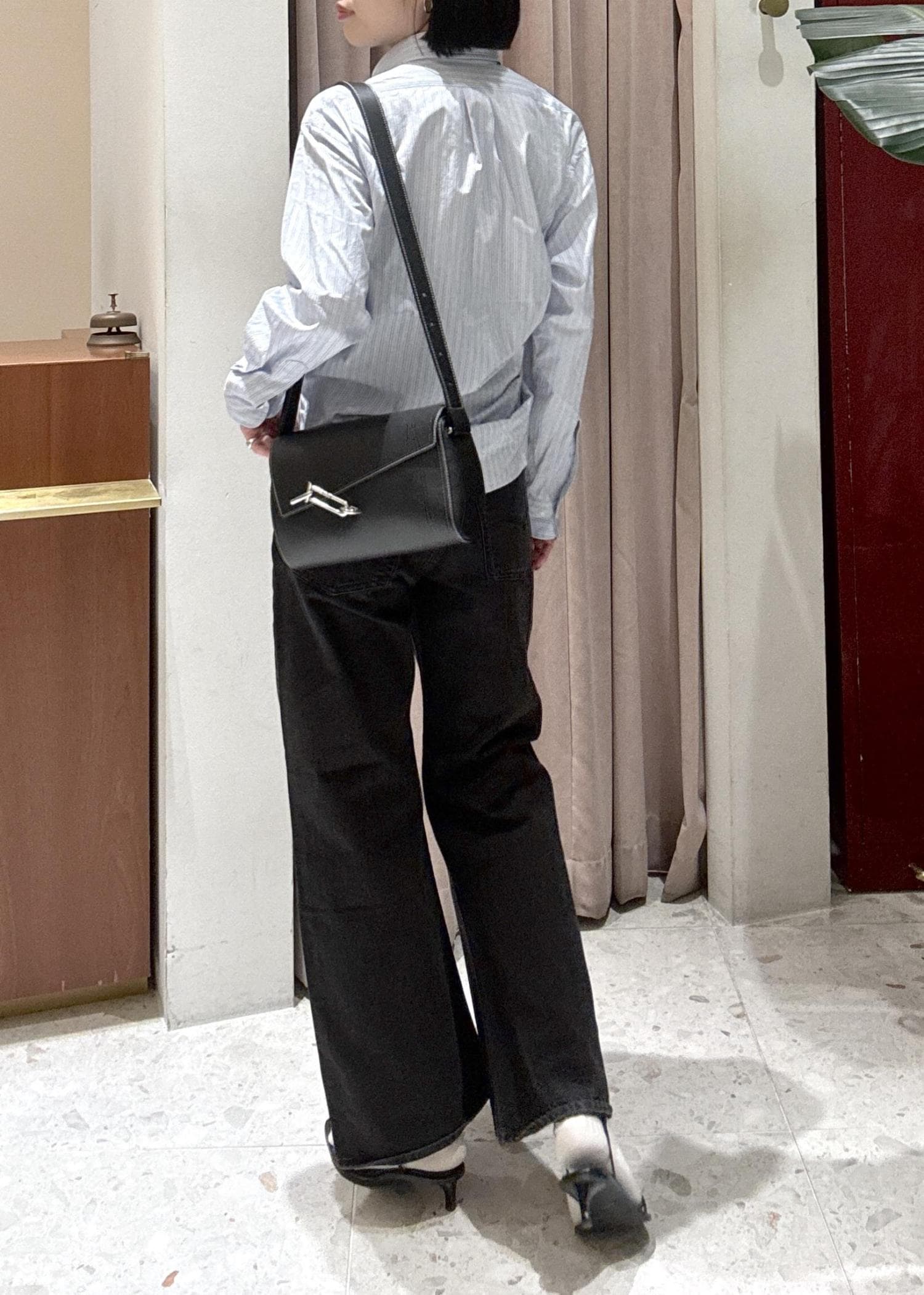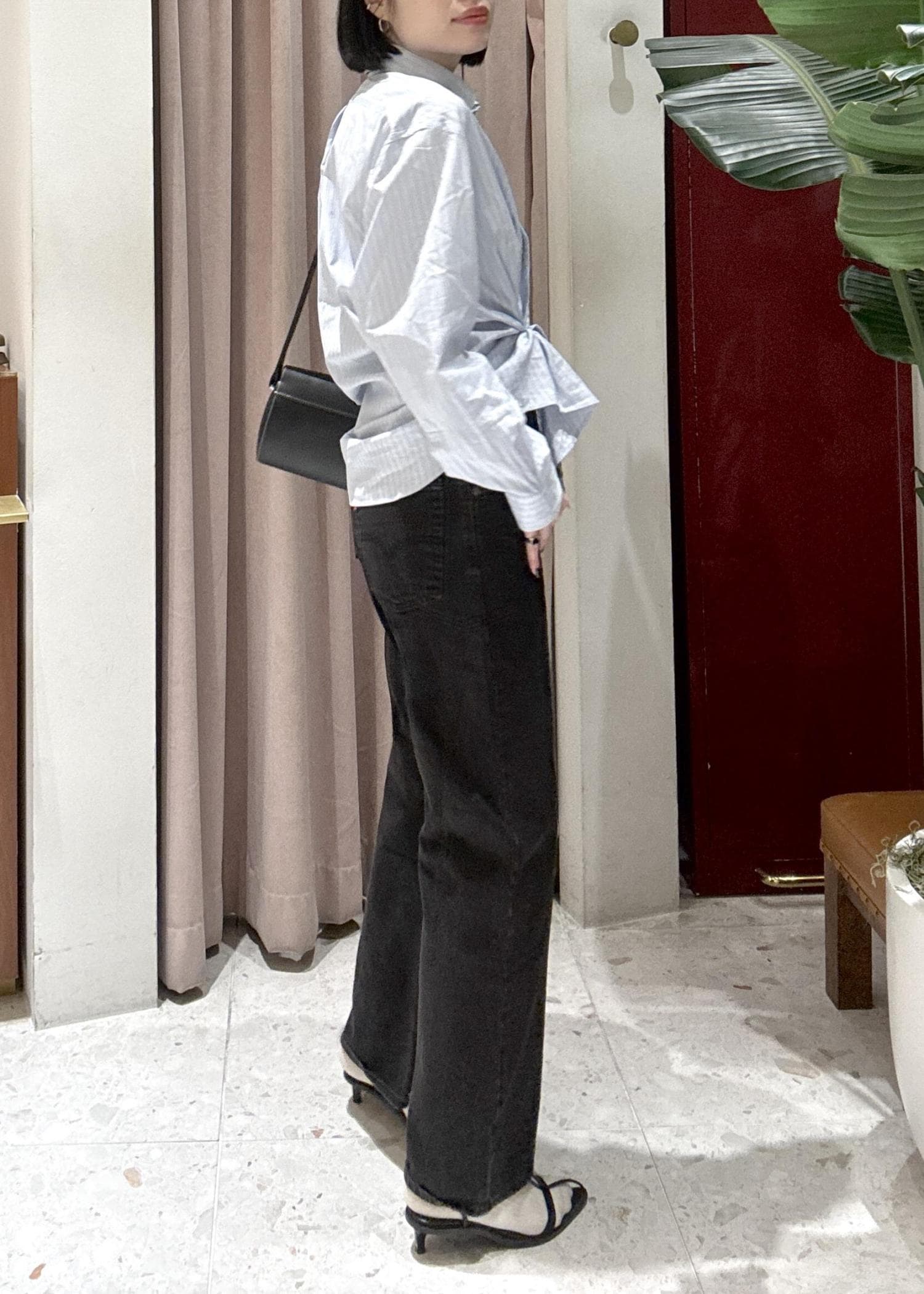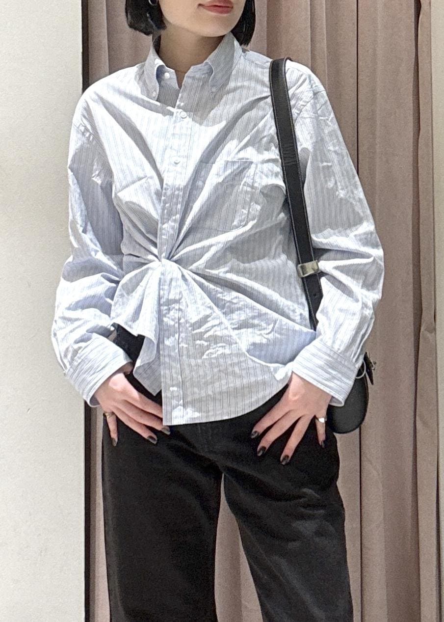 オーバーサイズのシャツはばさっと着るのも可愛いですが、ウエストマークしてすっきり見せるのもオススメです◎