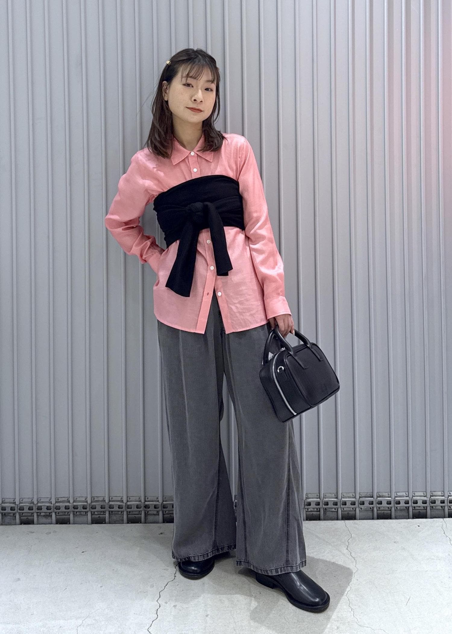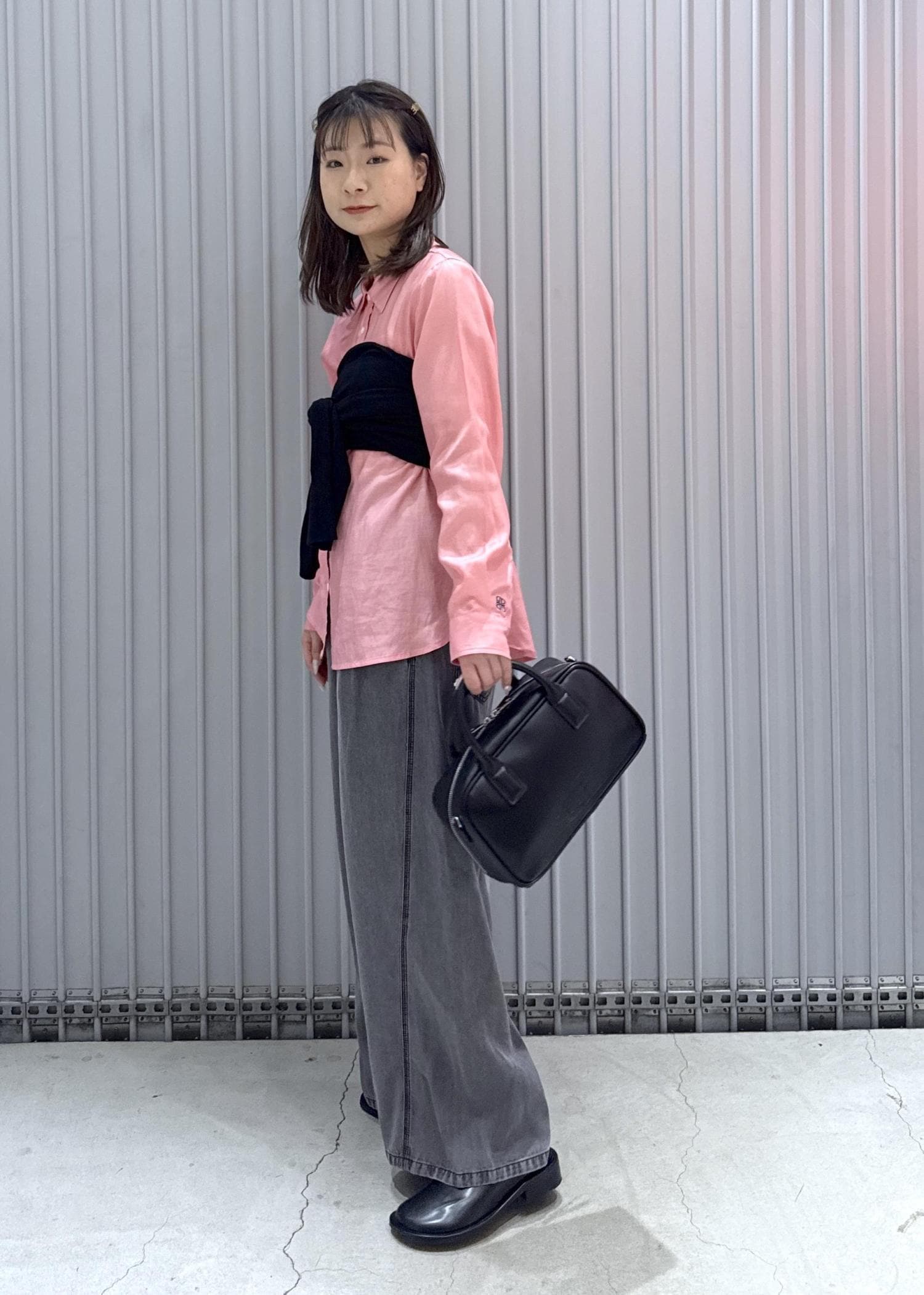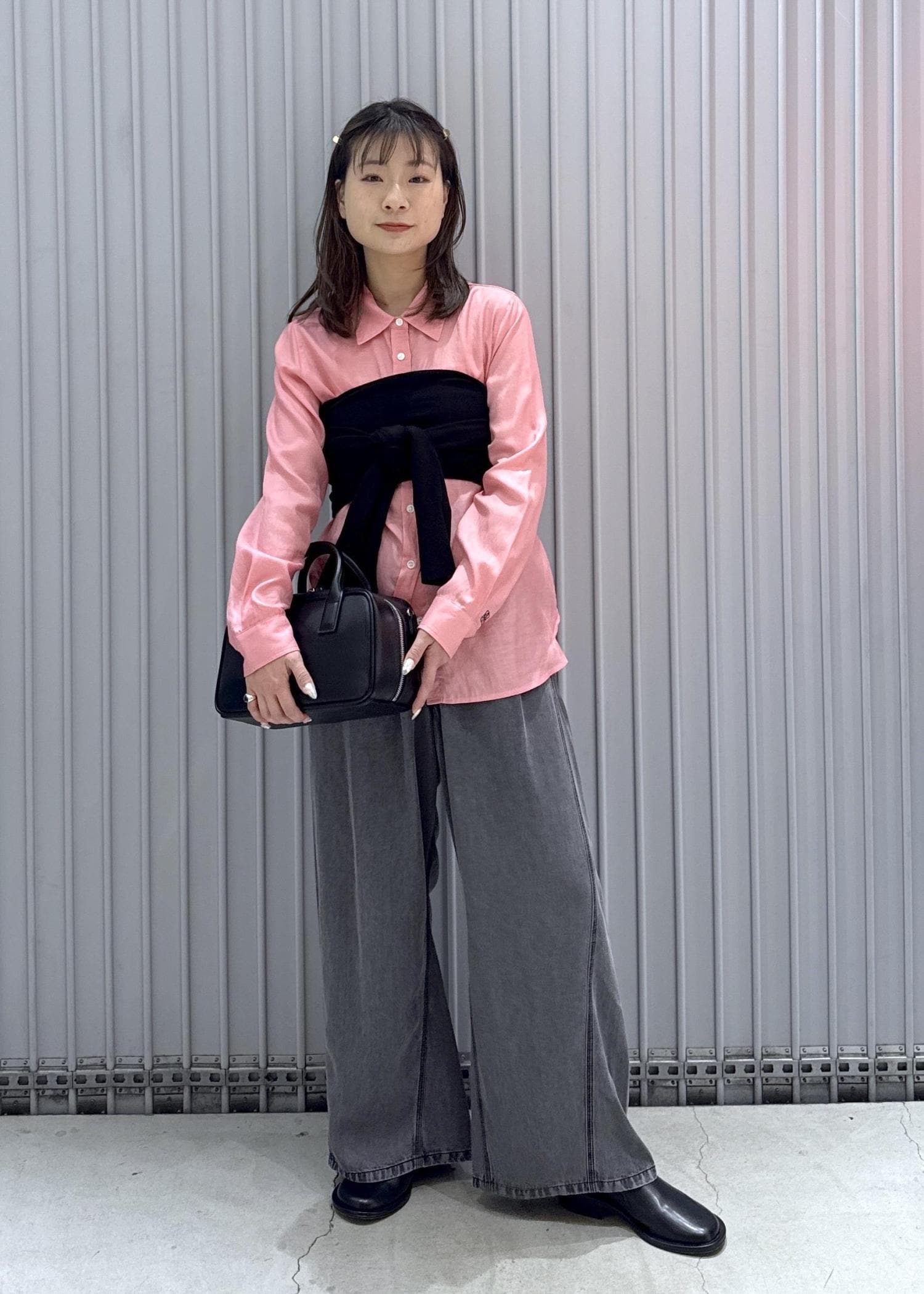 ピンクのシャツを着たくちょっとモードな感じでスタイリングしました!