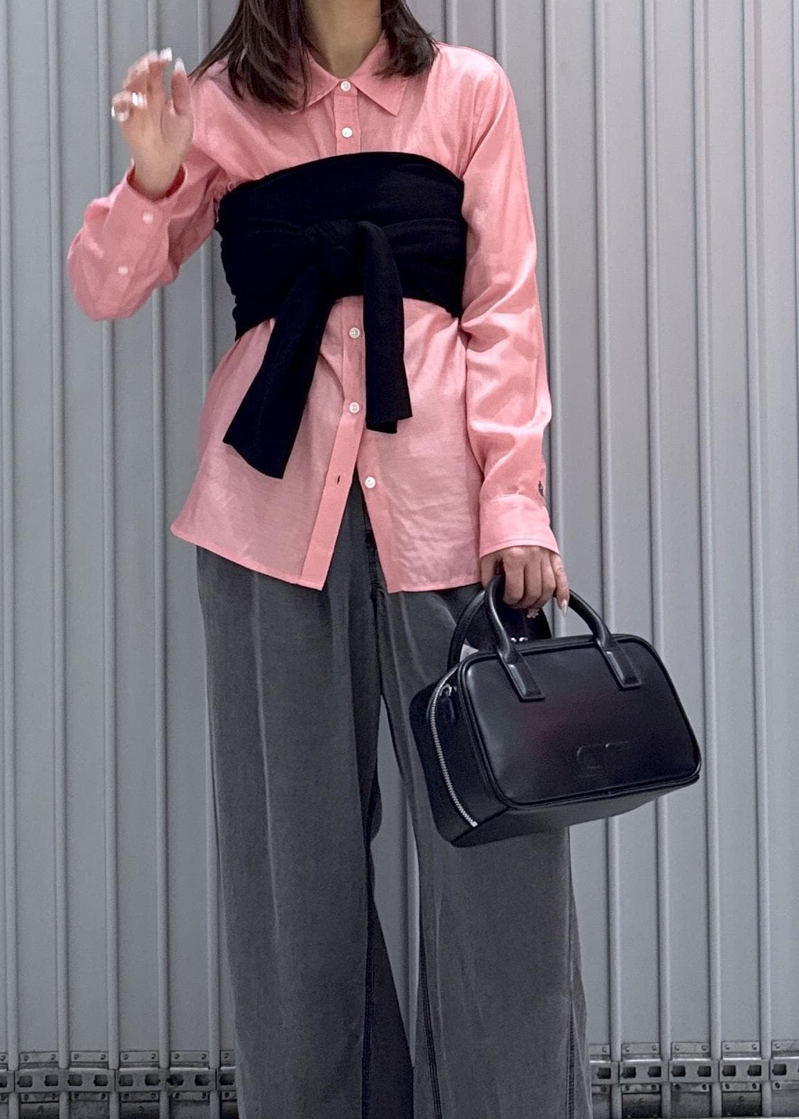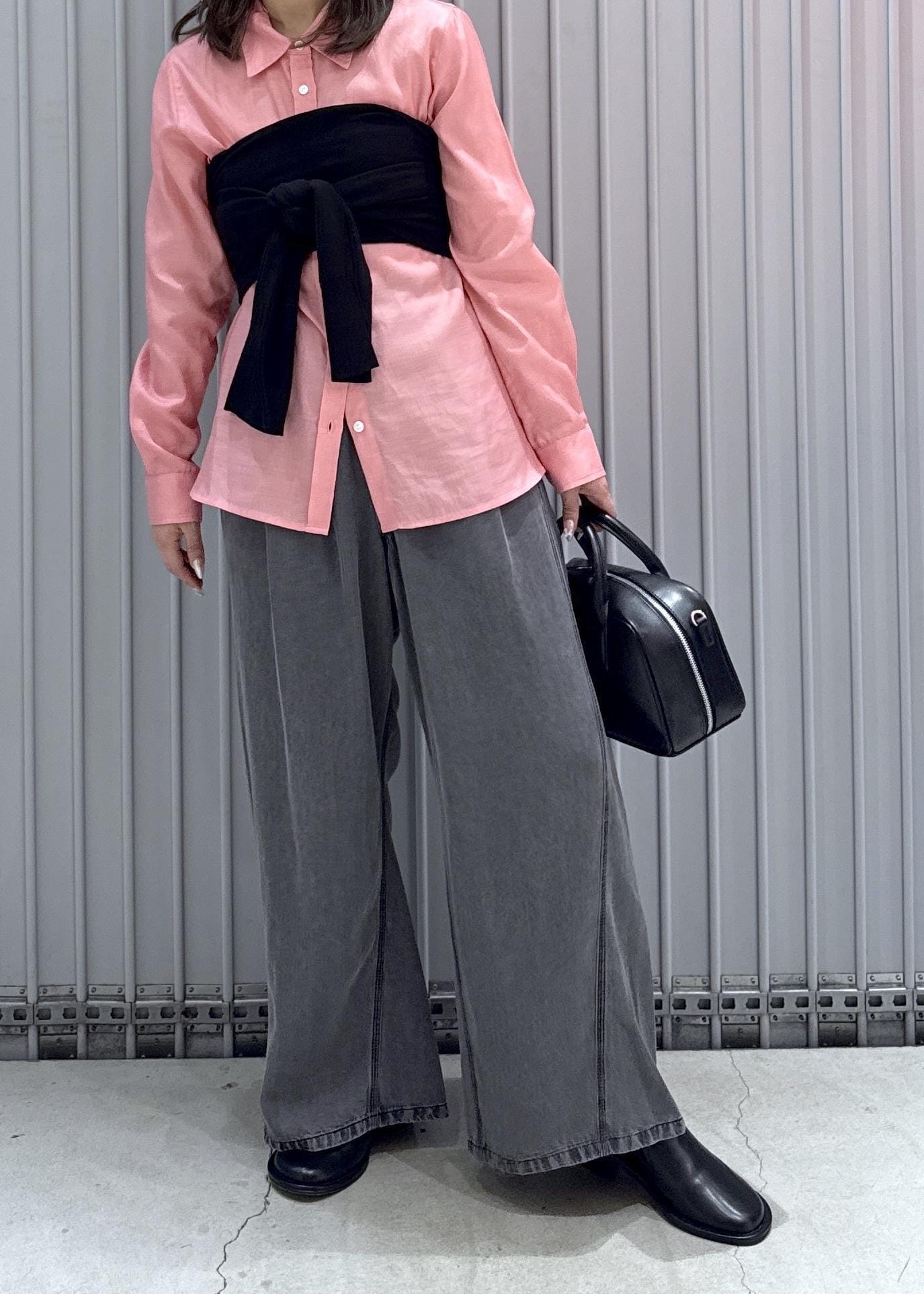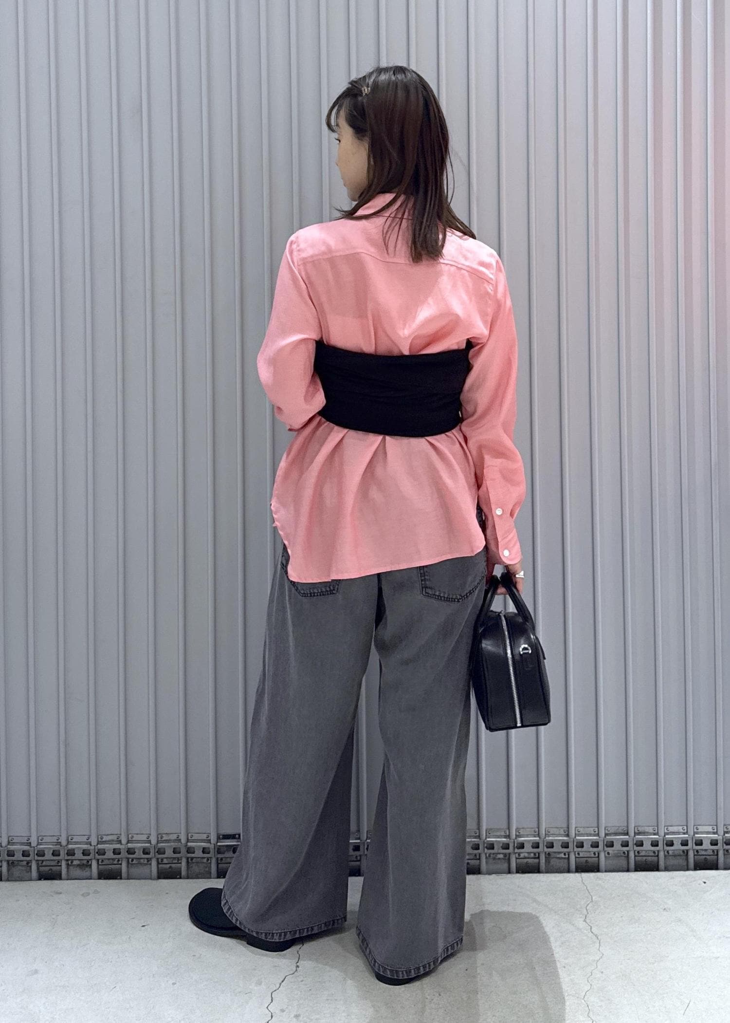 ピンクのシャツを着たくちょっとモードな感じでスタイリングしました!