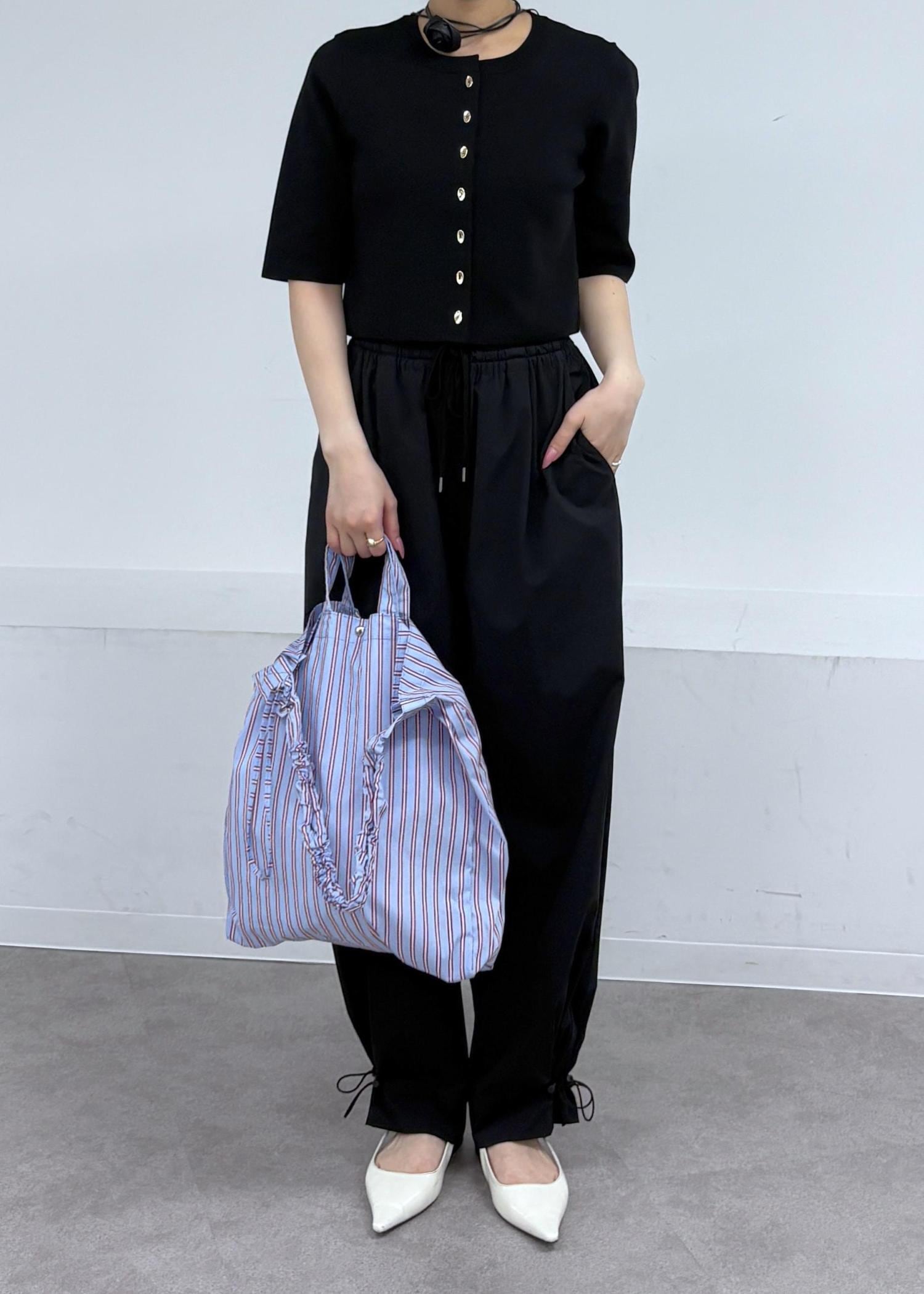 ADAM ET ROPÉ FEMME【WEB限定】撥水ウエストタックイージーパンツブラック / 36¥15,950レビュー人気の撥水パンツです。薄手なのでじめじめしている梅雨時期にも快適に履いていただけます◎