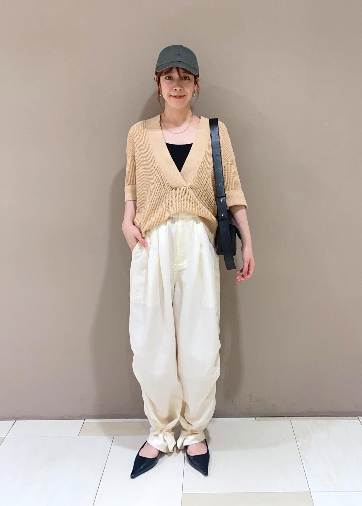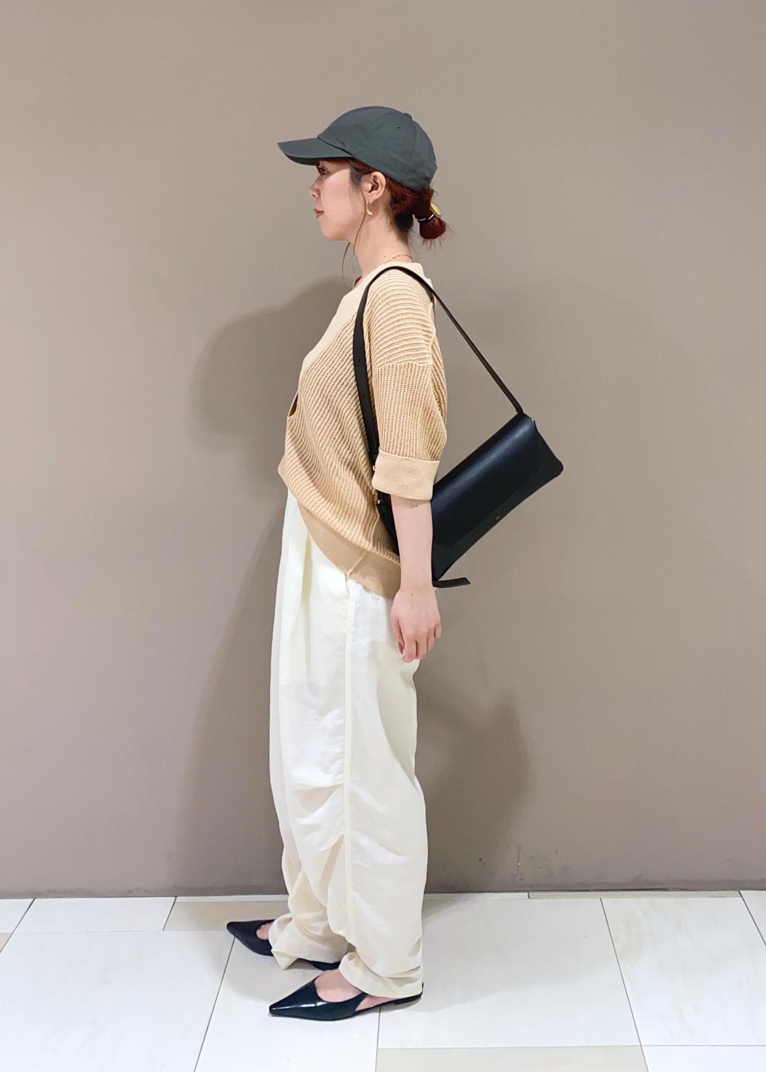 今回はナイロンパンツやキャップを合わせ、スポーティミックスにしてみましたが、もちろんデニムやスラックスでも◯