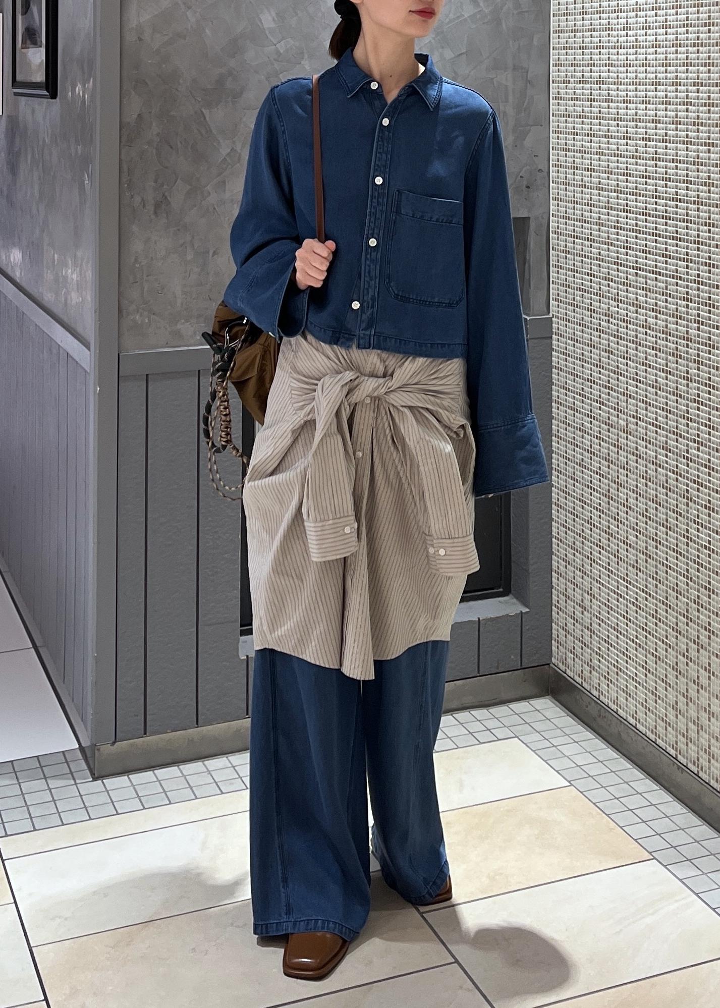 今回は、ECでも店頭でも大人気のライトデニムのセットアップを使用してコーディネートしてみました!
