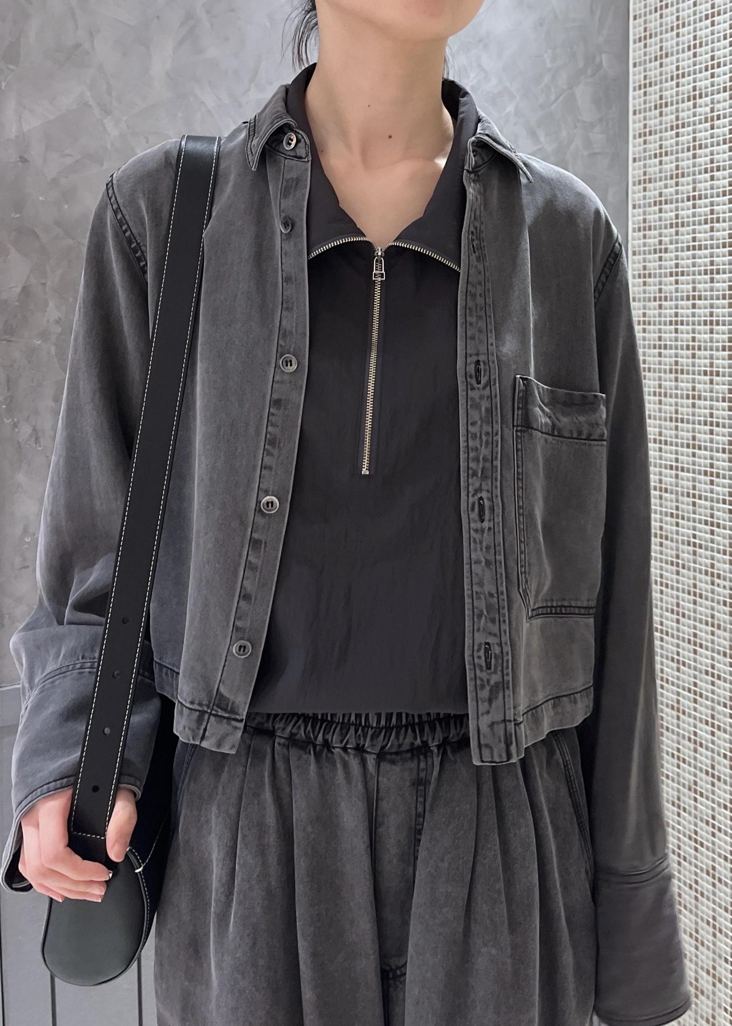 ADAM ET ROPÉ FEMMEライトデニムシャツブラック / F¥18,700レビューすごく柔らかく肌触りもいいです!短すぎず長すぎない着丈で、袖はゆとり感がありやや長めです。とても柔らかいので腰に巻いてレイヤードしても可愛いです◎