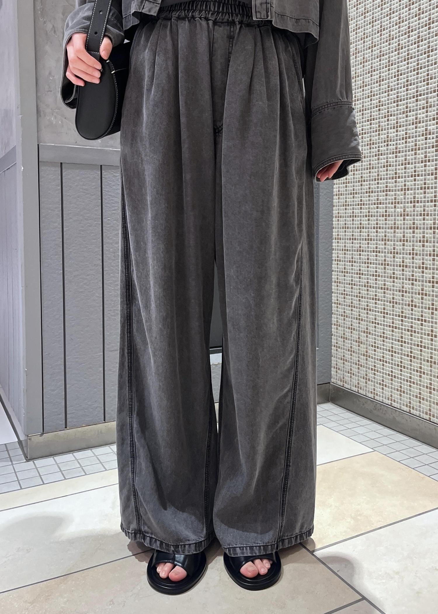 ADAM ET ROPÉ FEMMEライトデニムイージーパンツブラック / 36¥17,930レビューとても柔らかく肌触りの良い素材です。163㎝、36サイズでやや下に溜まる長さです。ウエストはヒモで絞って調節ができ、ウエストゴムなのでとても楽ちんです!