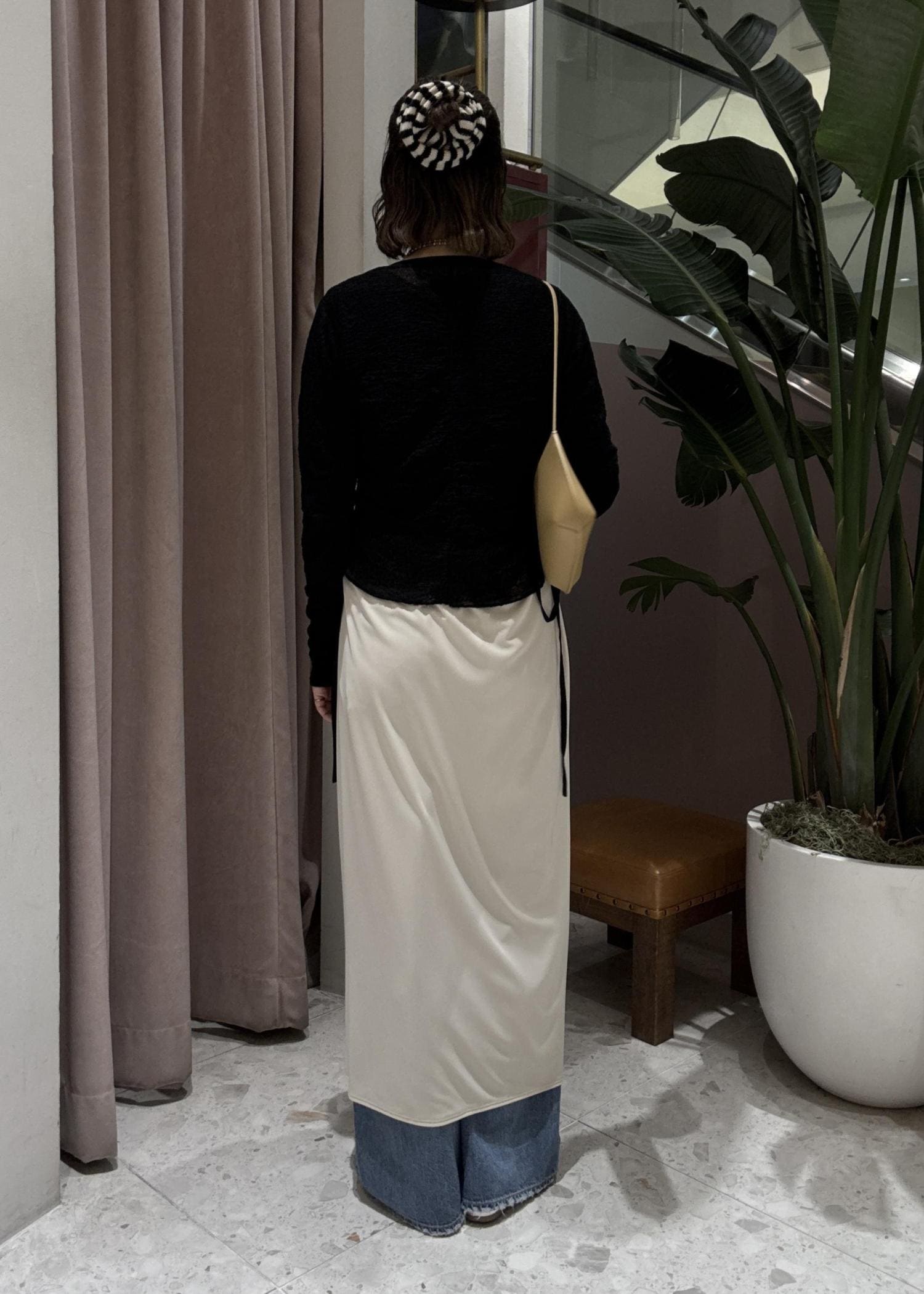 ADAM ET ROPÉ FEMMEバイカラーエラスティックスカートキナリ系 / F¥17,600レビュー着丈とカラーが異なる2枚のリーンスカートを重ねたデザインで単体でも使用可能。
