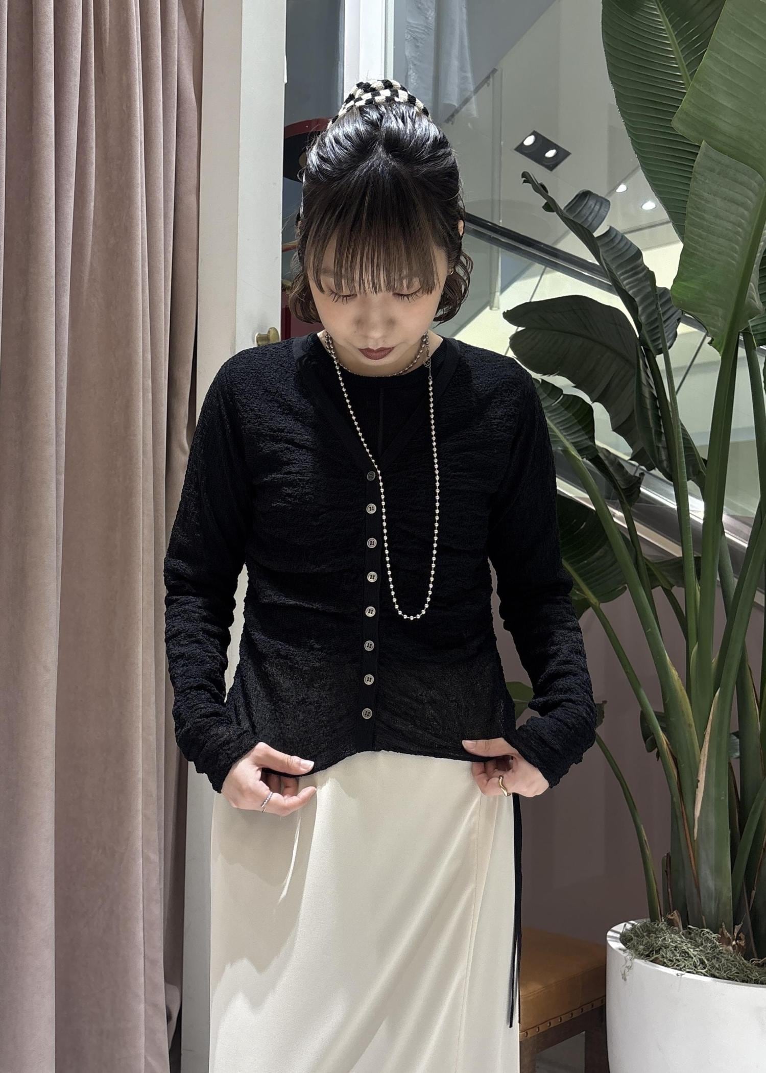 ADAM ET ROPÉ FEMMEクレープリンクスギャザーシアーカーディガンブラック / F¥17,600レビューギャザーのデザインがあり羽織るだけで女性らしい旬の装いを叶えるコンパクトカーディガンです。